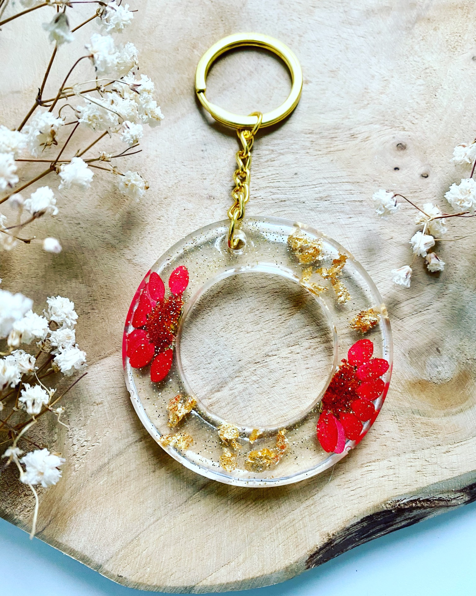 Klíčenka kruh - Červená kopretina se třpytkami 2