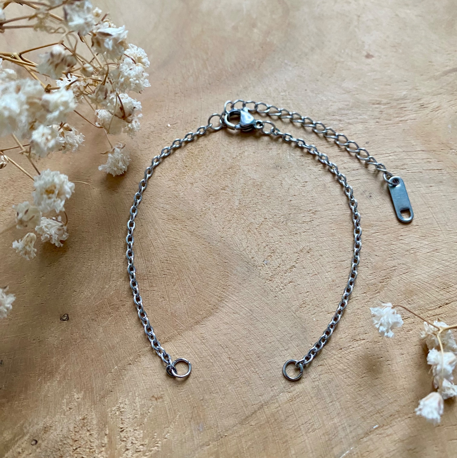 Náramek z chirurgické oceli.Velikost: 14 + 6 cm (nastavitelný).Barva: stříbrná.
