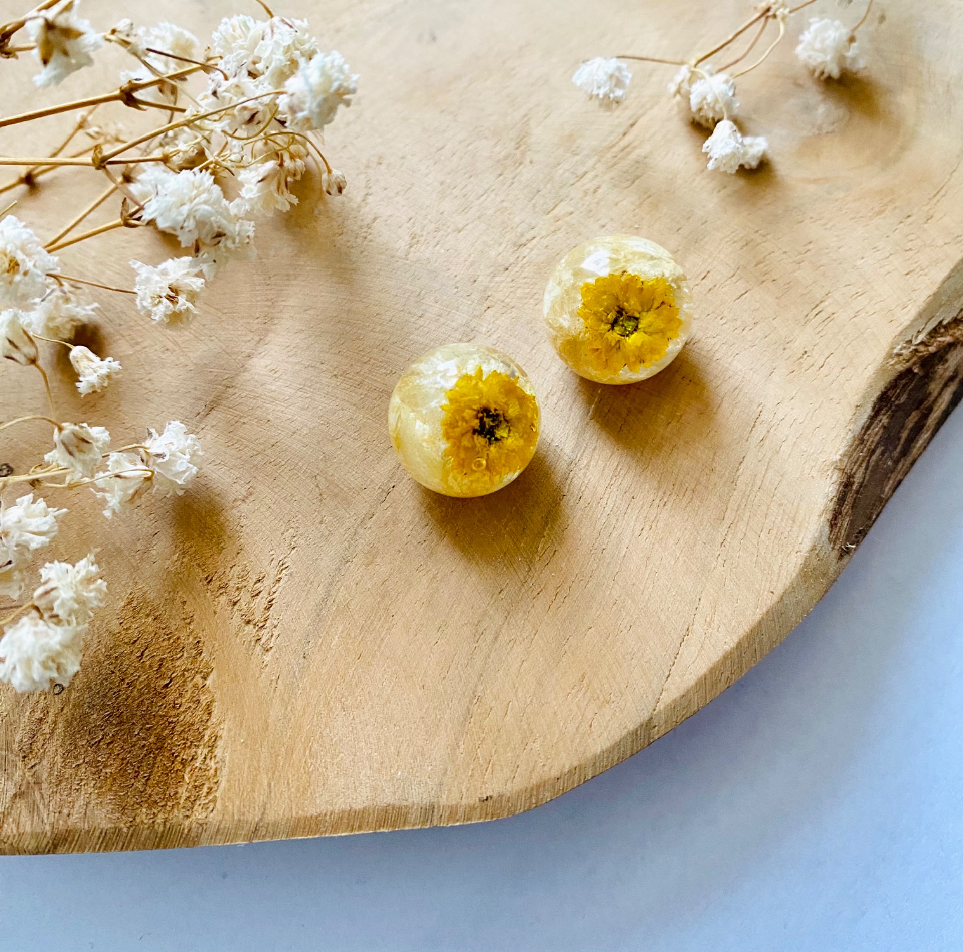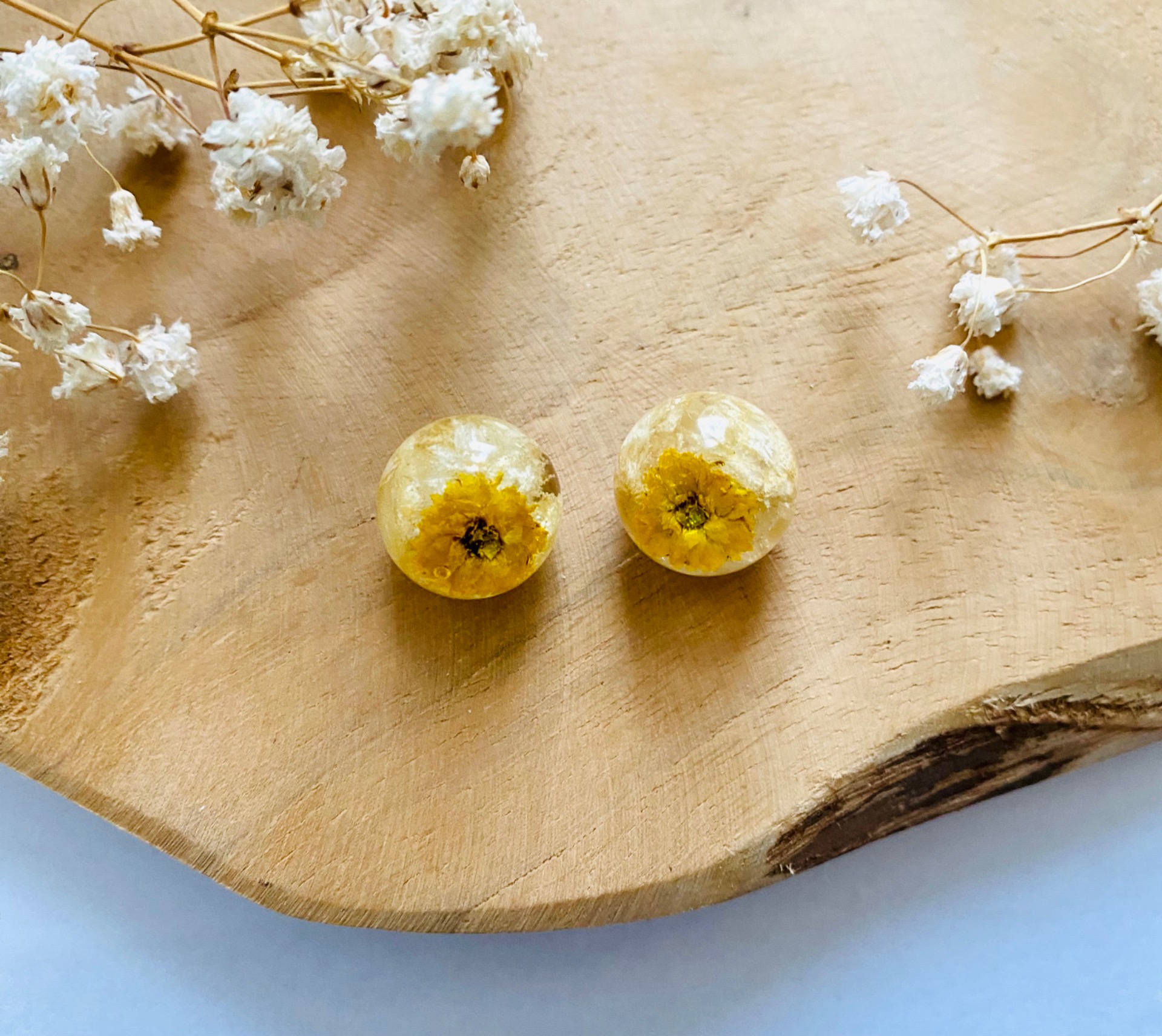 Náušnice koule s pravými sušenými květy.