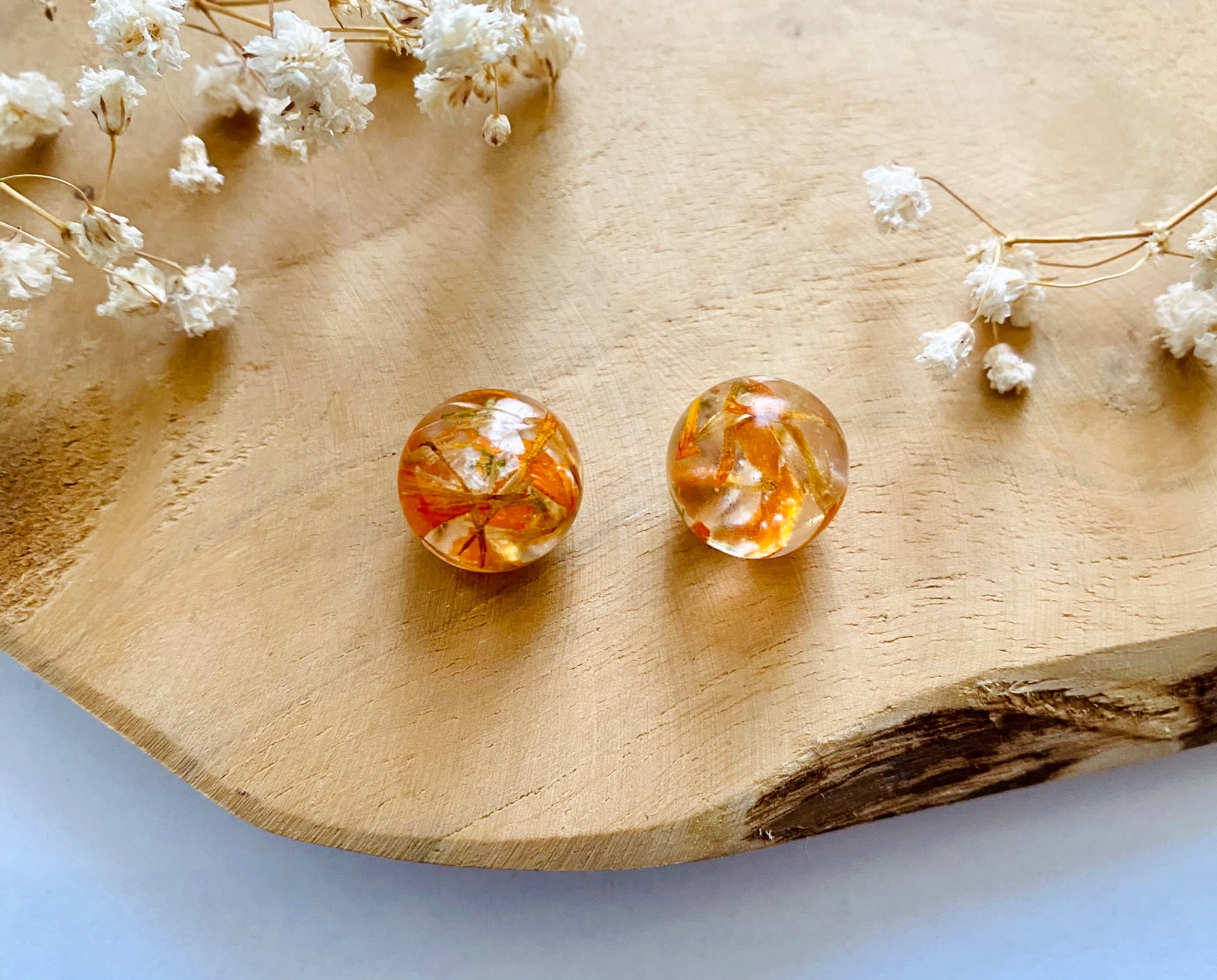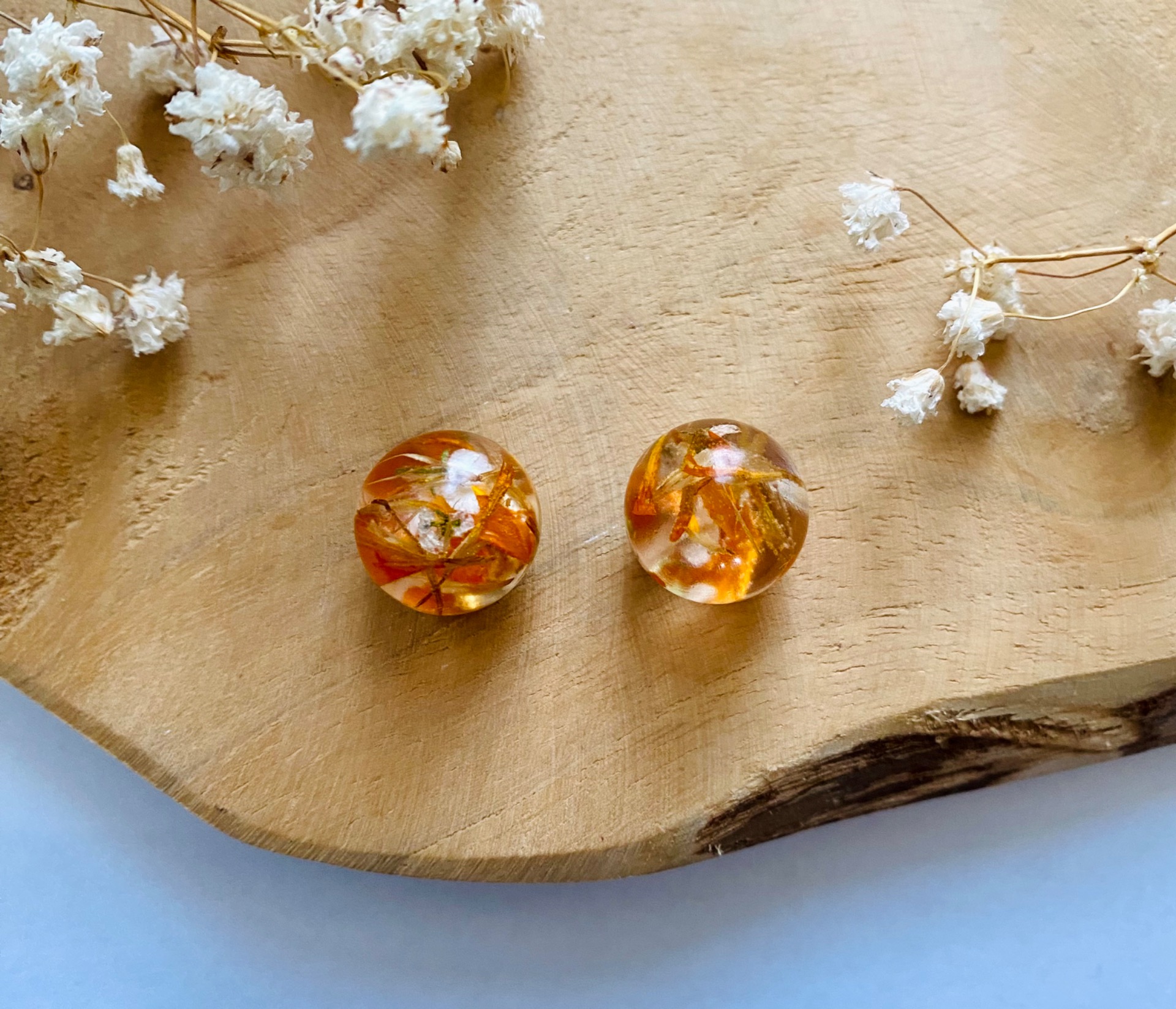Náušnice koule s pravými sušenými květy.Velikost: 1,2 cm.Puzety: chirurgická ocel.