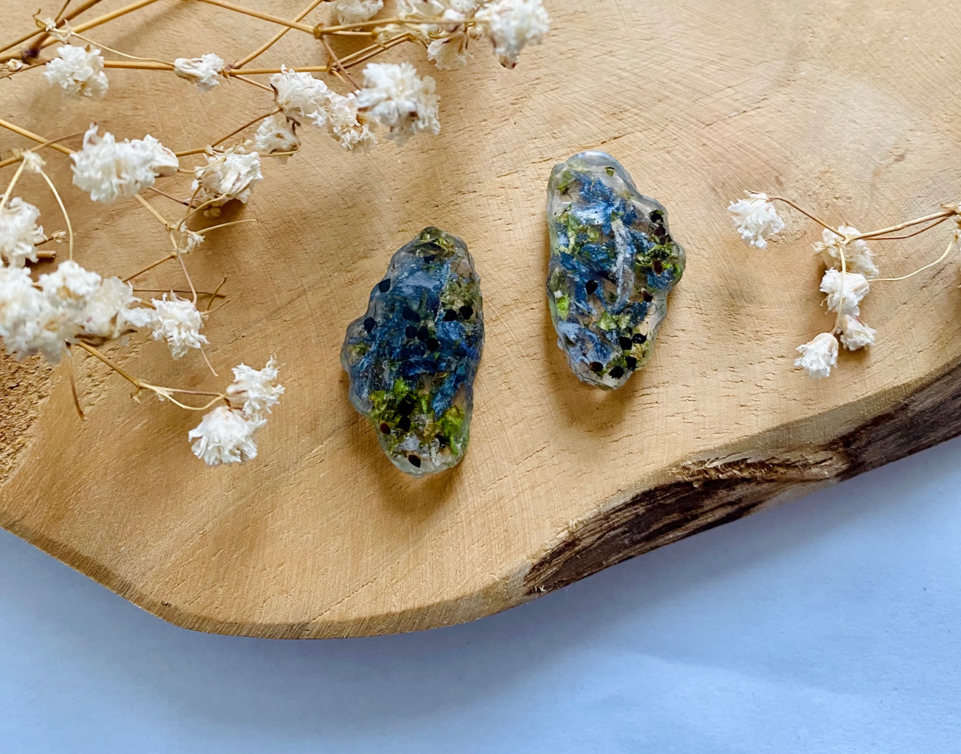 Náušnice magické krystaly s pravými sušenými květy Mechu a Ibišku.Velikost: 2,7 cm.Puzety: Chirurgická ocel.