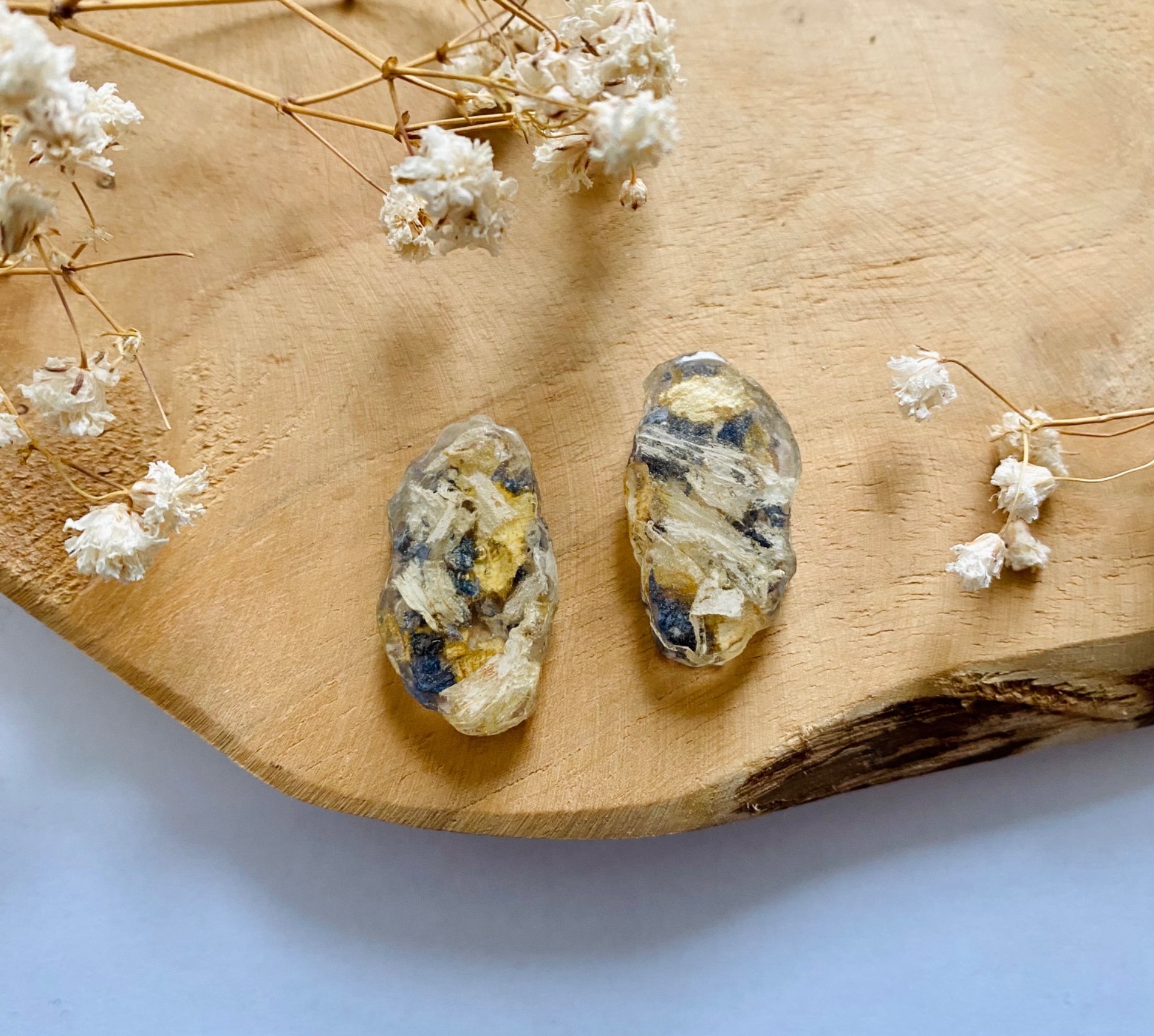 Náušnice magické krystaly s pravými sušenými květy.Velikost: 2,7 cm.Puzety: Chirurgická ocel.