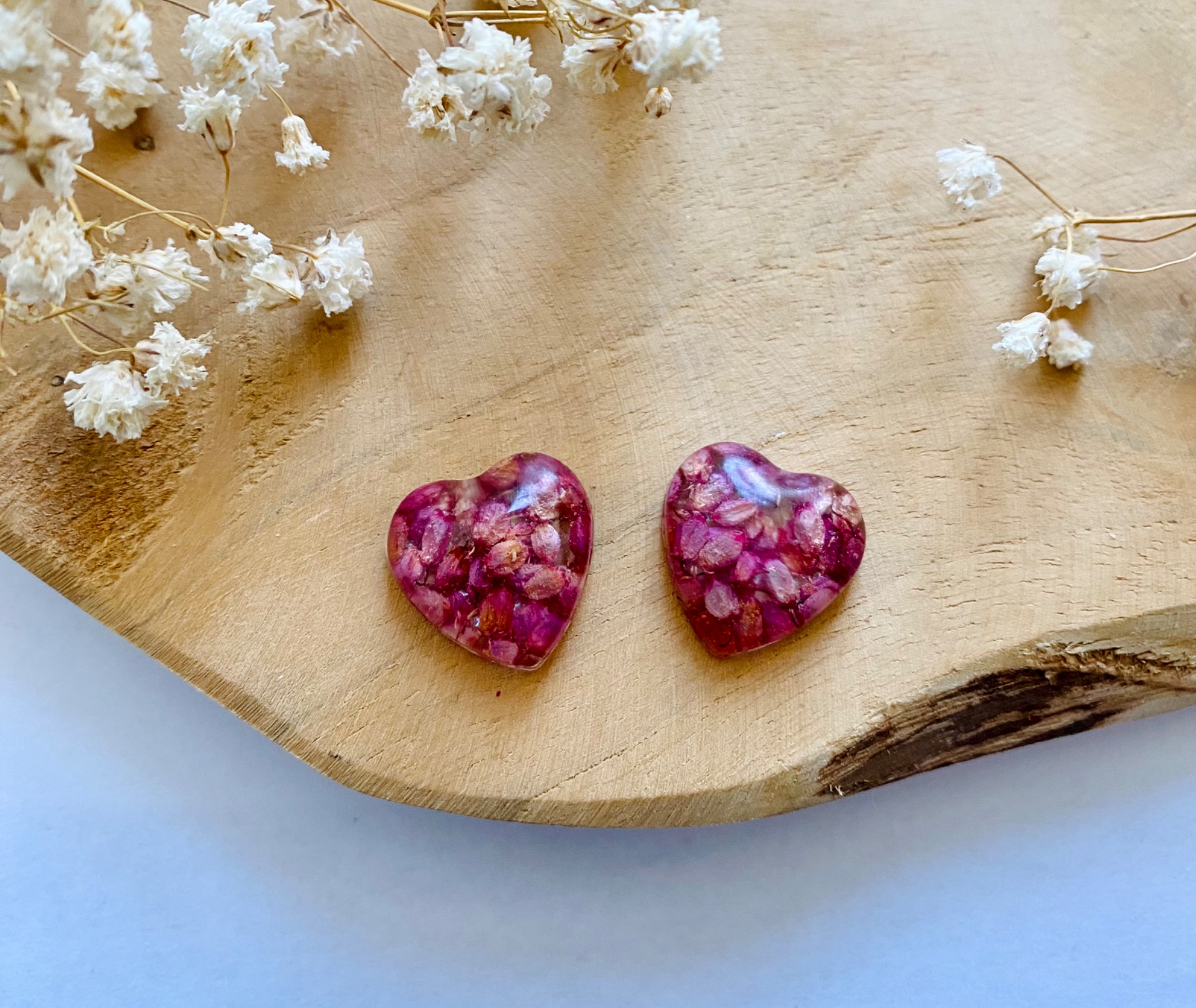 Náušnice malá srdíčka s pravými sušenými květy Vřesu Erica.Velikost: 1,8 cm.Puzety: Chirurgická ocel.