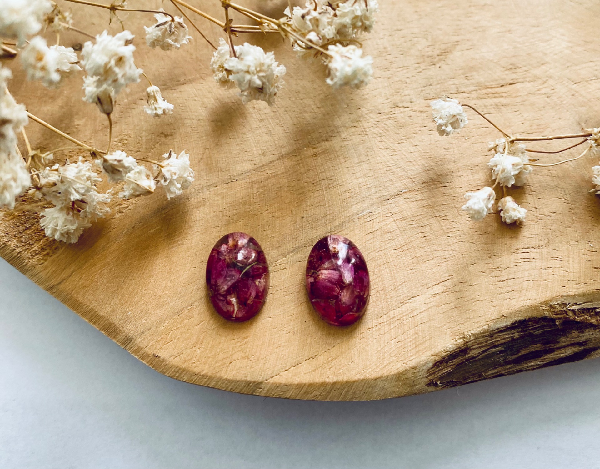 Náušnice malé ovály s pravými sušenými květy Vřesu Erica.Velikost: 1,4 cm.Puzety: Chirurgická ocel.