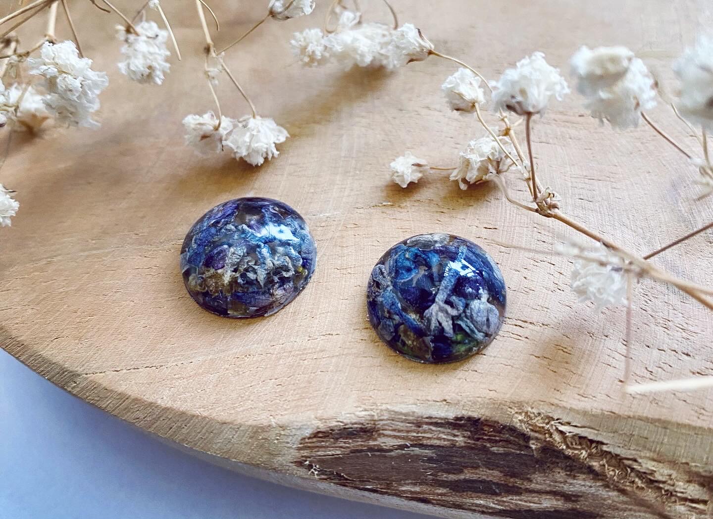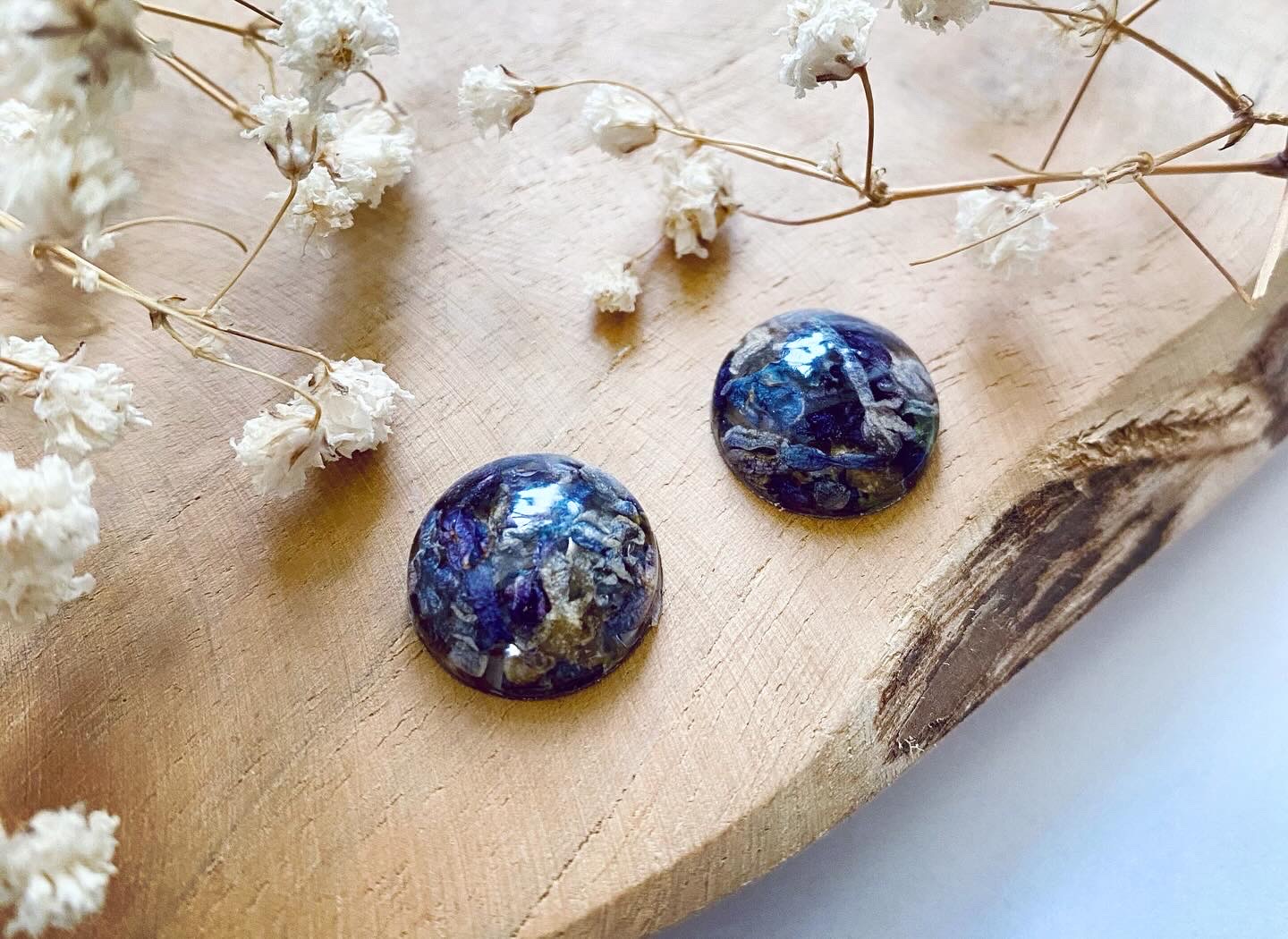 Malé půlkuličky s pravými sušenými květy Šeříku.Velikost: 1,5 cm.Puzety: Chirurgická ocel.