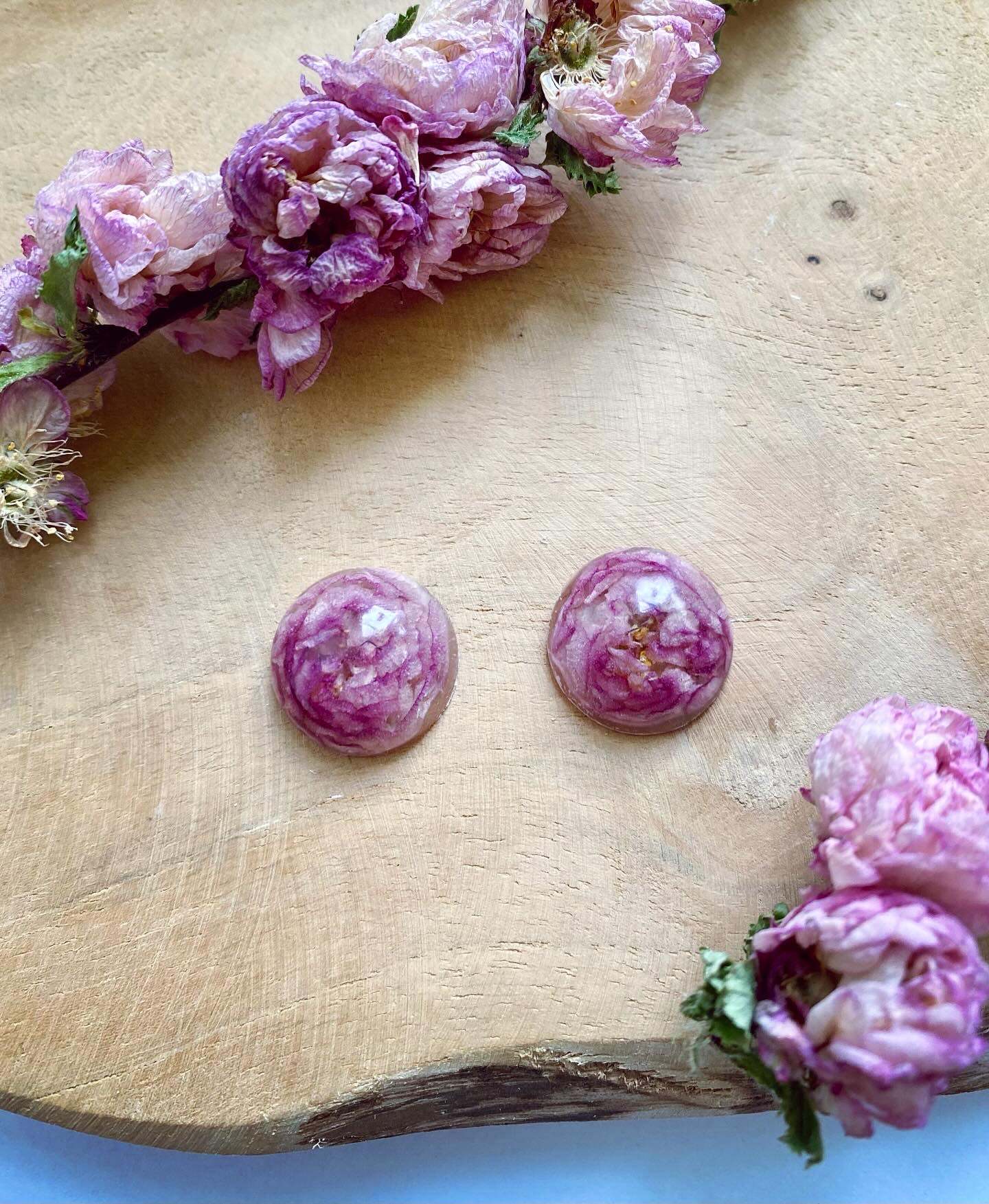 Malé půlkuličky s pravými sušenými květy.Velikost: 1,7 cm.Puzety: Chirurgická ocel.