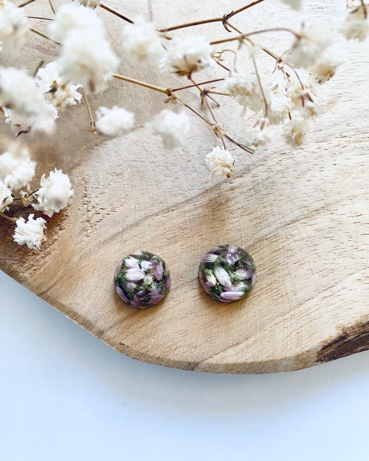 Malé půlkuličky s pravými sušenými květy Vřesu.