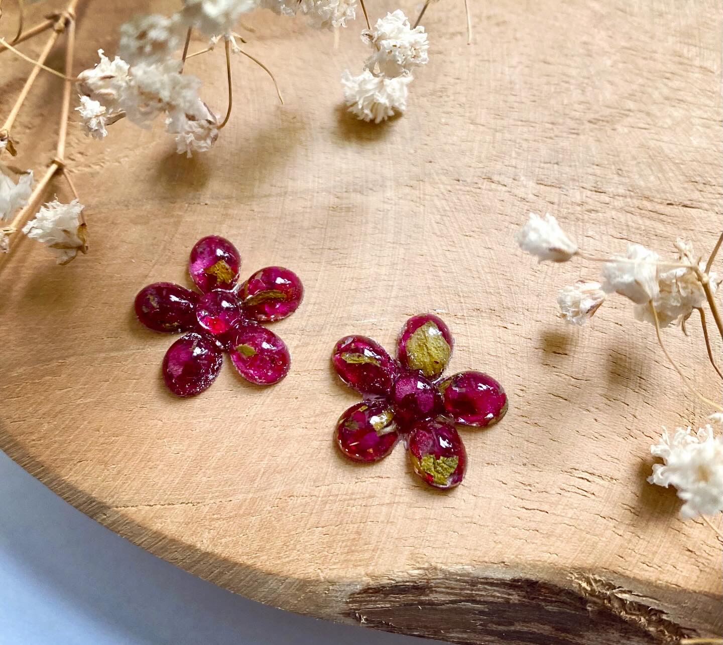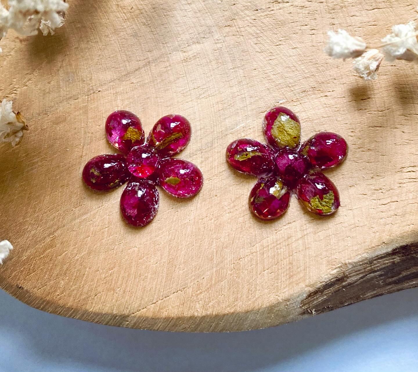 Náušnice kytičky s pravými sušenými květy červené Růže.Velikost: 1,8 cm.Puzety: Chirurgická ocel.