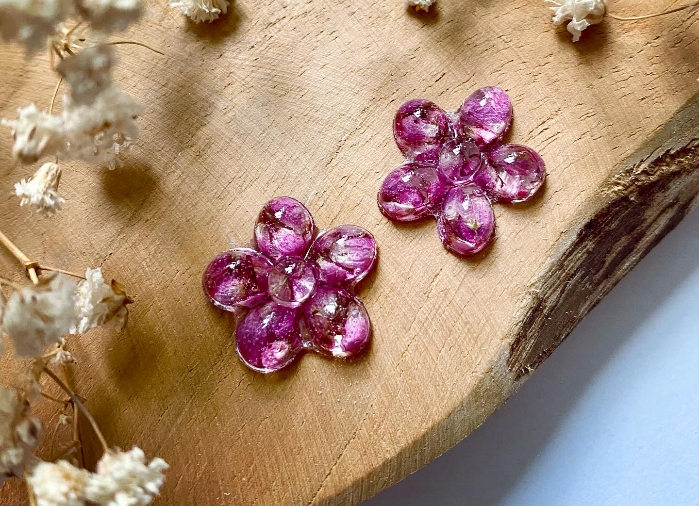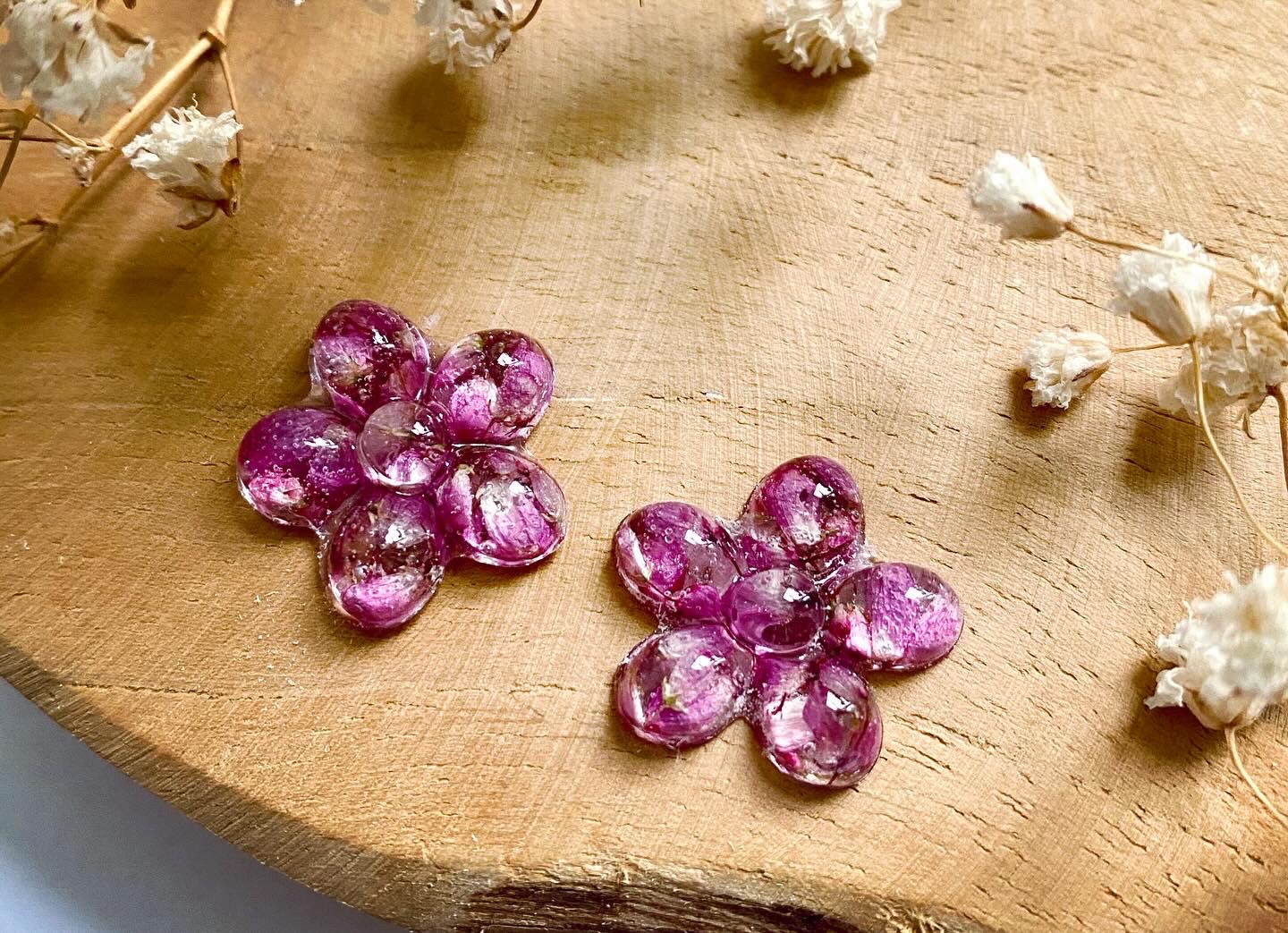 Náušnice kytičky s pravými sušenými květy Vřesu Erica.