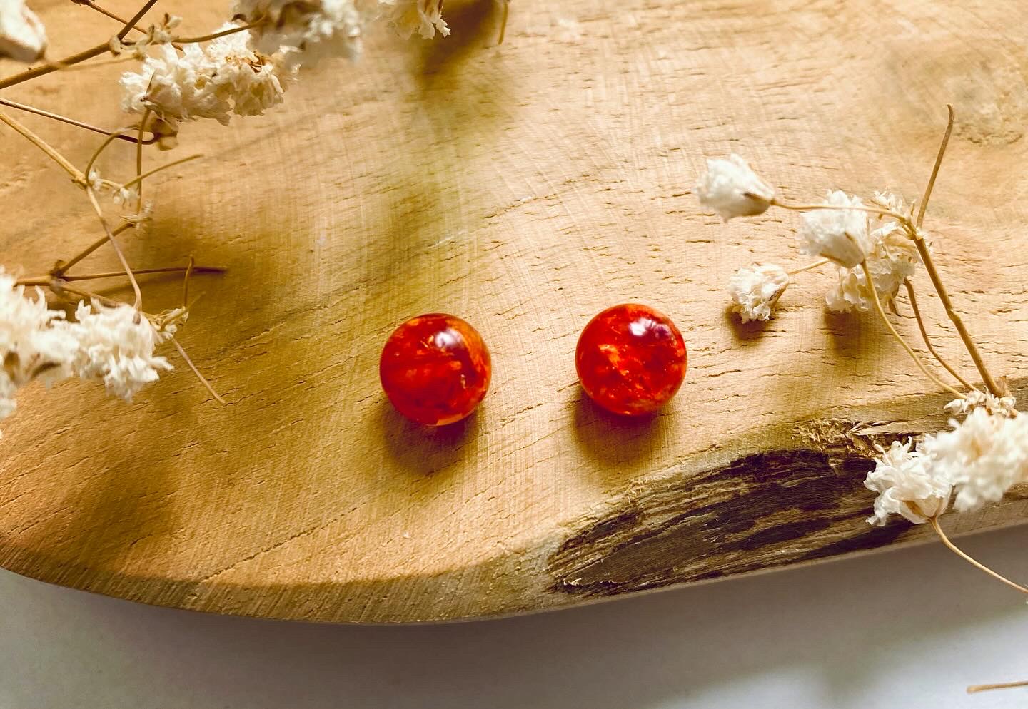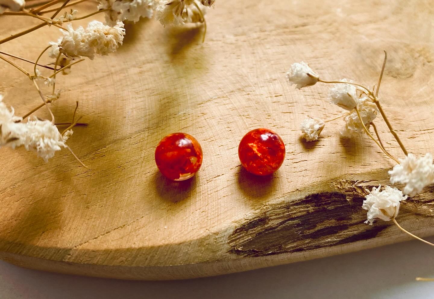 Náušnice koule s pravými sušenými květy Růže.Velikost: 0.5 cm.Puzety: chirurgická ocel.