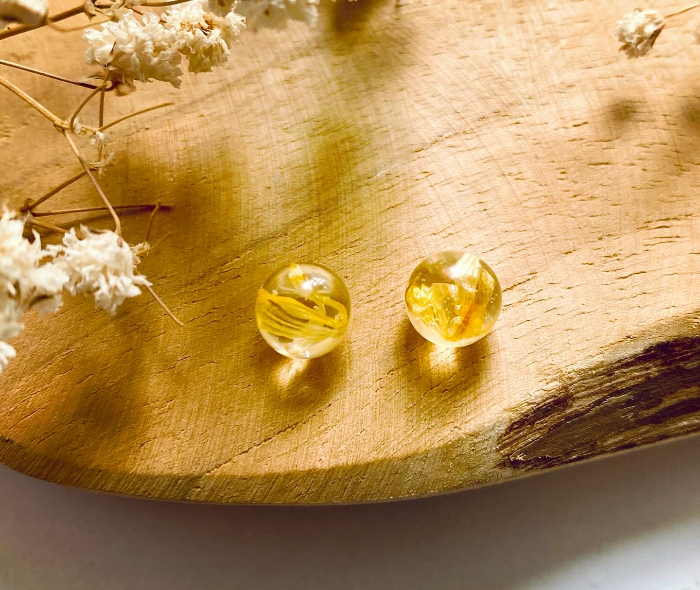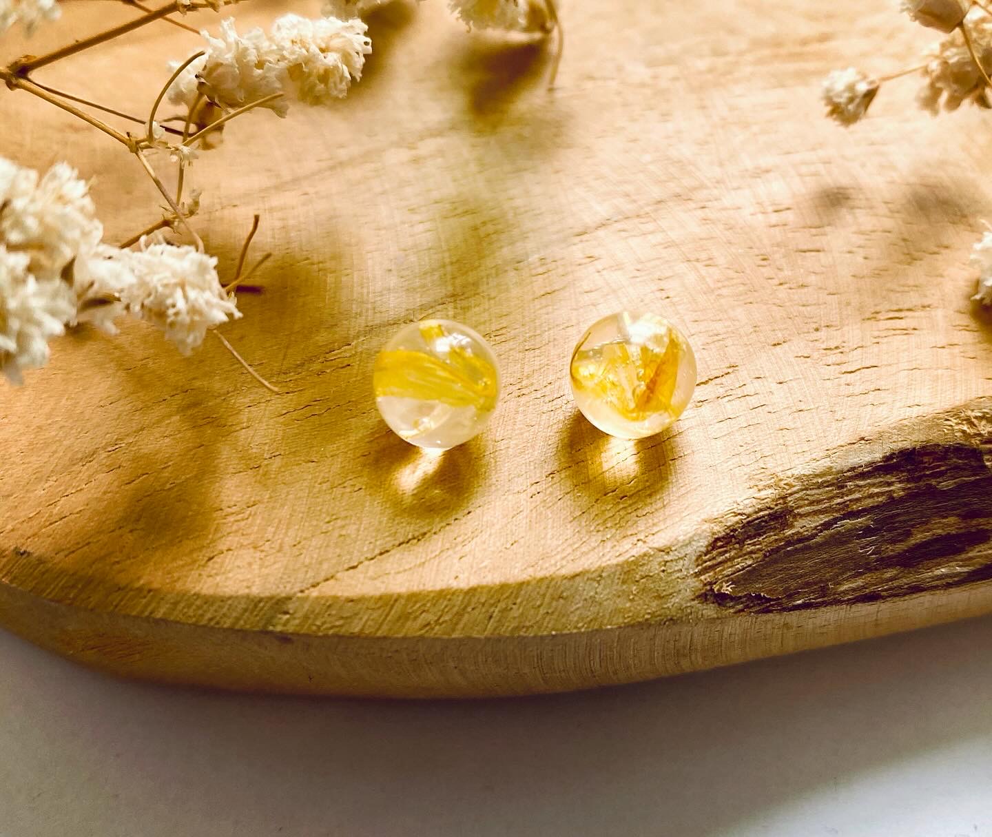 Náušnice koule s pravými sušenými květy Měsíček.Velikost: 0.5 cm.Puzety: chirurgická ocel.