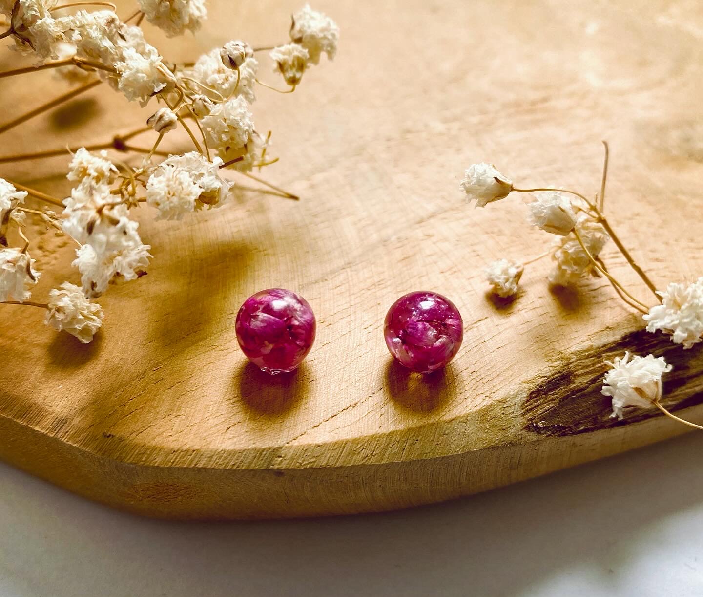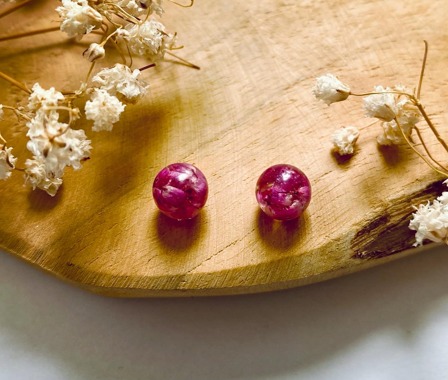 Náušnice koule s pravými sušenými květy Vřes Erica.
