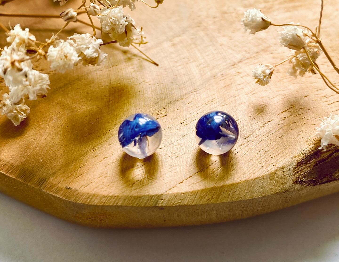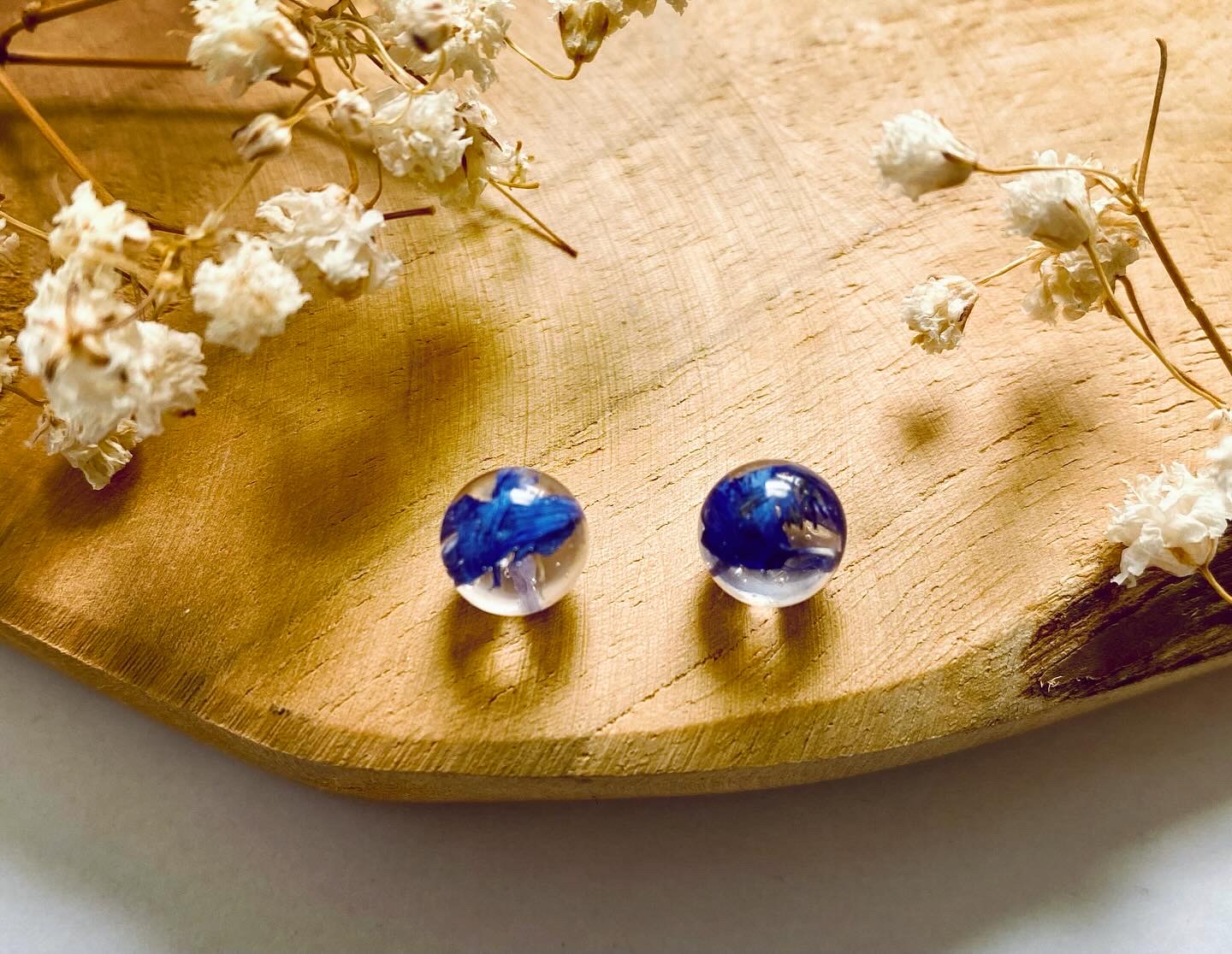Náušnice koule s pravými sušenými květy Chrpa.Velikost: 0.5 cm.Puzety: chirurgická ocel.