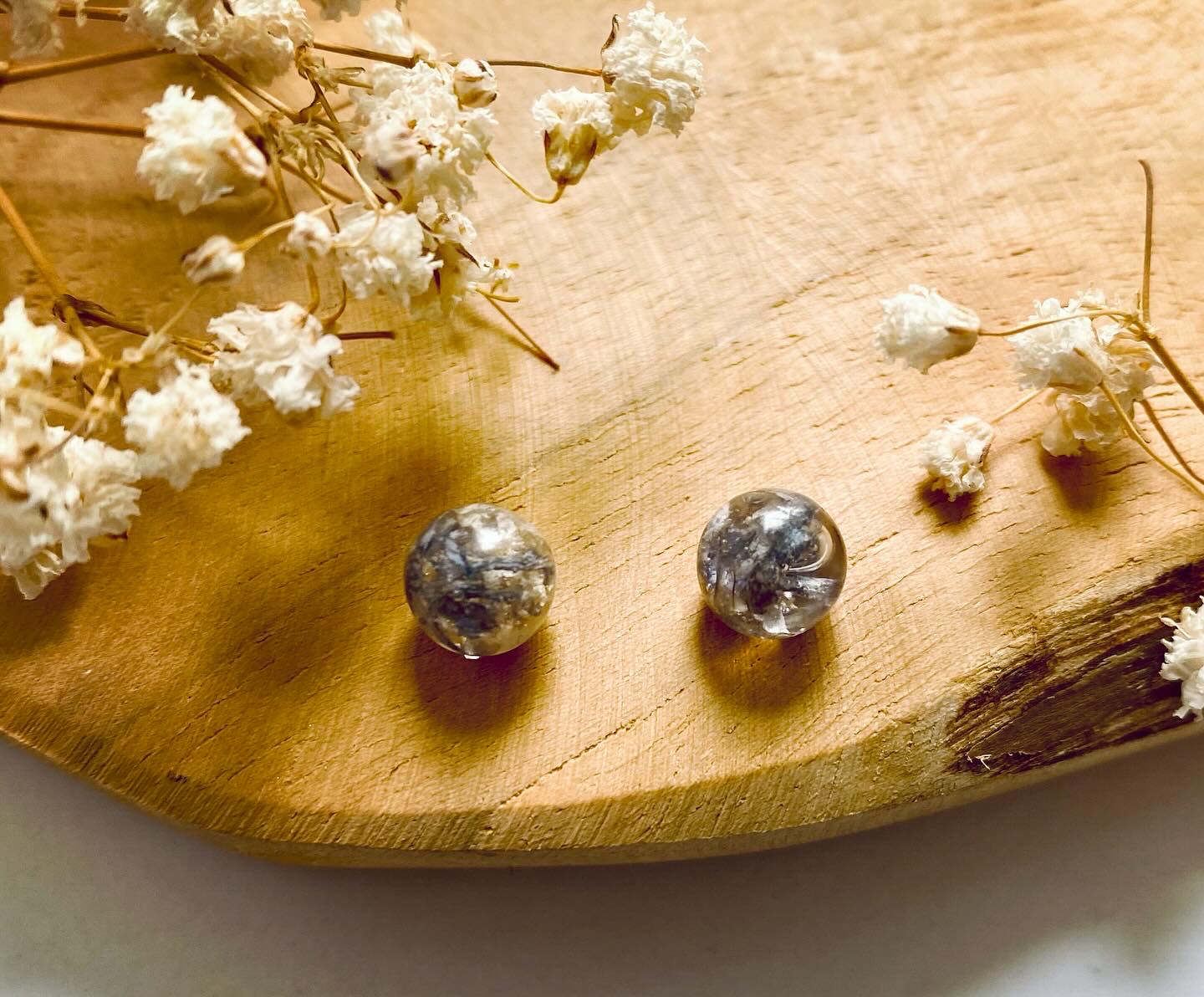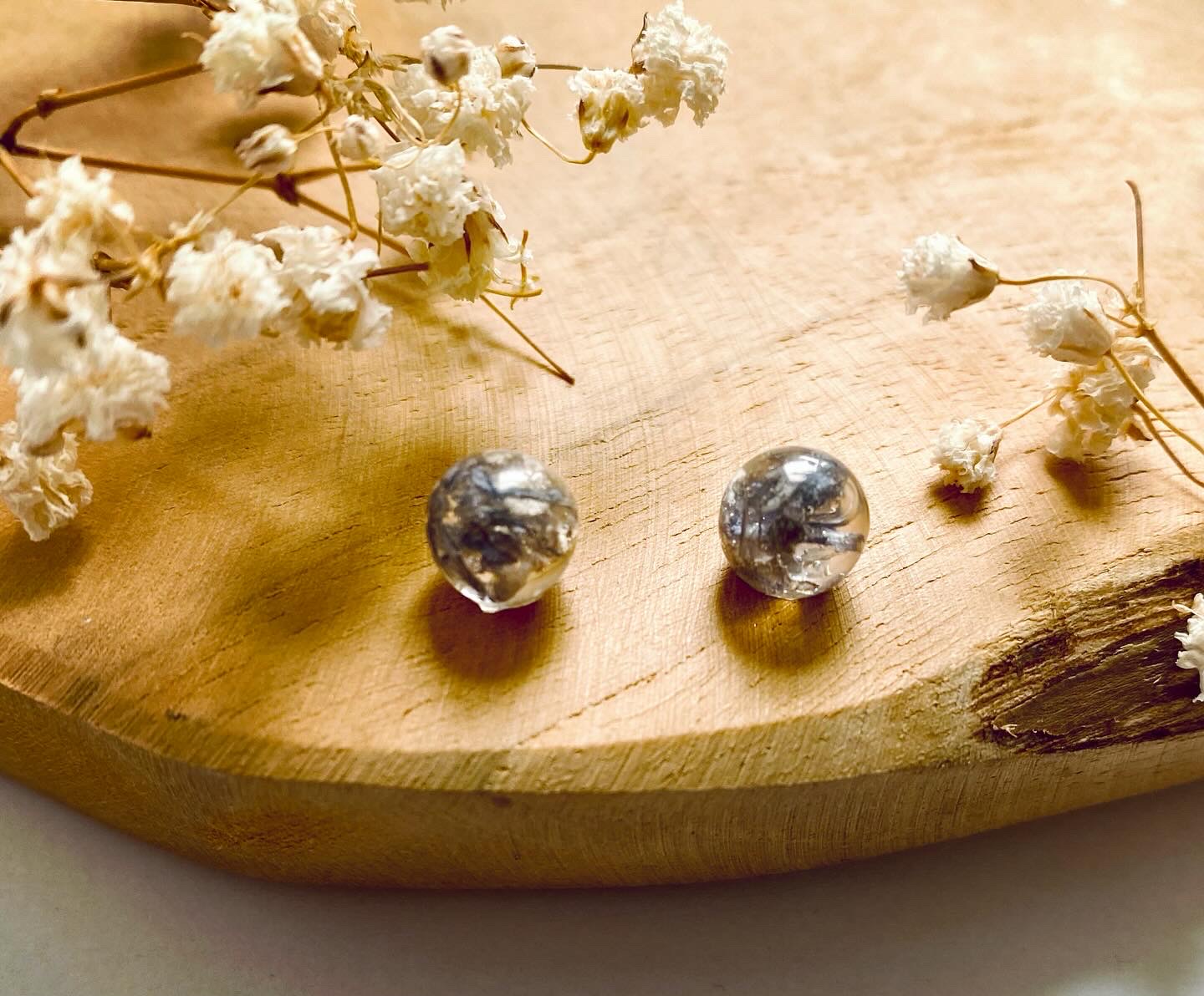 Náušnice koule s pravými sušenými květy Ibišek.Velikost: 0.5 cm.Puzety: chirurgická ocel.