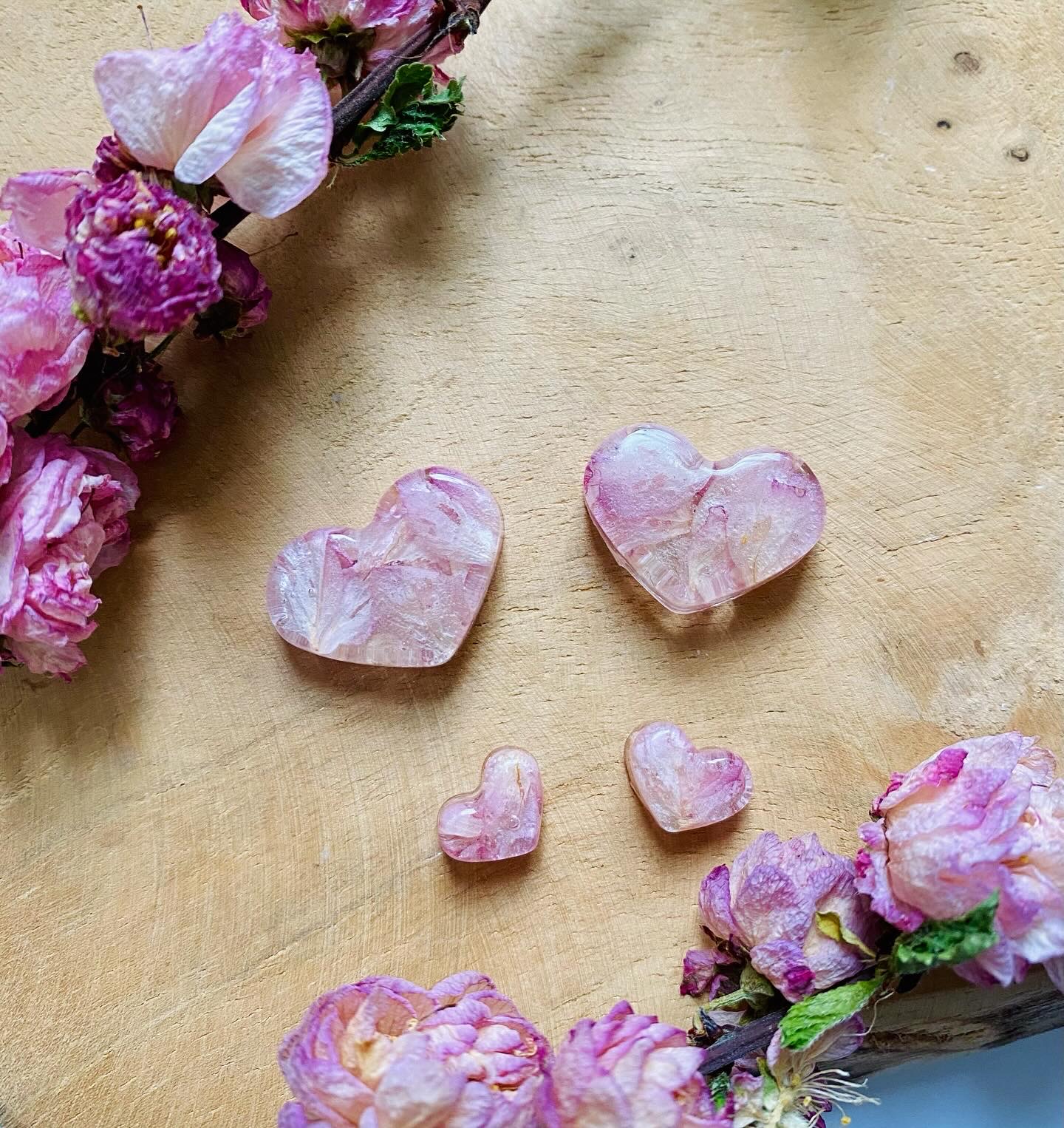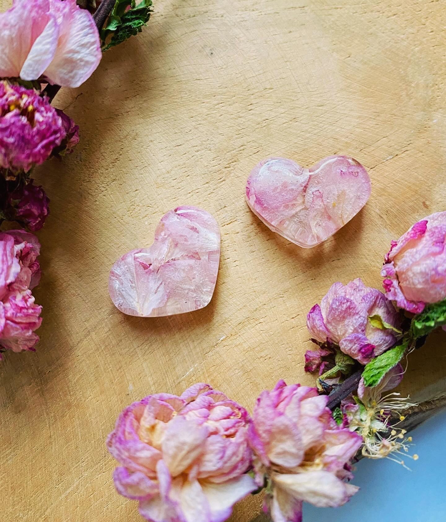 Náušnice srdíčka s pravými sušenými květy Sakury.Velikost: 1,8 cm.Puzety: chirurgická ocel.