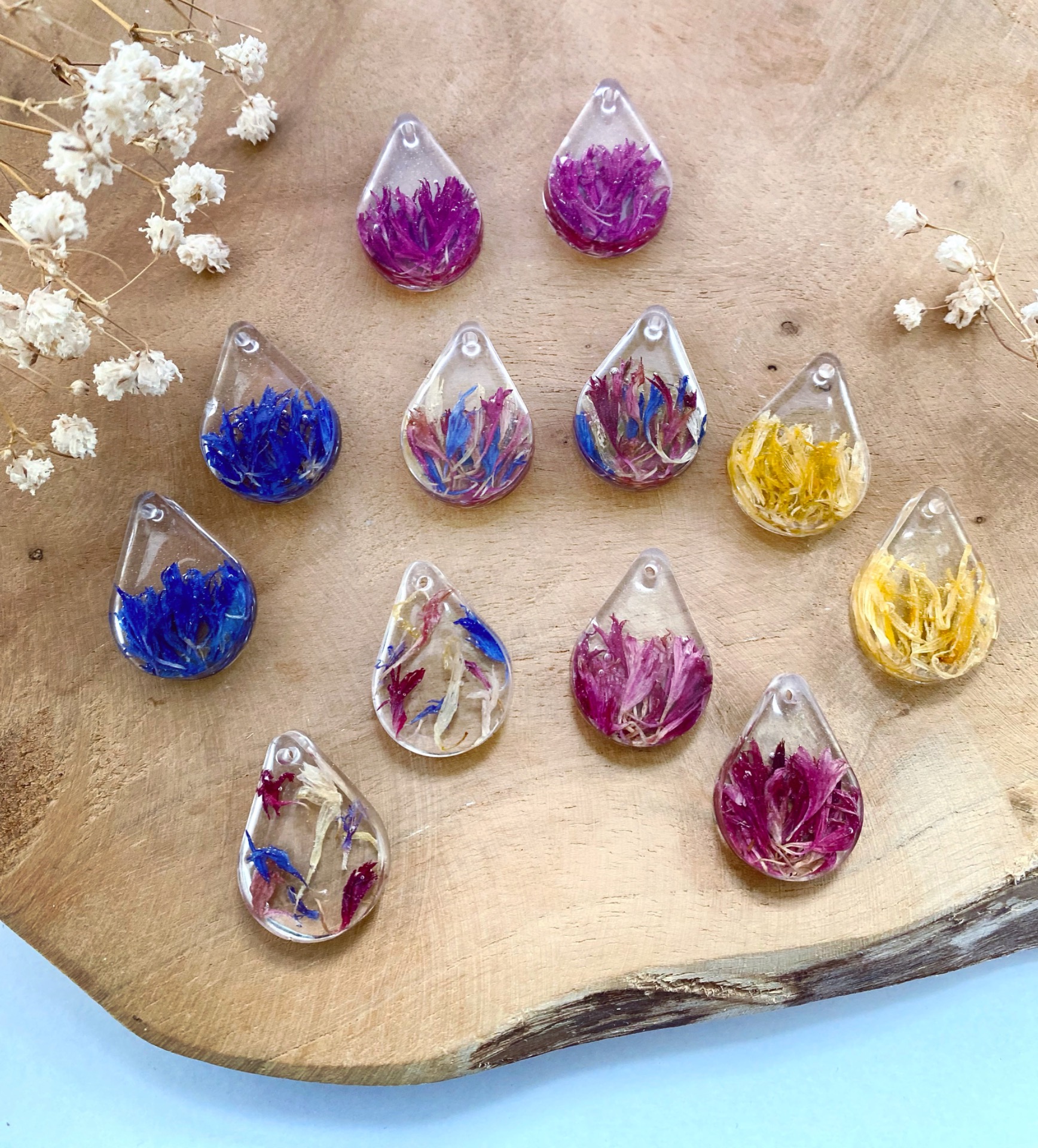 Náušnice visací kapky s pravými sušenými květy.