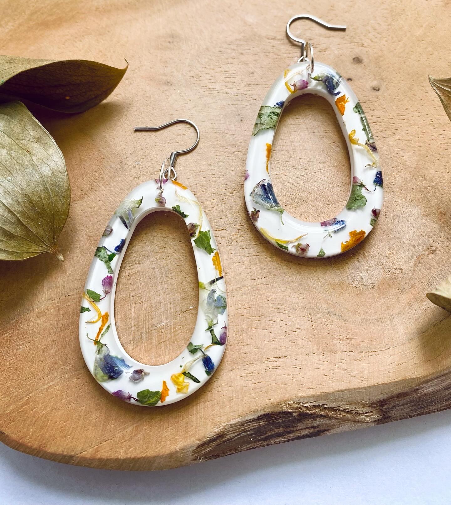 Náušnice visací ovály s pravými sušenými květy Lučního kvítí.
