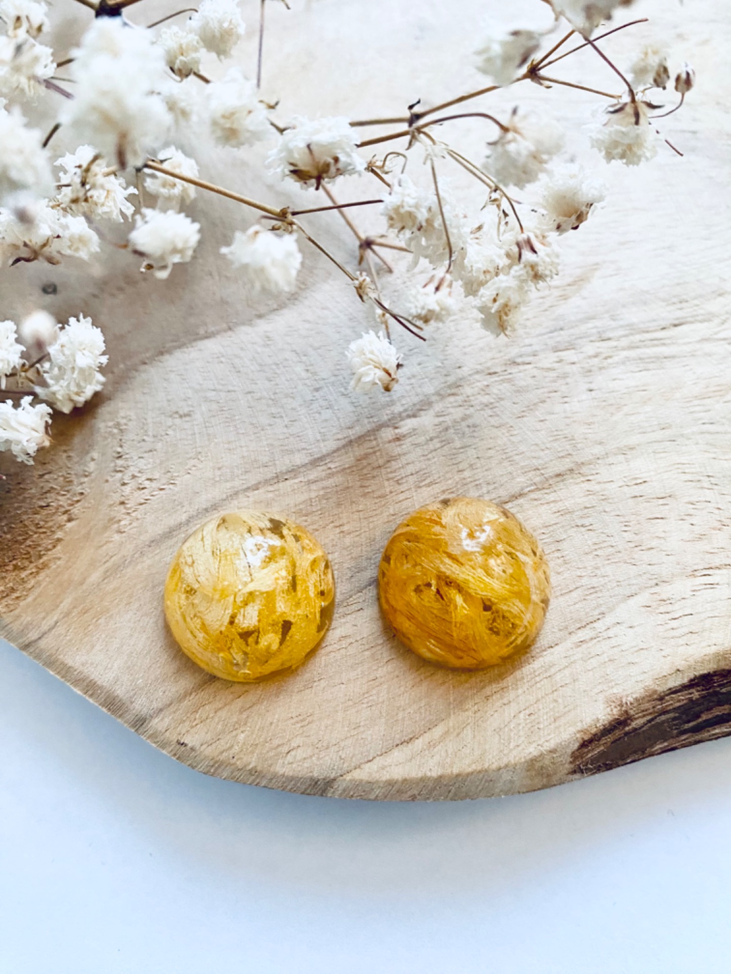 Střední půlkuličky s pravými sušenými květy Měsíčku.Velikost: 1,8 cm.Puzety: Chirurgická ocel.