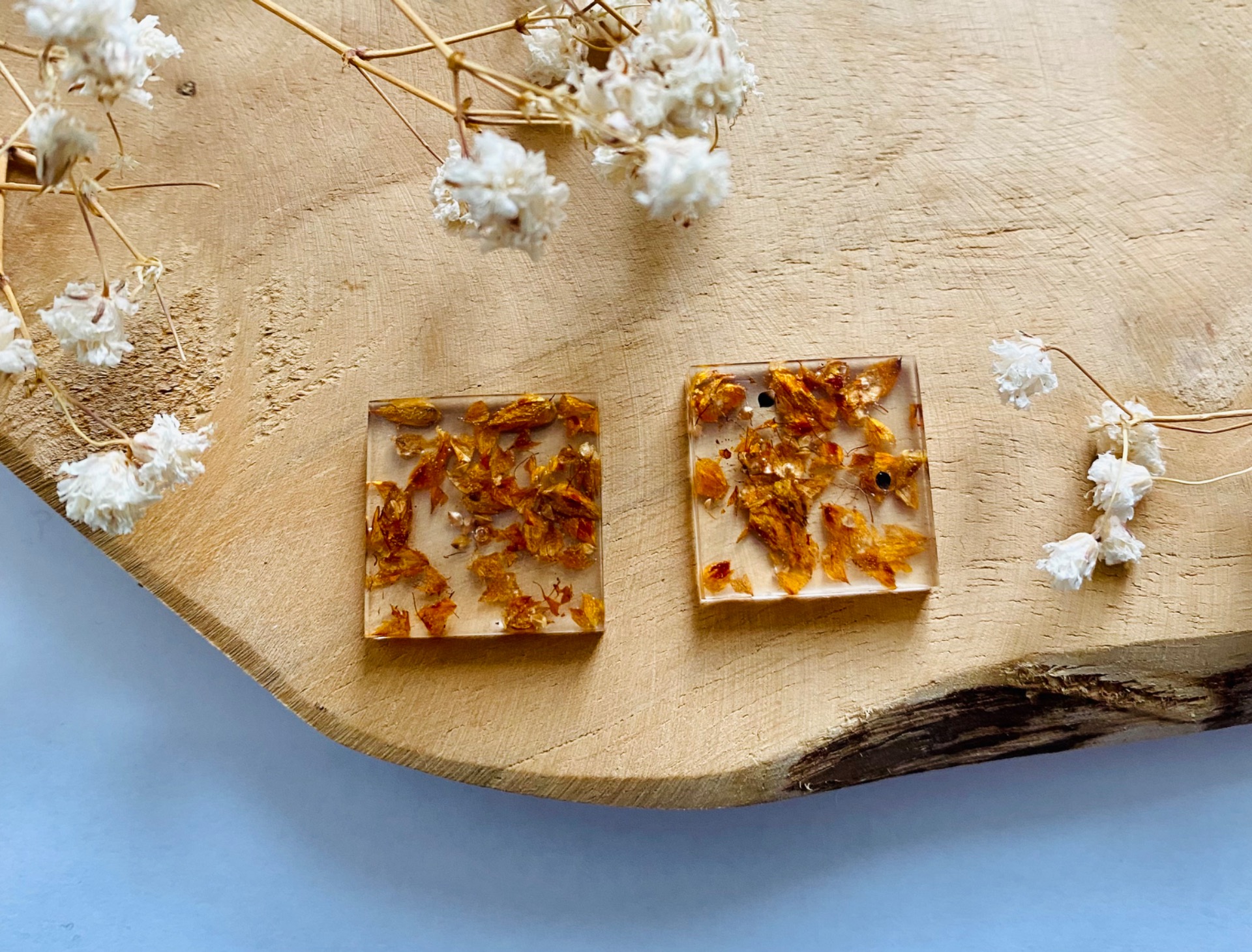 Náušnice velké čtverce s pravými sušenými květy hnědého Mechu.Velikost: 2 cm.Puzety: Chirurgická ocel.