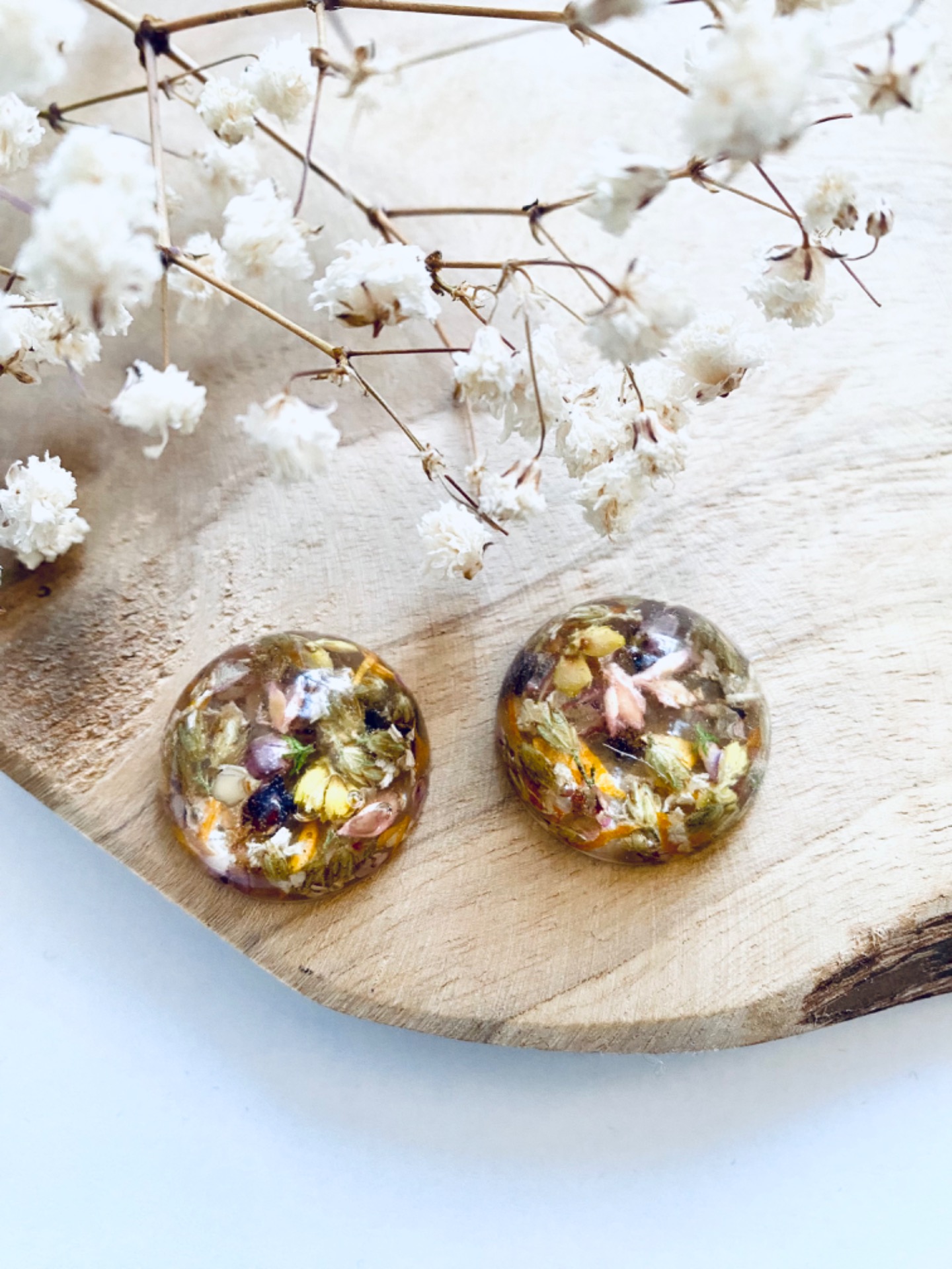Velké půlkuličky s pravými sušenými květy.Velikost: 2,2 cm.Puzety: Chirurgická ocel.