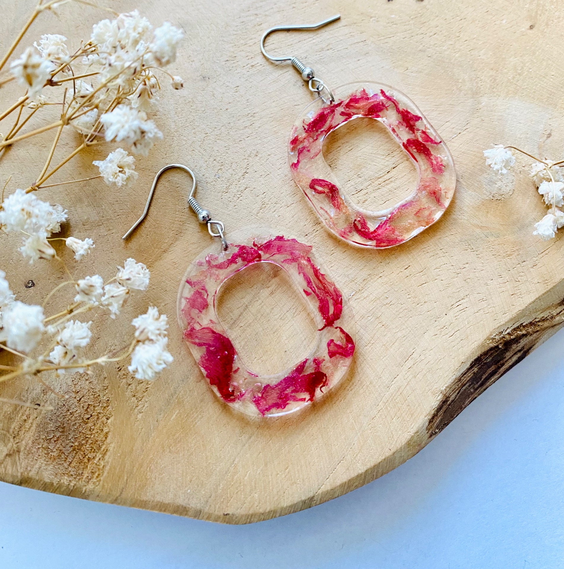 Náušnice visací s pravými sušenými květy.Velikost: 3,5 cm.Háčky: Chirurgická ocel.