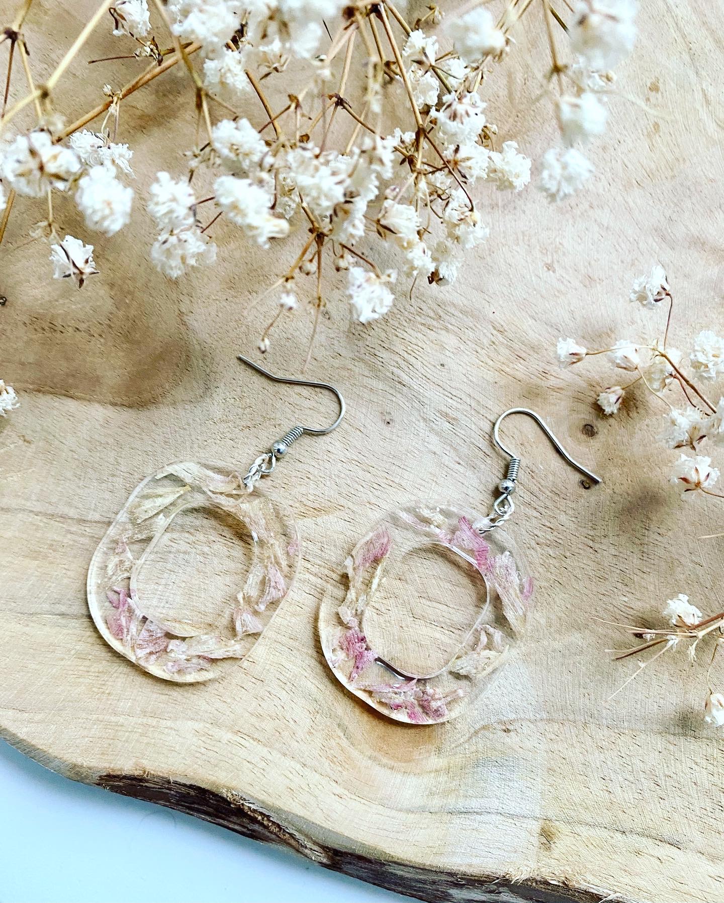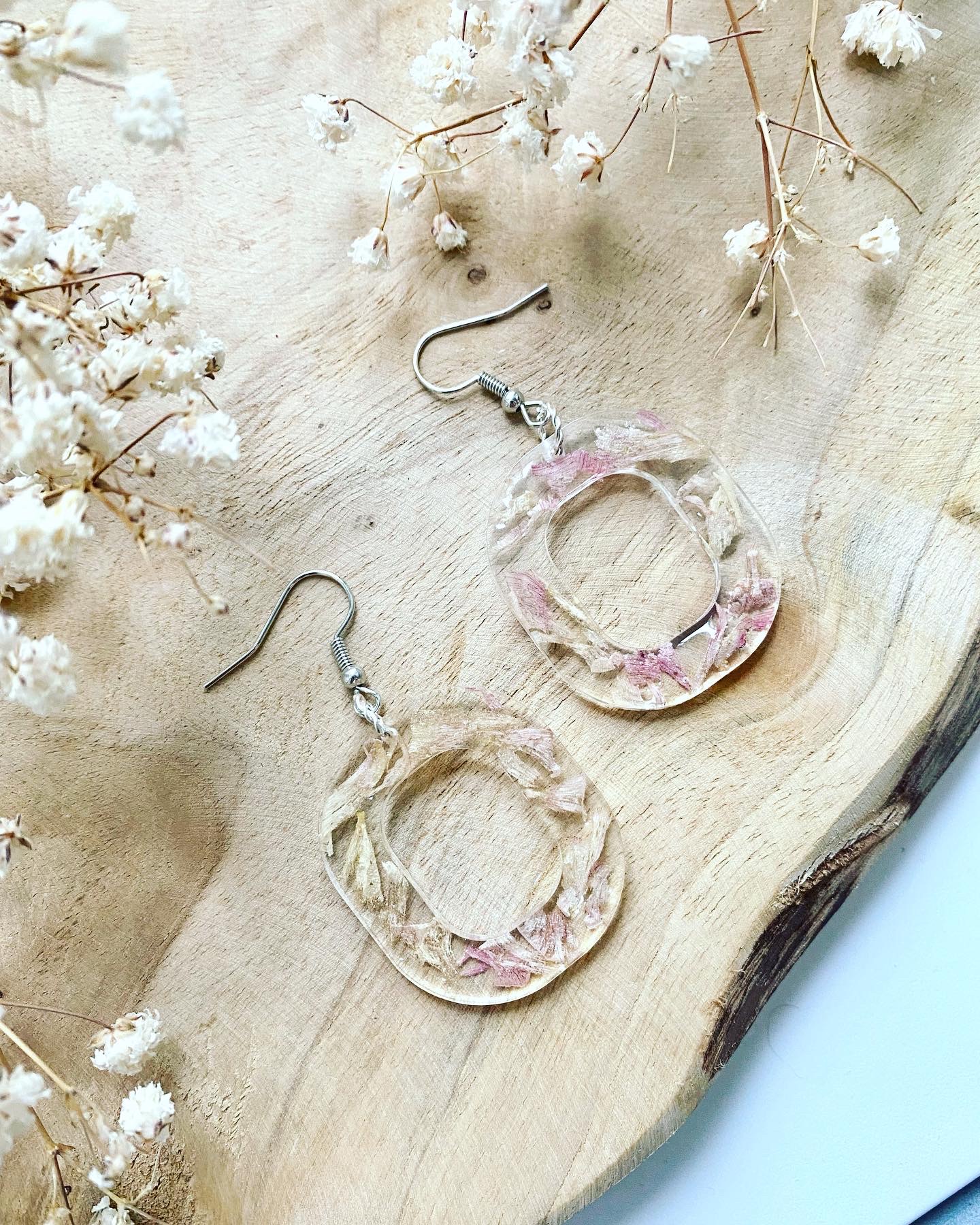 Náušnice visací s pravými sušenými květy.