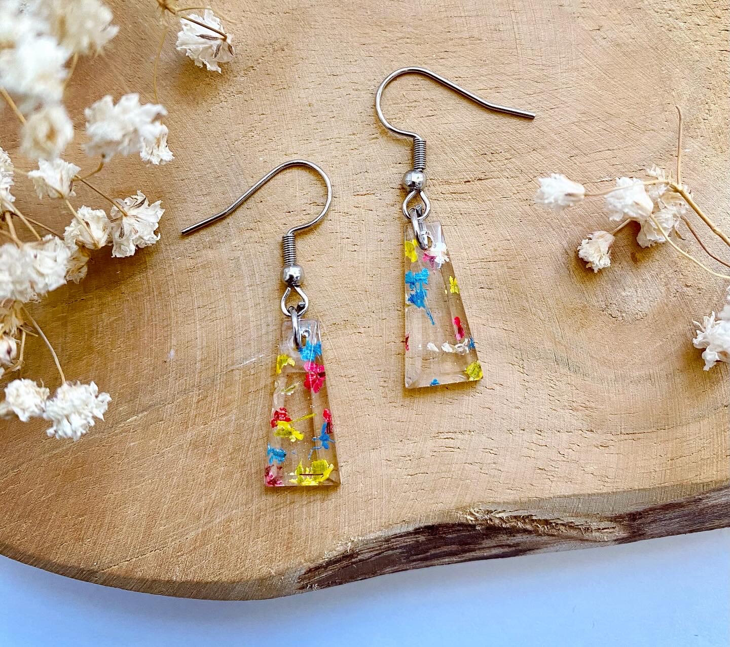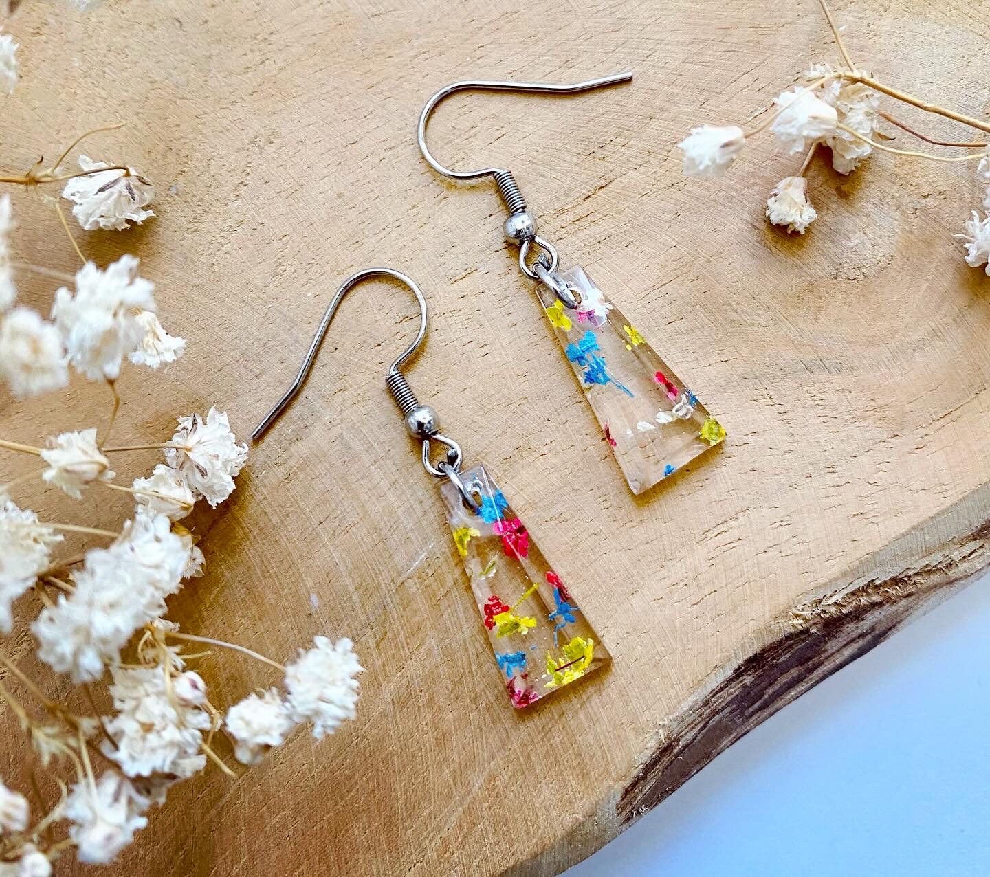 Náušnice visací krystaly s pravými sušenými květy.Velikost: 2 cm.Háčky: Chirurgická ocel.