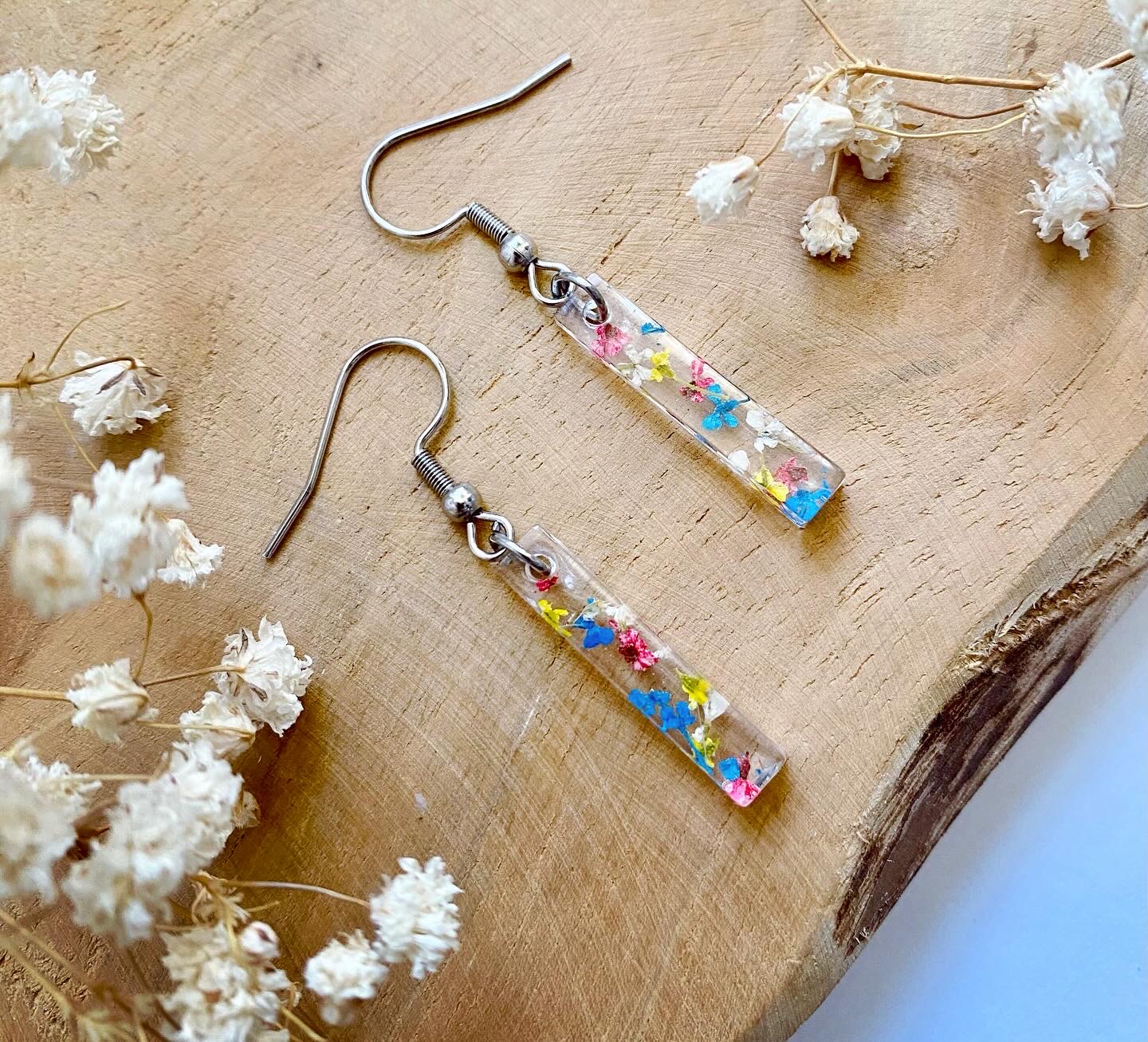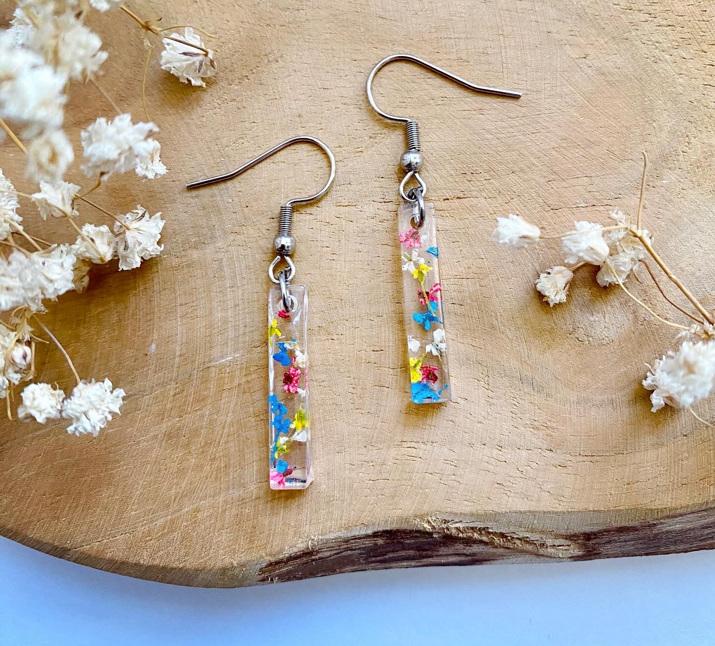 Náušnice visací krystaly s pravými sušenými květy.
