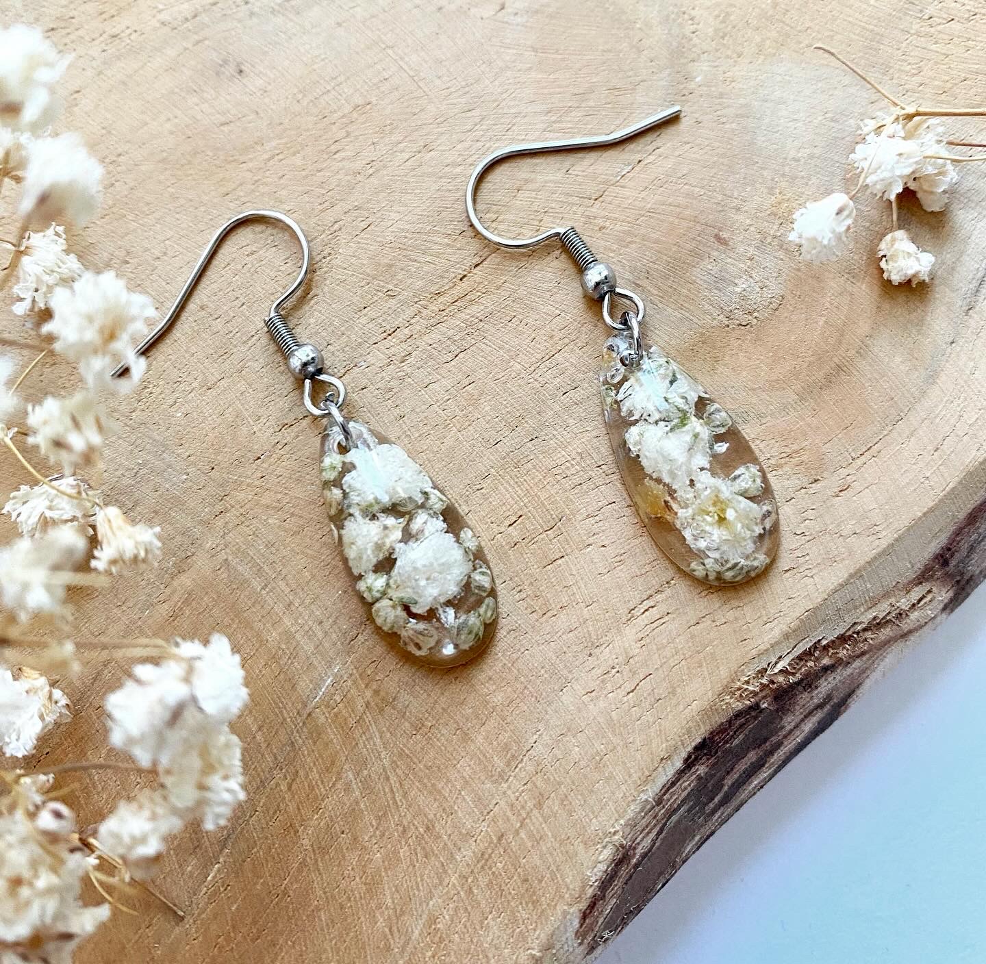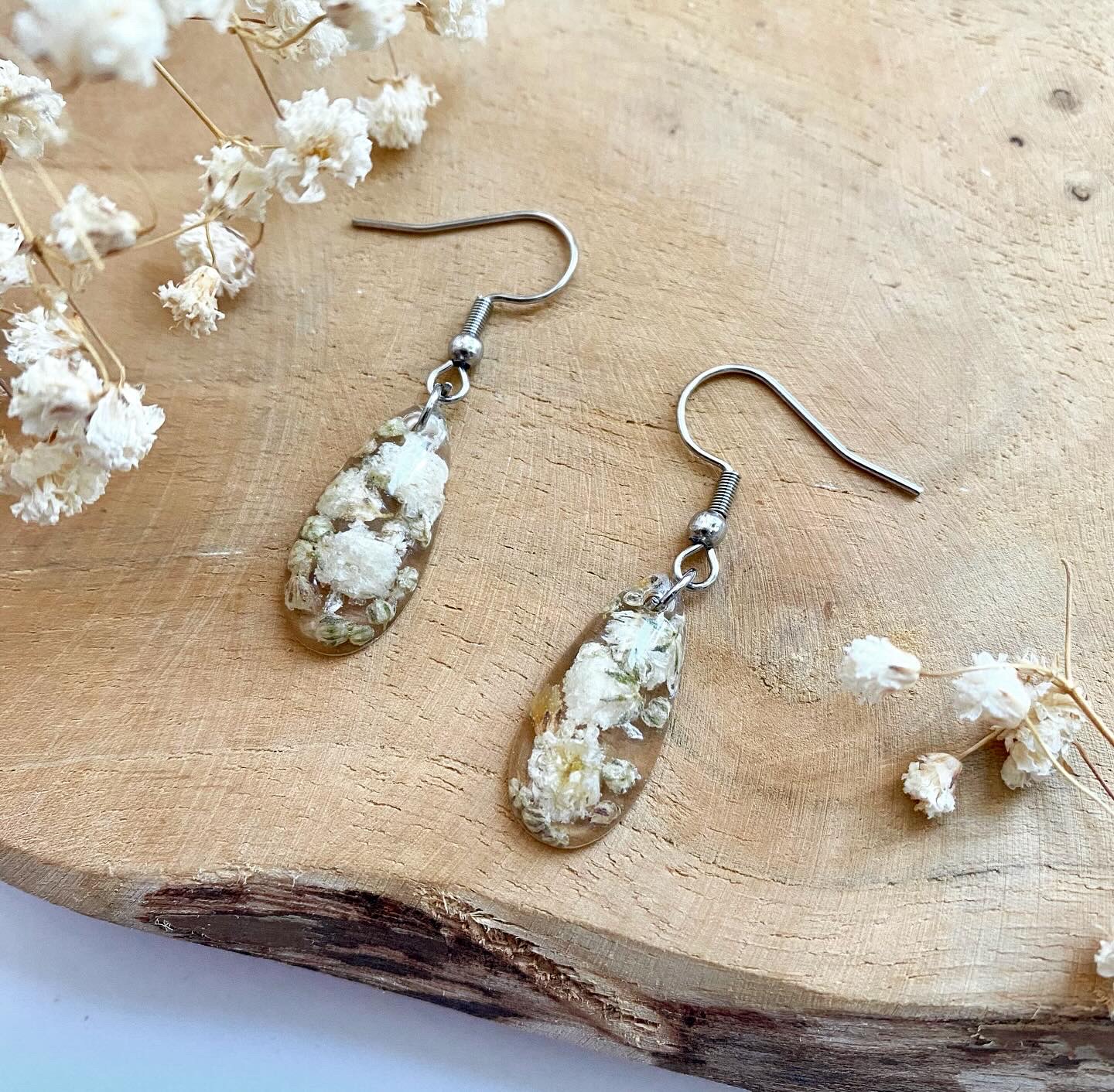 Náušnice visací krystaly s pravými sušenými květy Gypsophila.Velikost: 2,3 cm.Háčky: Chirurgická ocel.