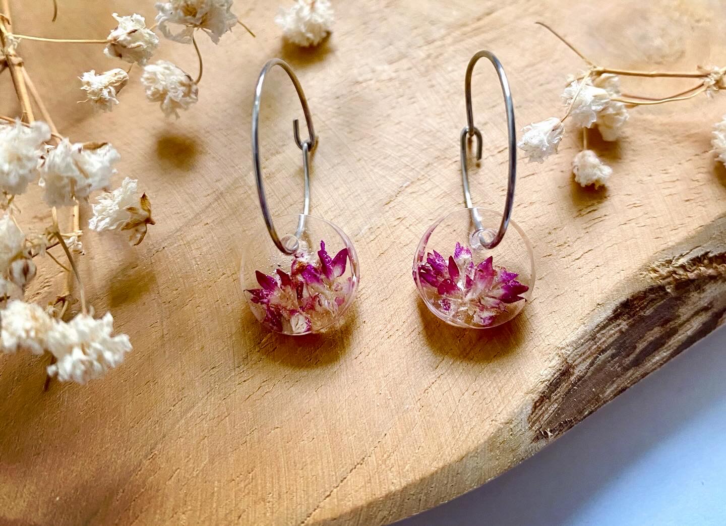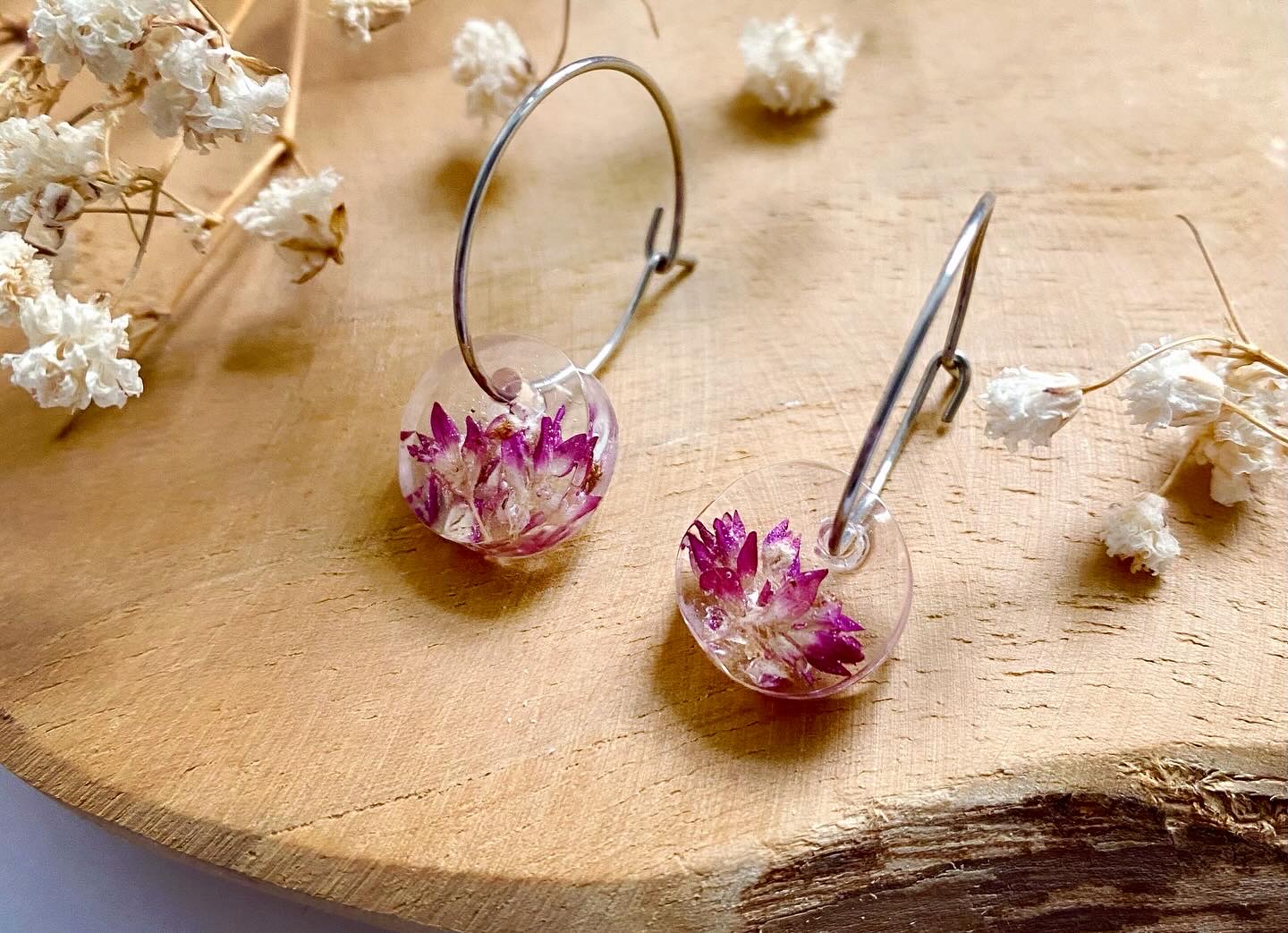 Náušnice visací s pravými sušenými květy.Velikost: 1,1 cm.Háčky: chirurgická ocel / 2 cm.