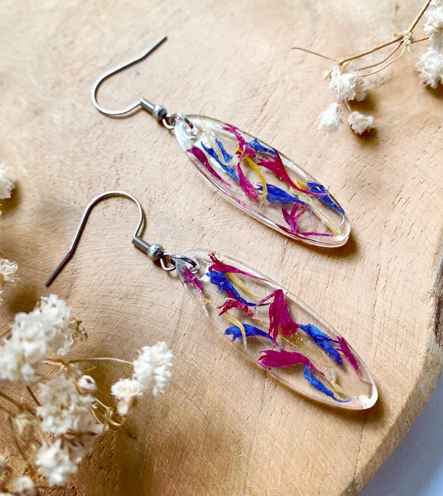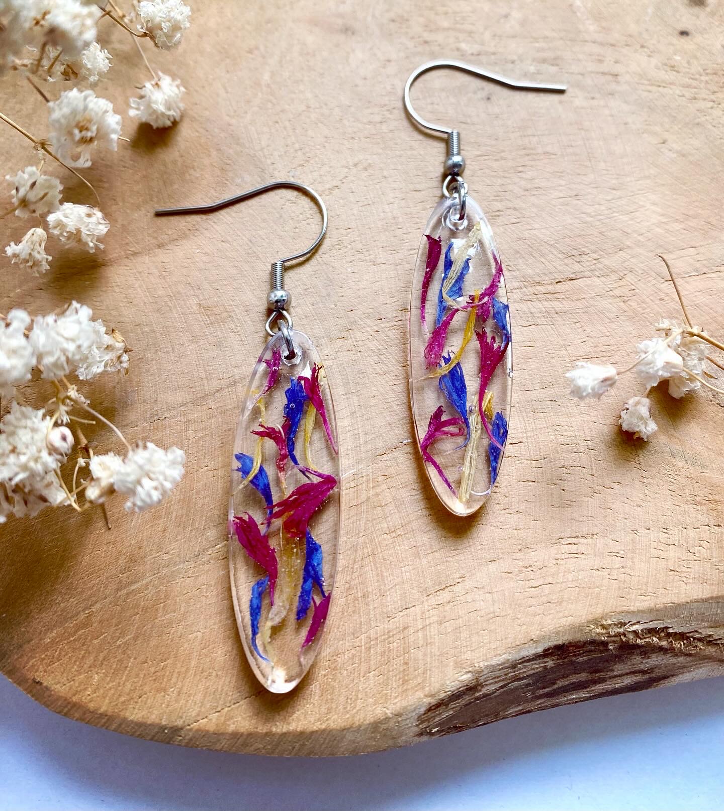 Náušnice visací ovály s pravými sušenými květy Chrpy.Velikost: 4 cm.Háčky: chirurgická ocel.