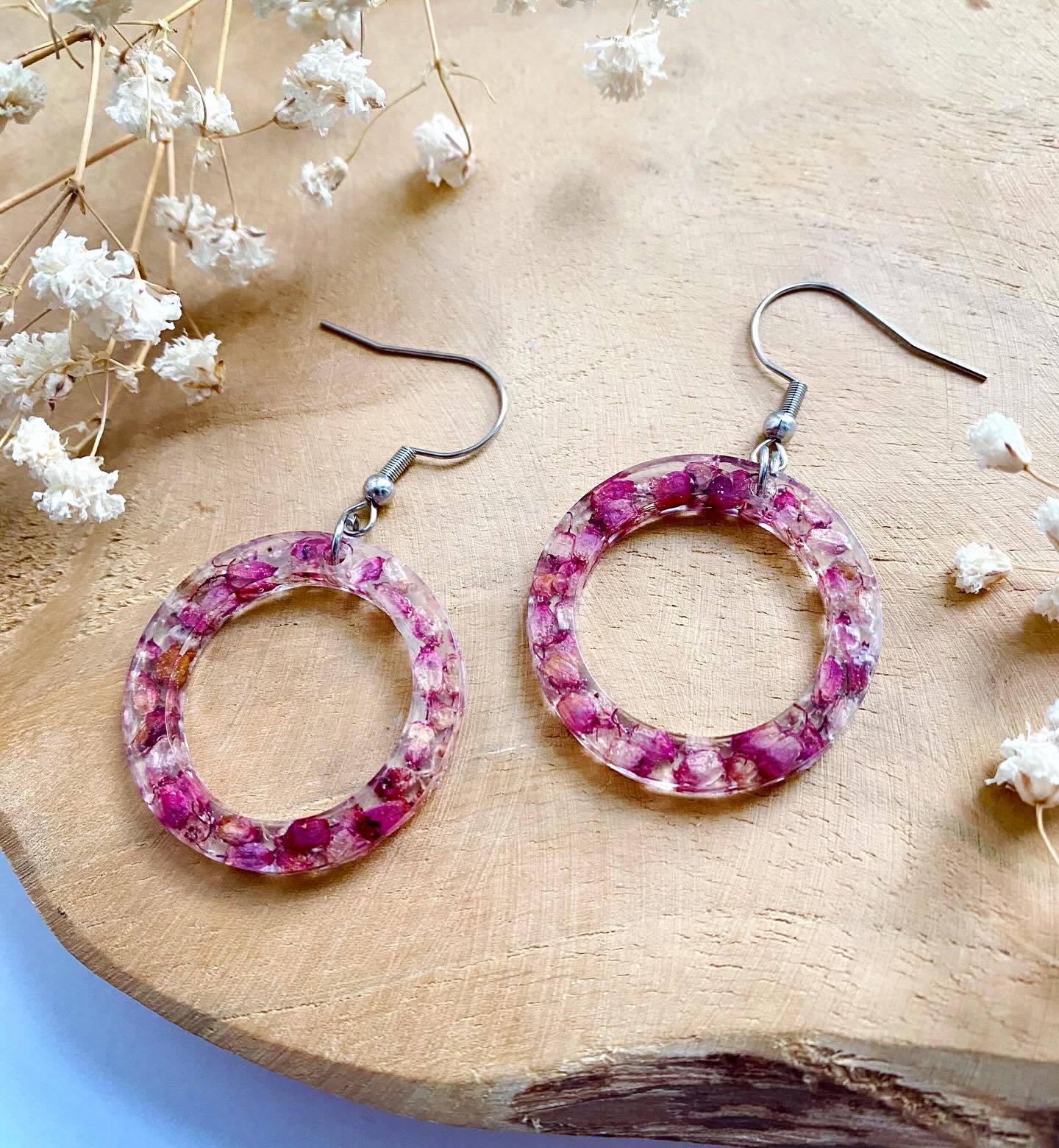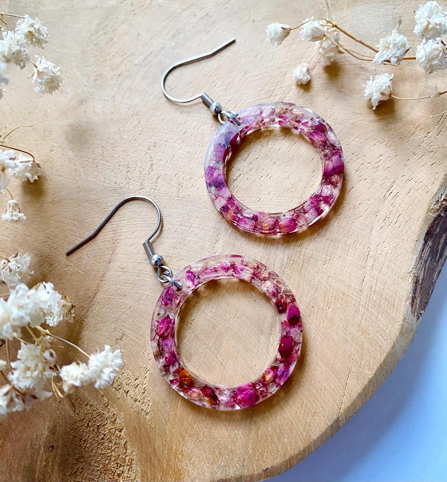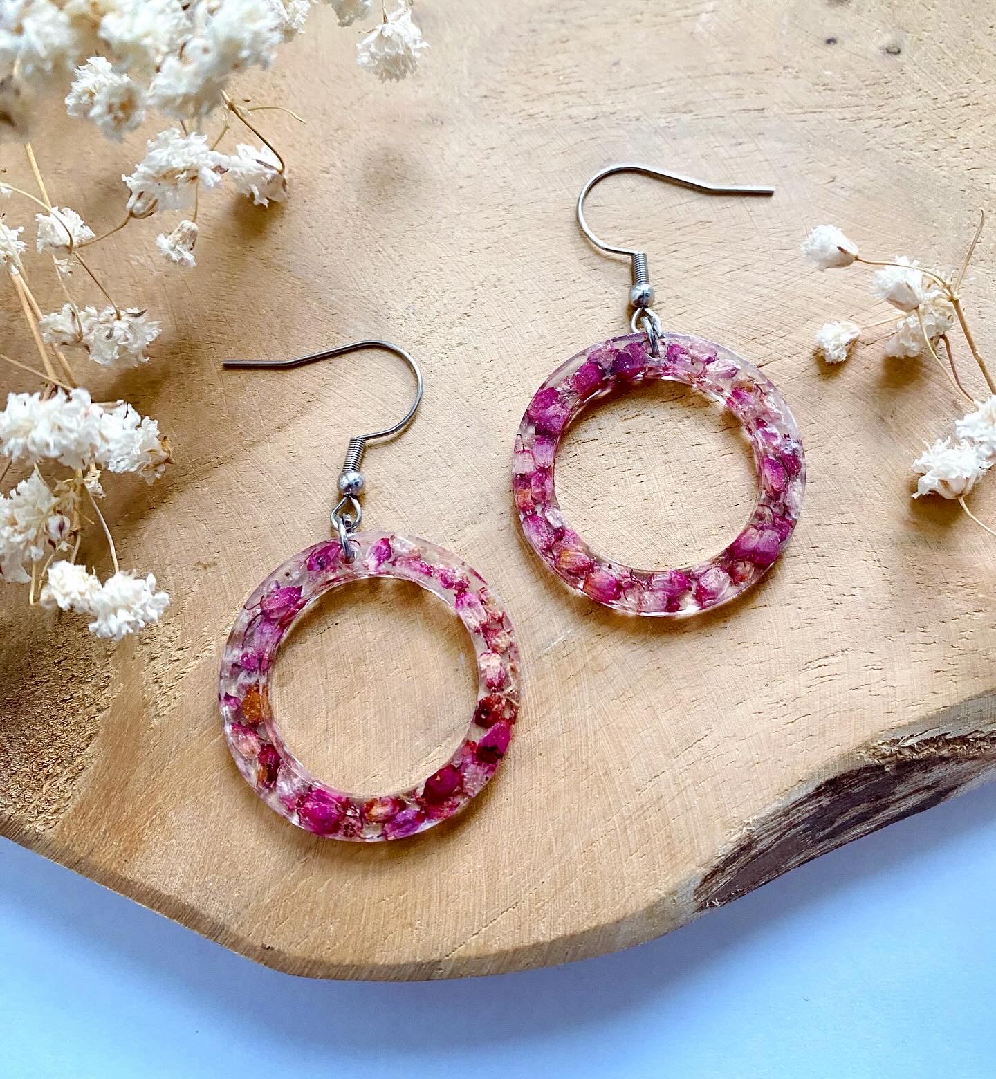 Náušnice visací s pravými sušenými květy Vřesu Erica.Velikost: 2,9 cm.Háčky: Chirurgická ocel.