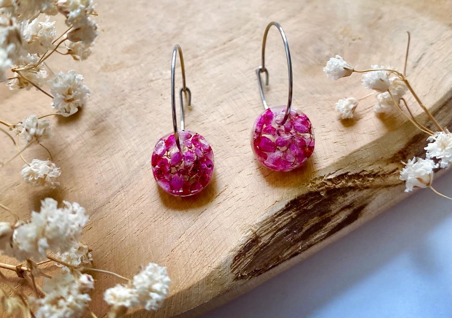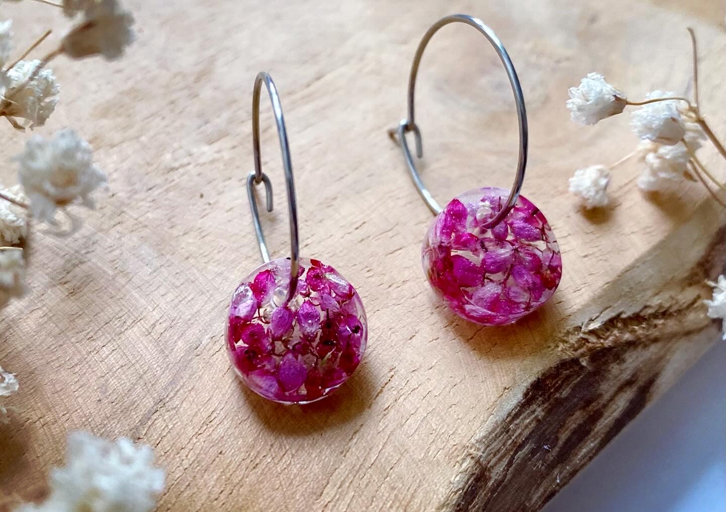 Náušnice visací s pravými sušenými květy Vřesu Erica.Velikost: 1,1 cm.Háčky: chirurgická ocel / 2 cm.