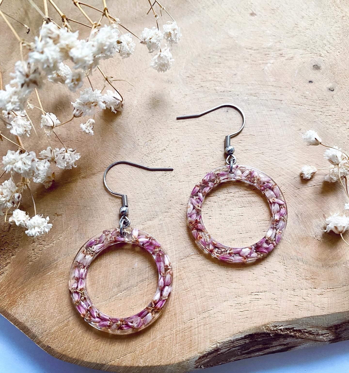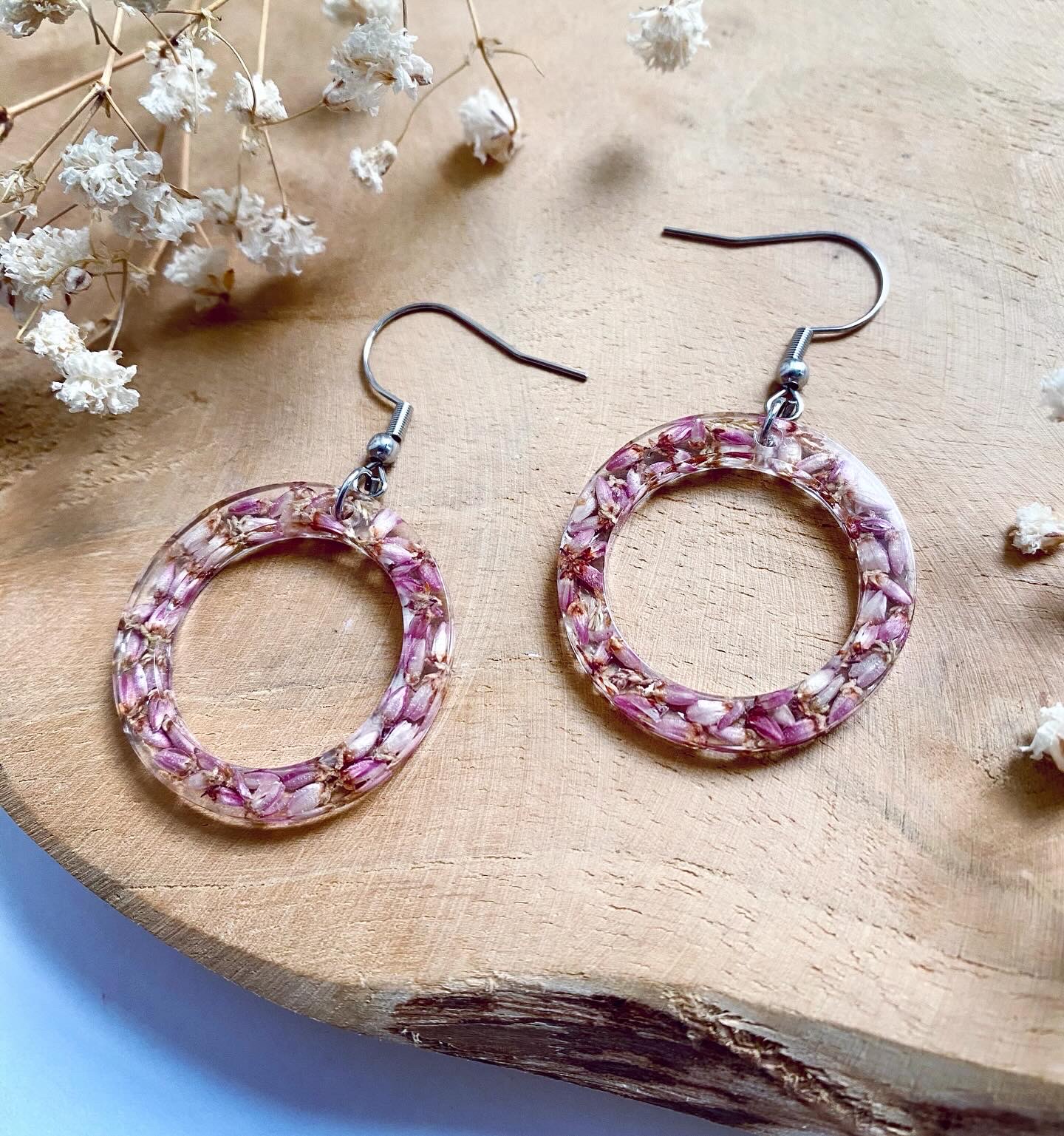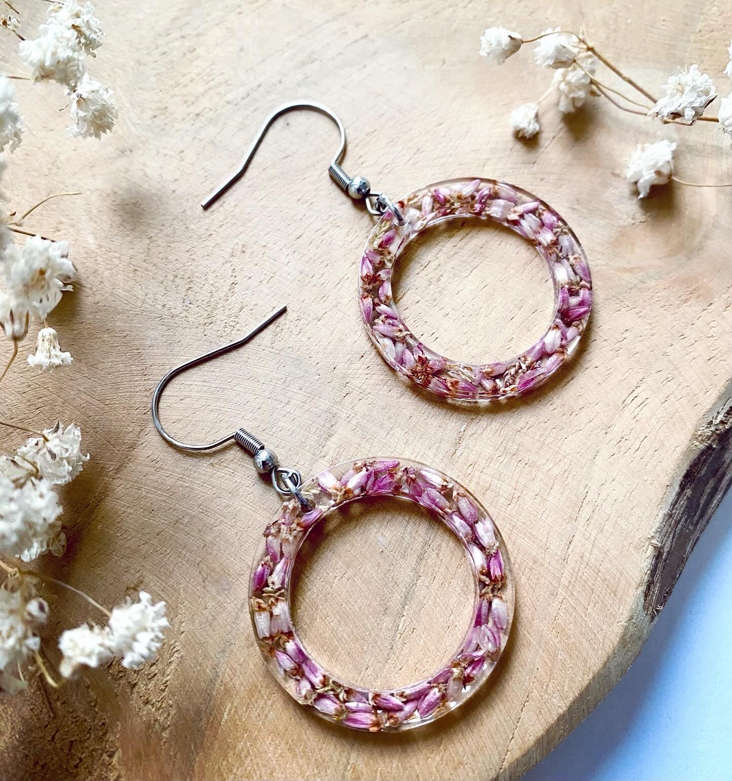 Náušnice visací s pravými sušenými květy Vřesu.Velikost: 2,9 cm.Háčky: Chirurgická ocel.