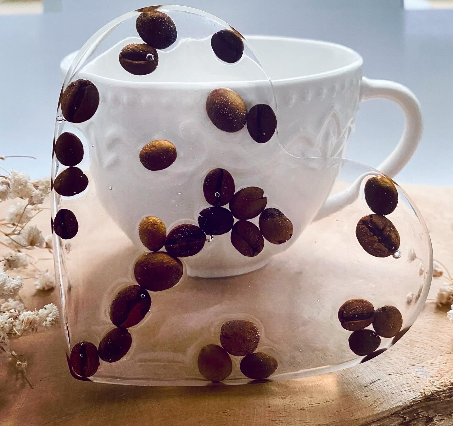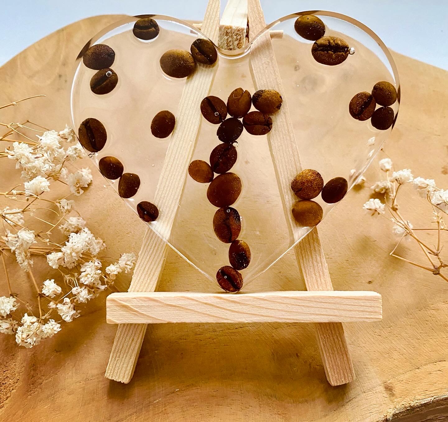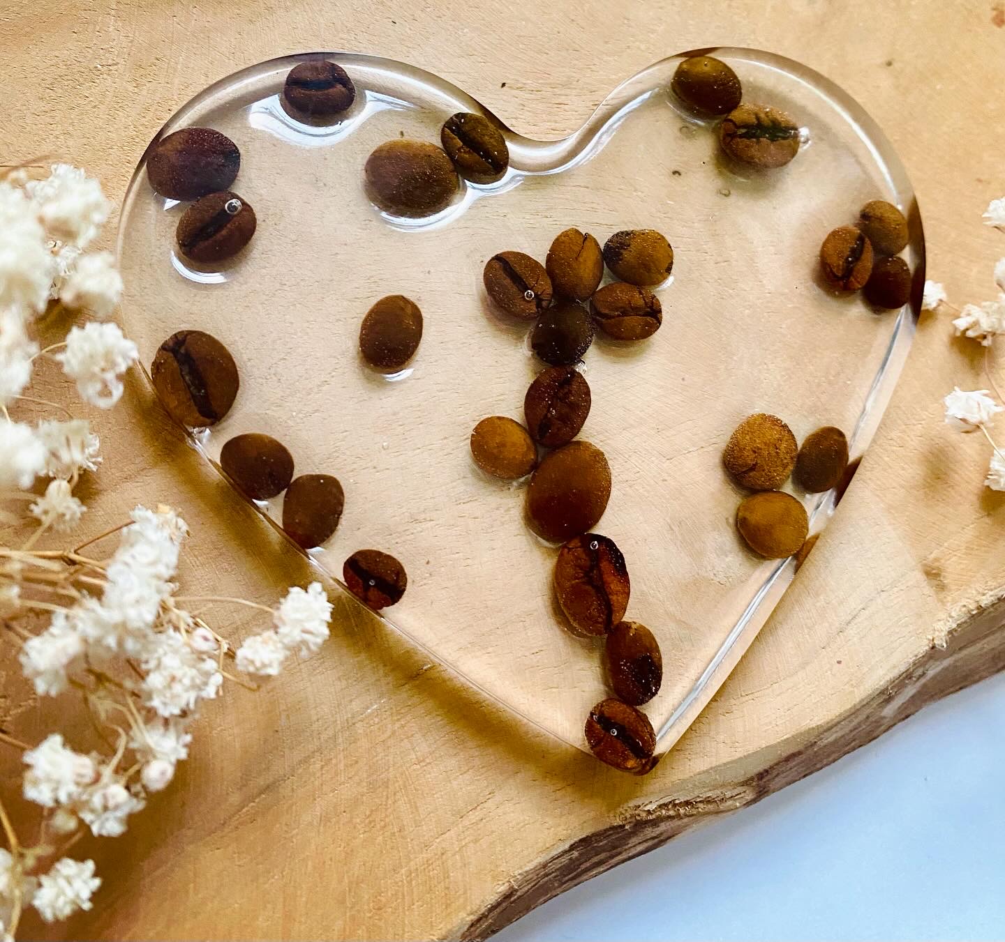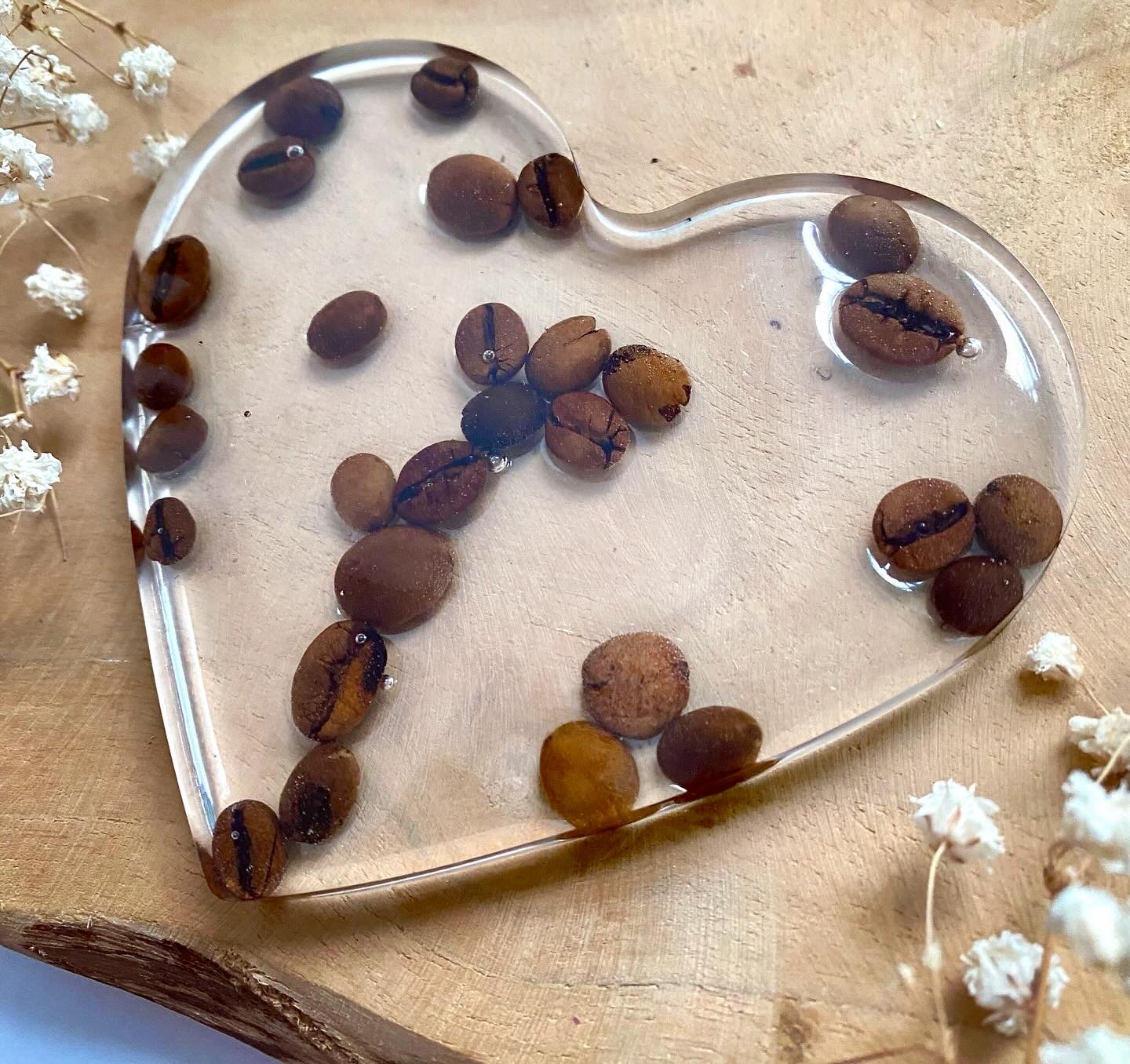 Podtácek ve tvaru srdce s pravými zrnky kávy.Velikost: 10x9 cm.