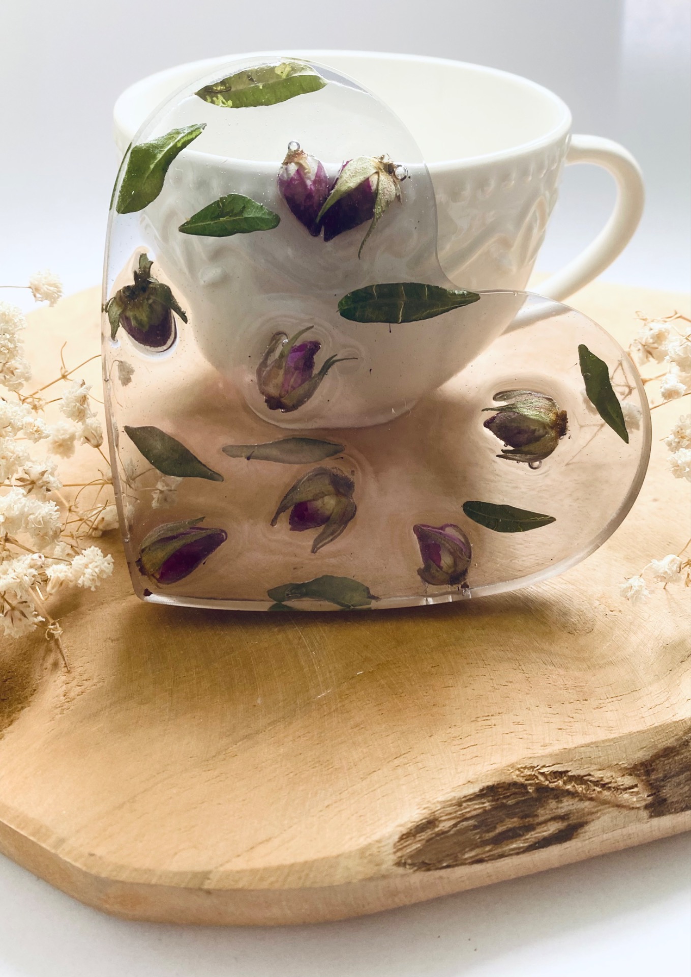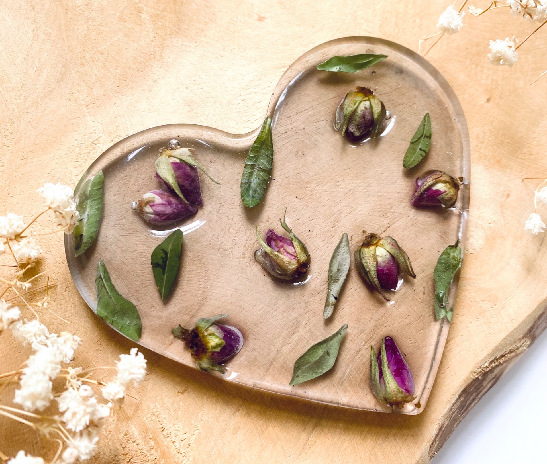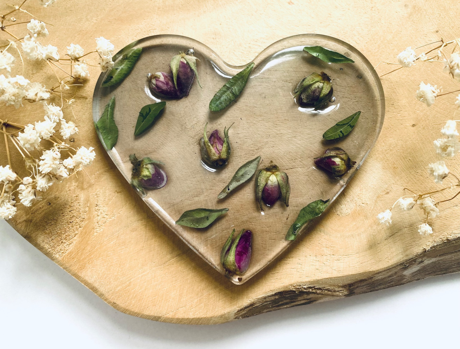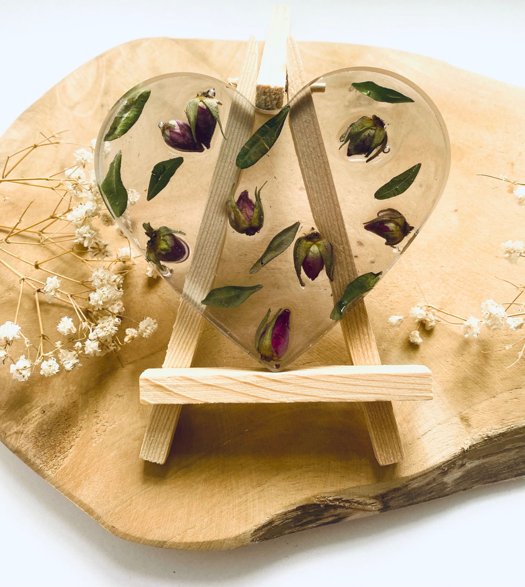 Podtácek ve tvaru srdce s pravými sušenými květy.Velikost: 10x9 cm.