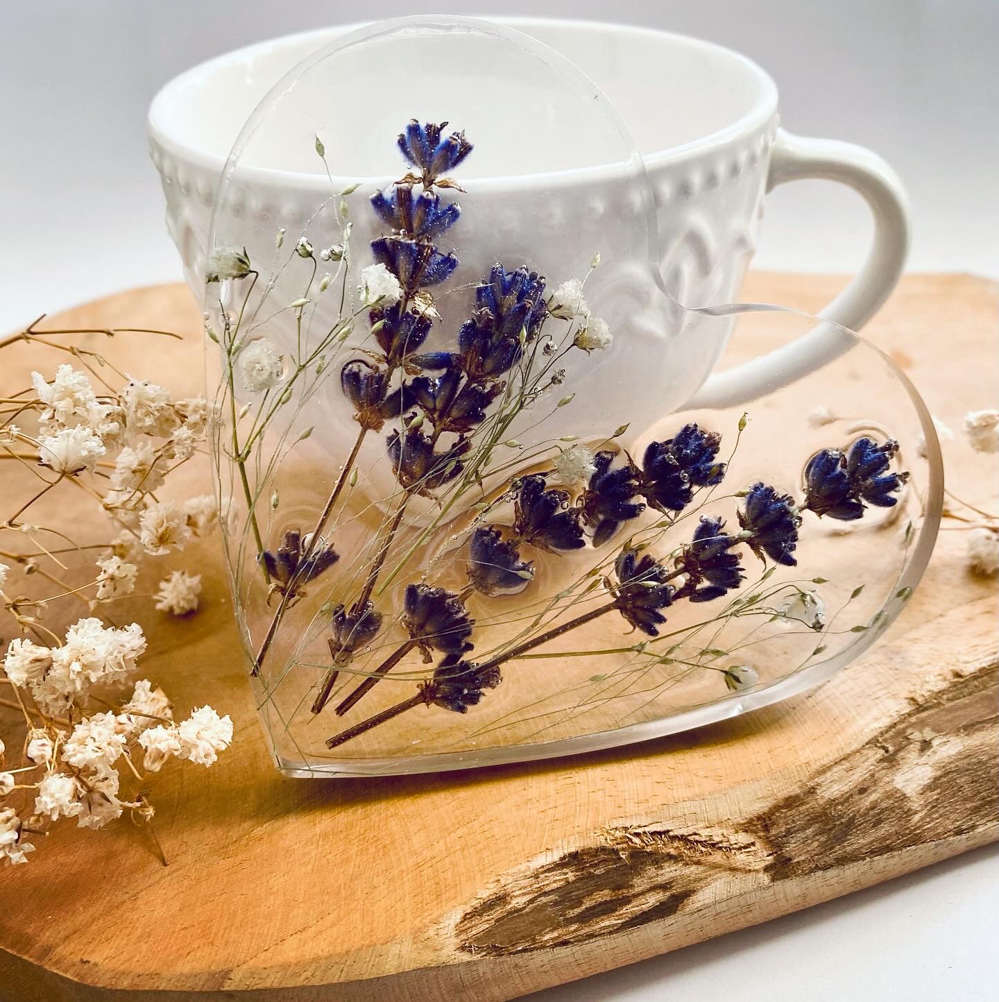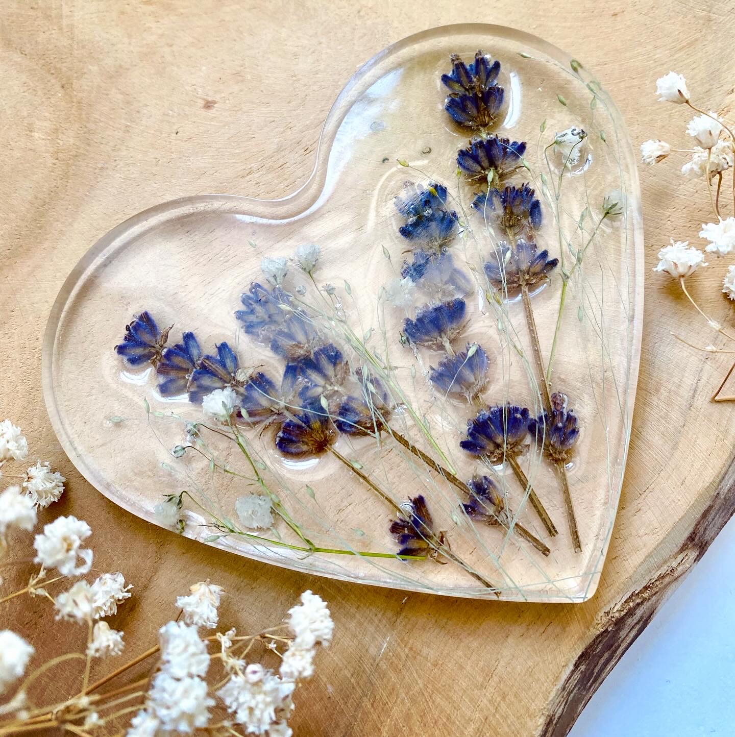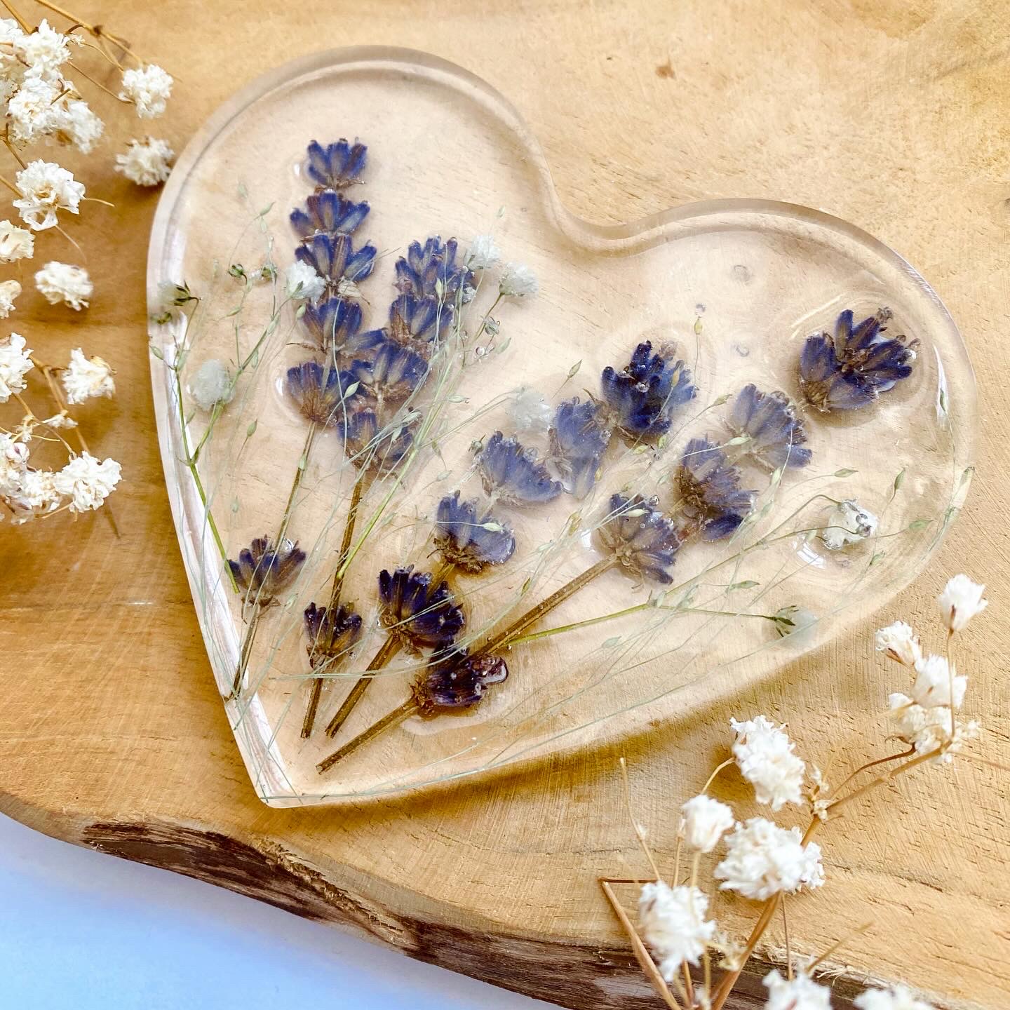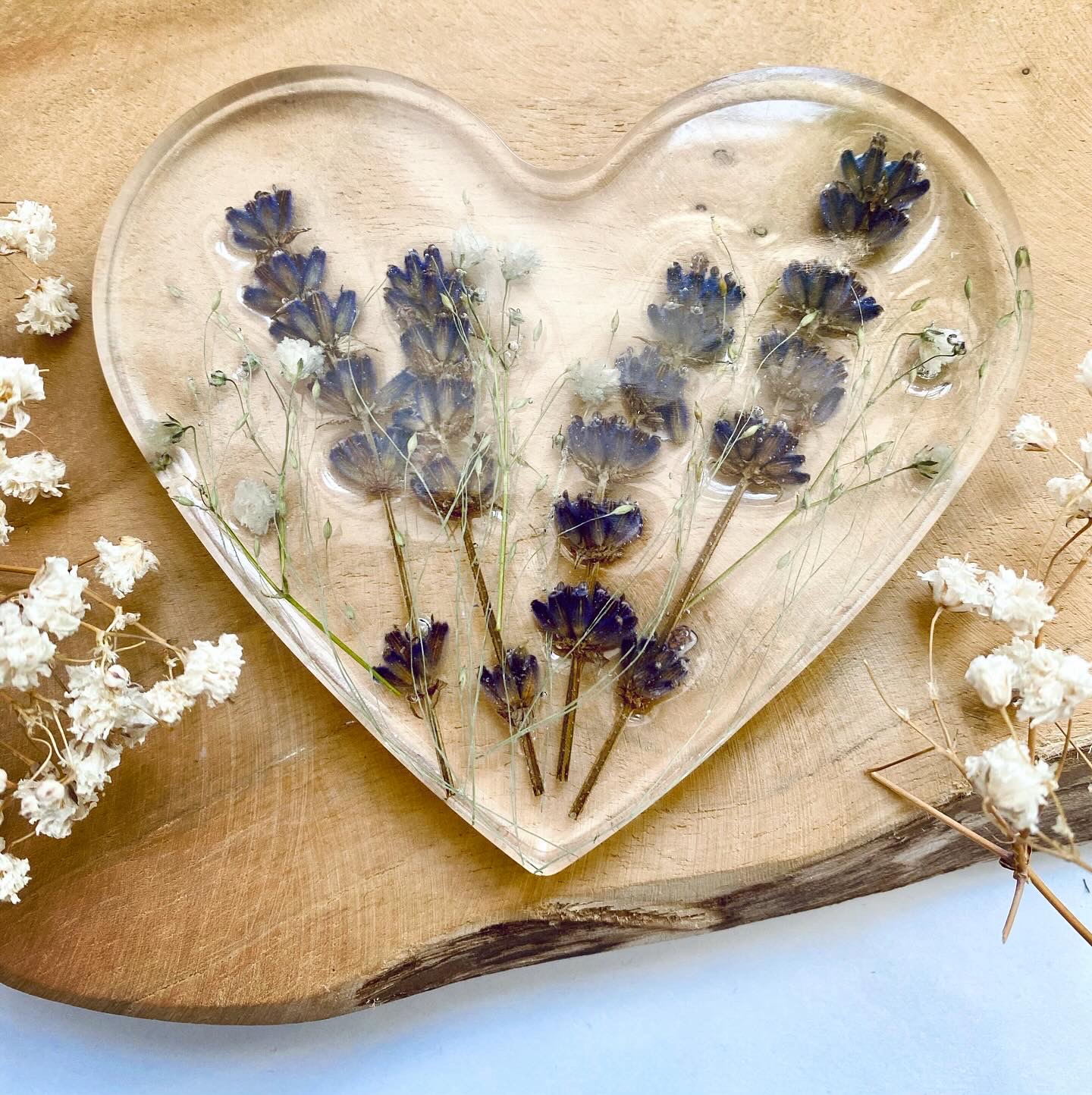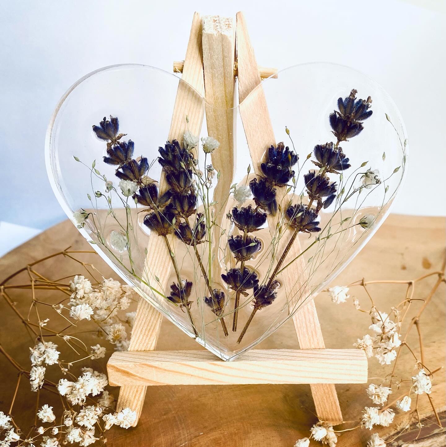 Podtácek ve tvaru srdce s pravými sušenými květy Levandule a trávy.Velikost: 10x9 cm.