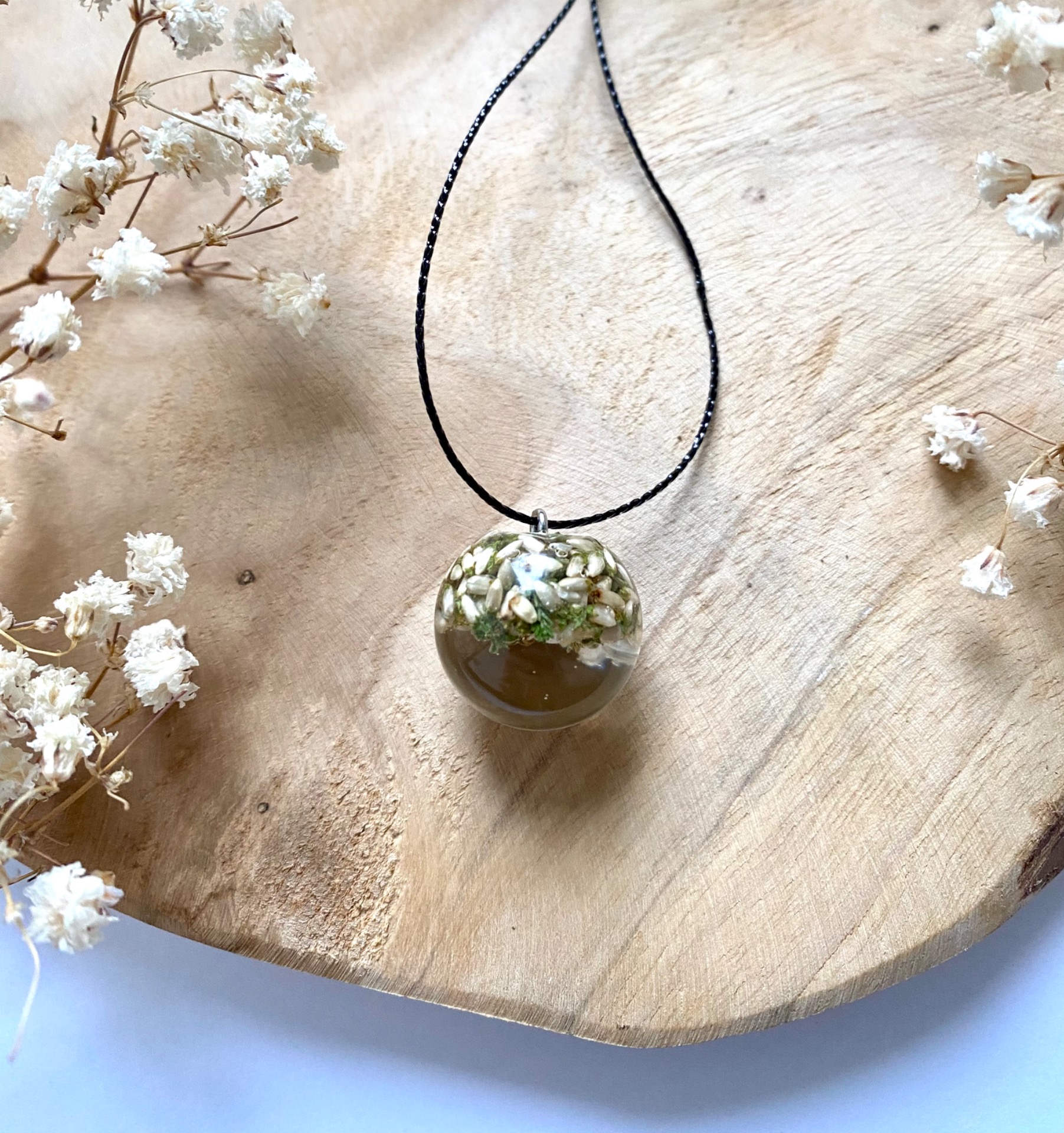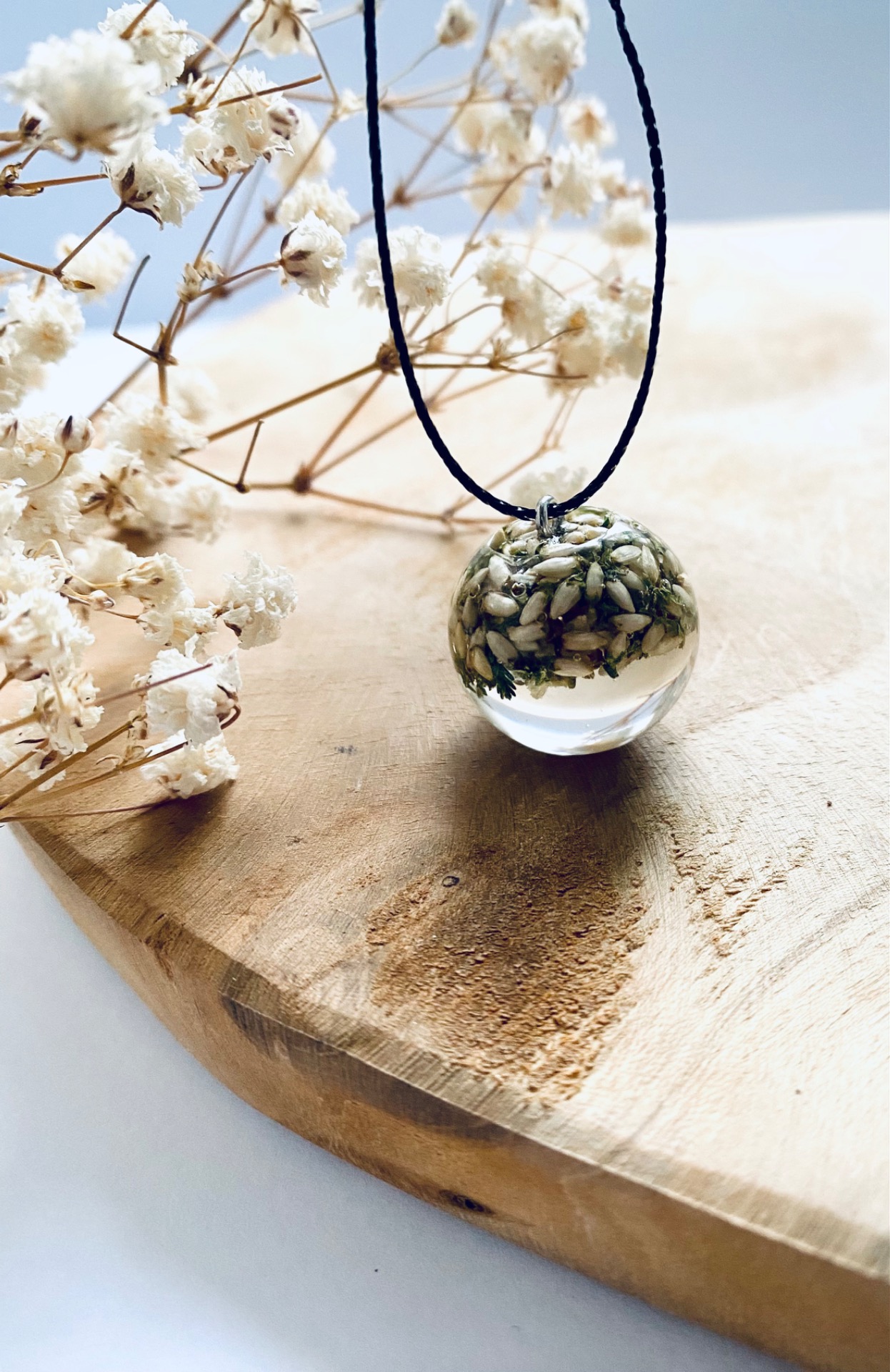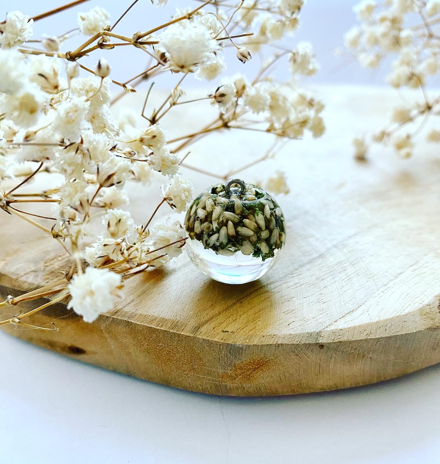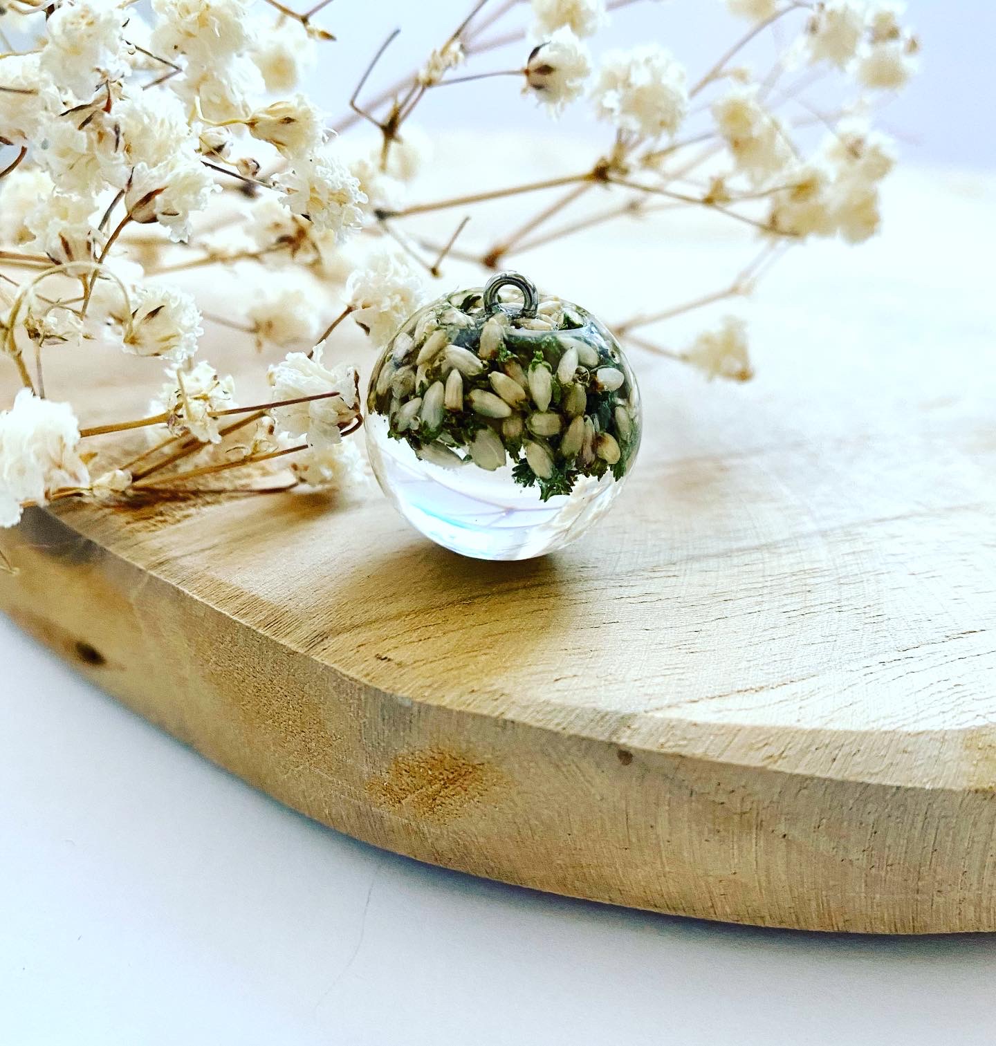 Přívěsek koule s bílým Vřesem.Háček: Chirurgická ocel.