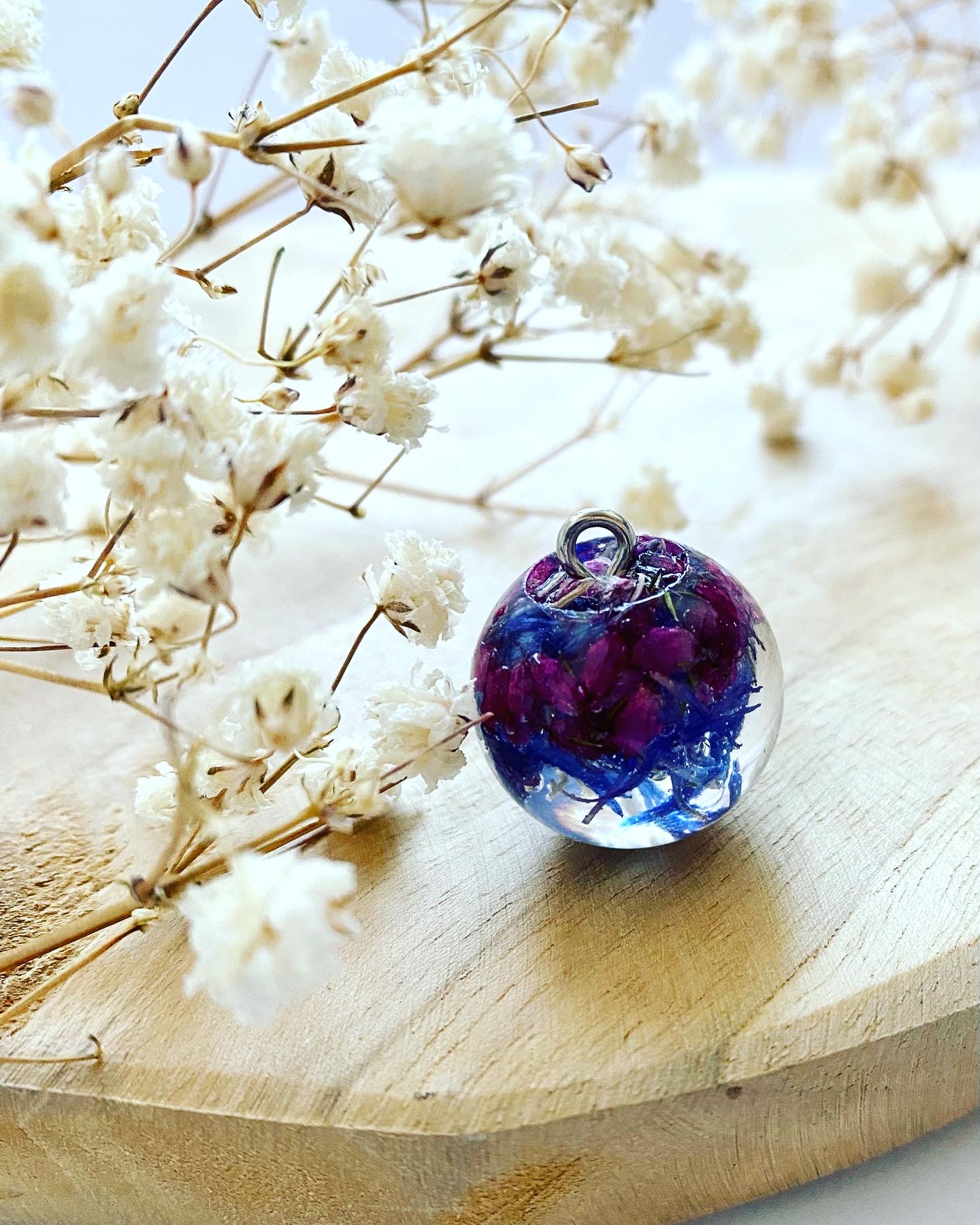 Přívěsek koule s Chrpou a Vřesem Erica.Háček: Chirurgická ocel.