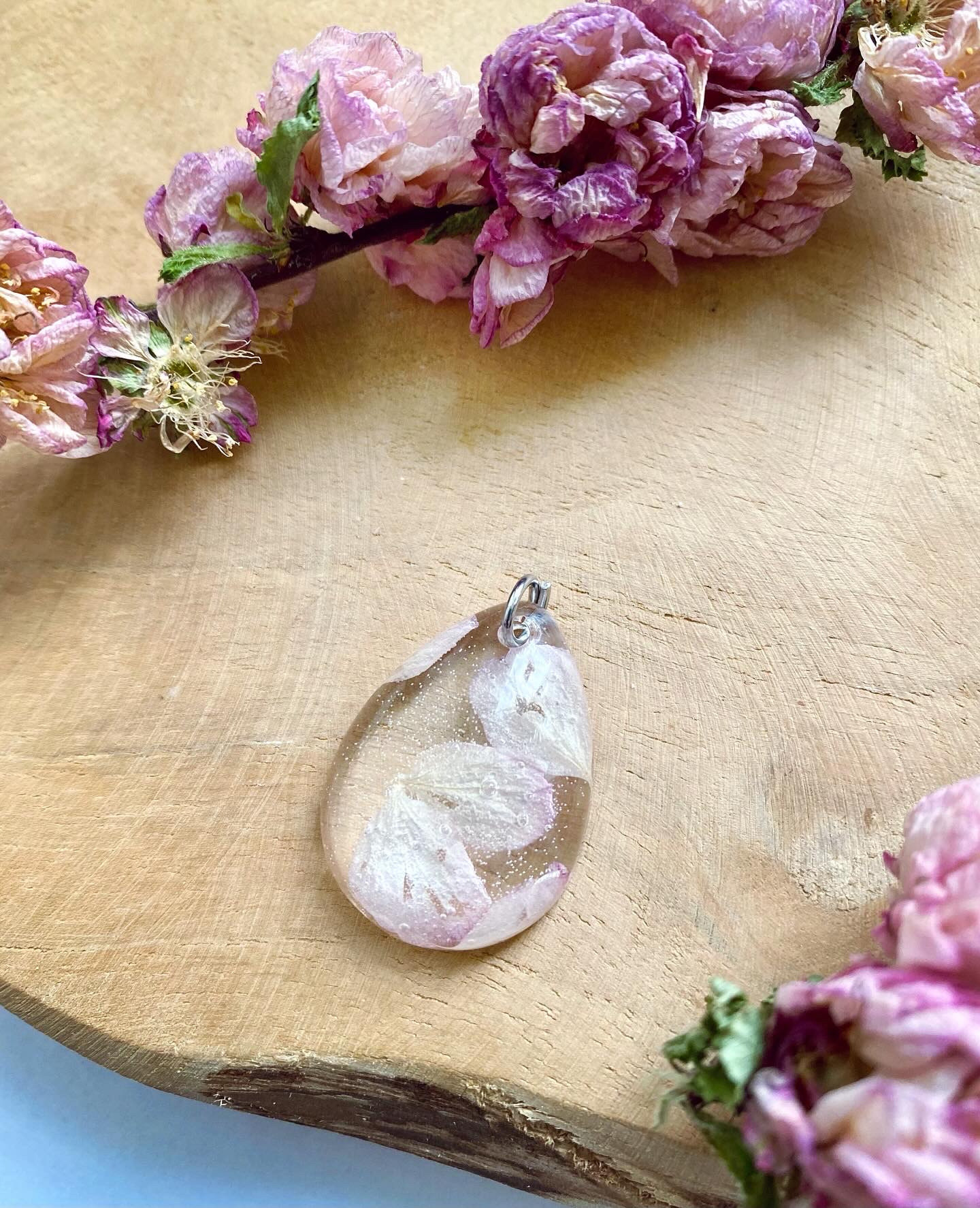 Přívěsek kapka s pravým sušeným květem Sakury.