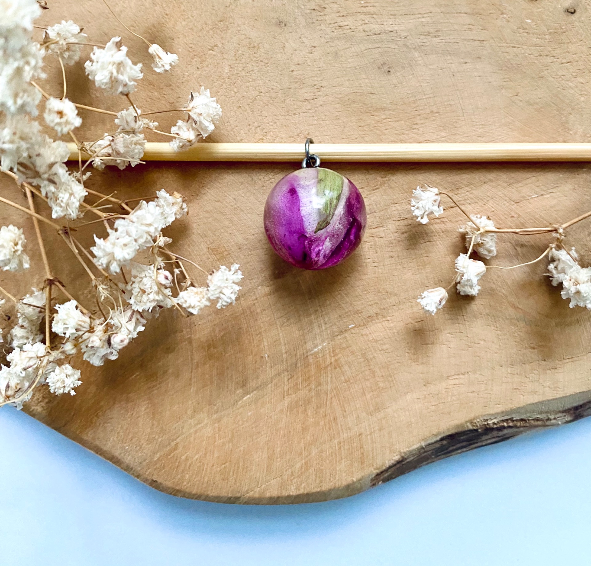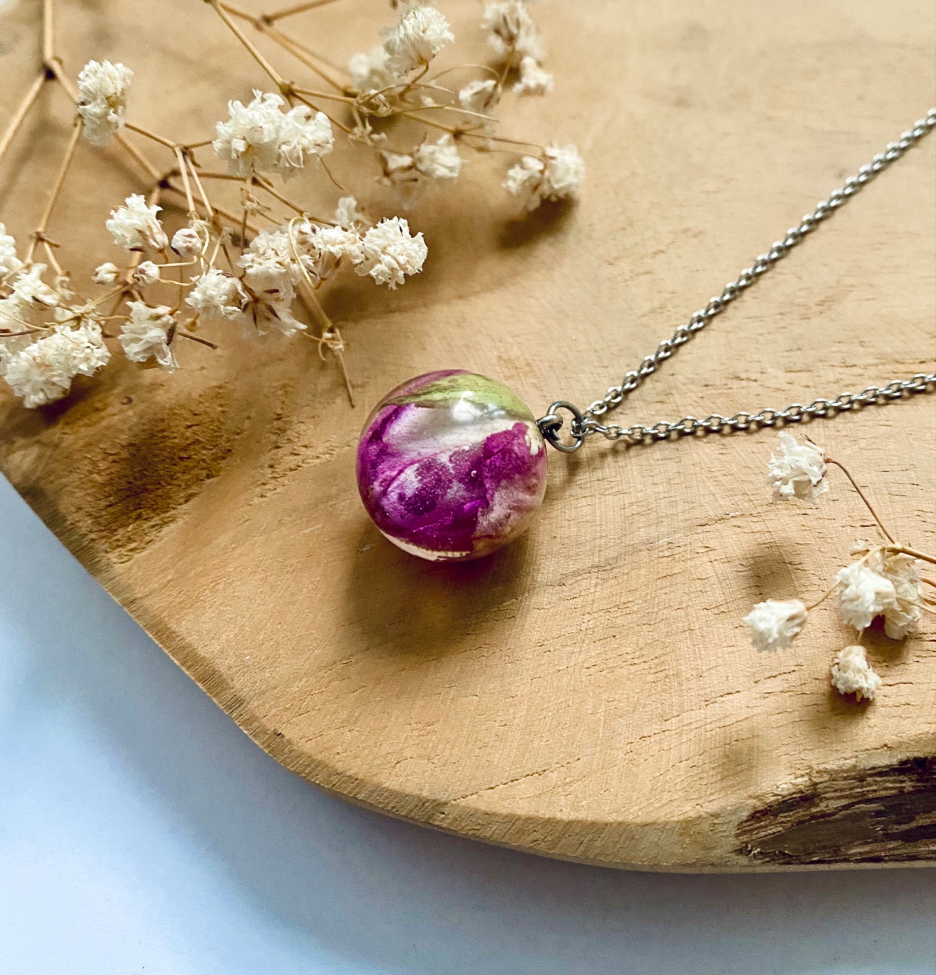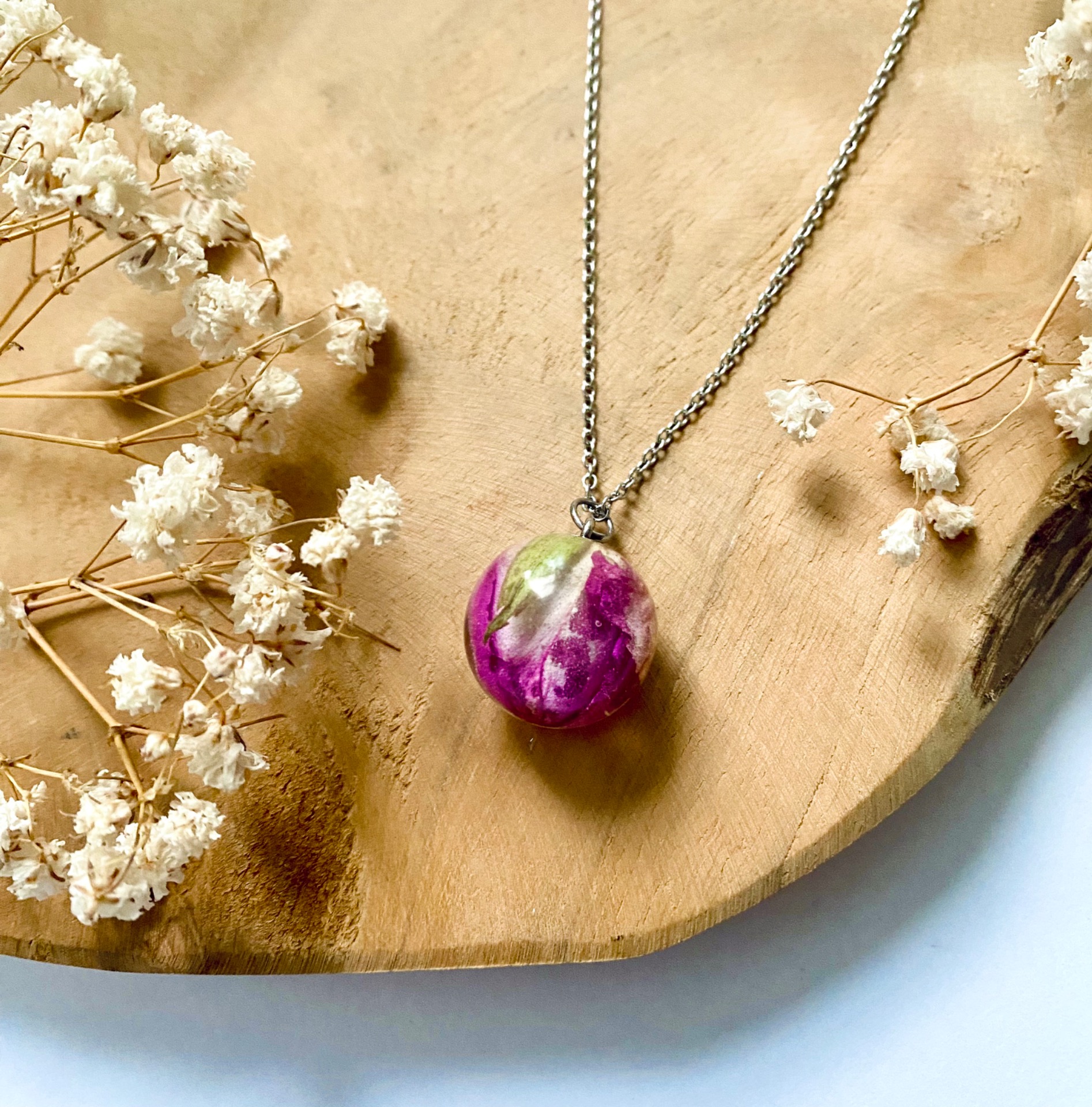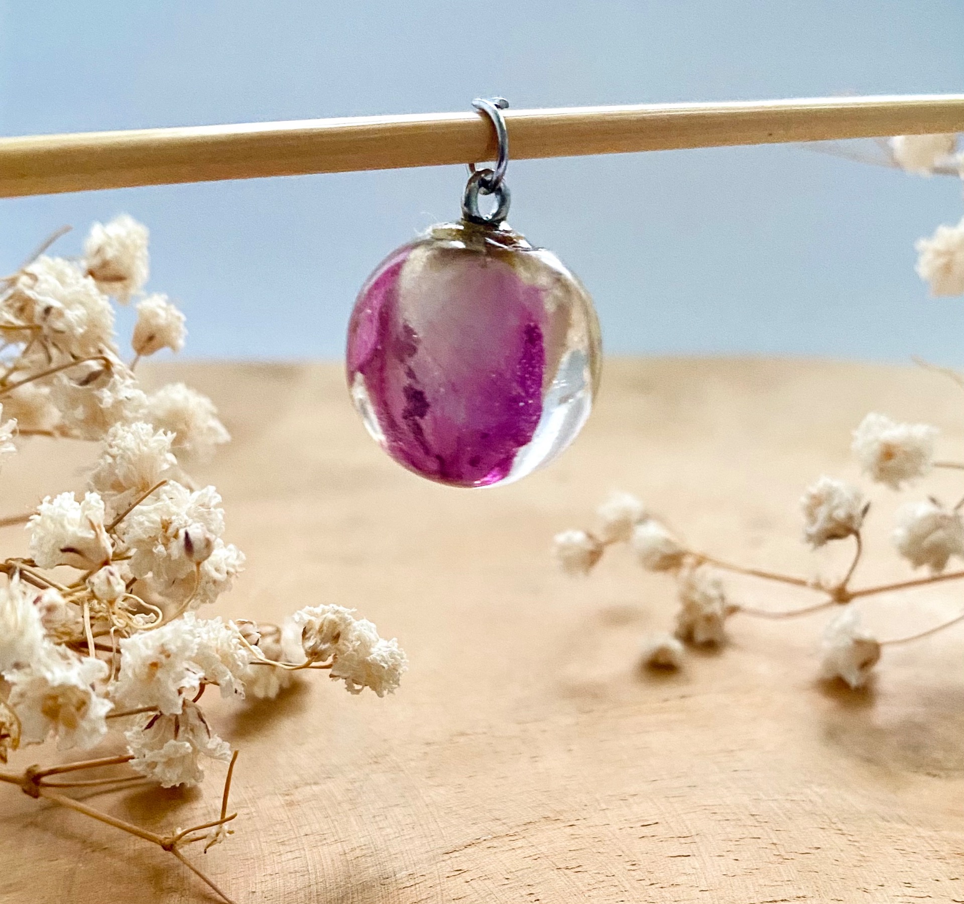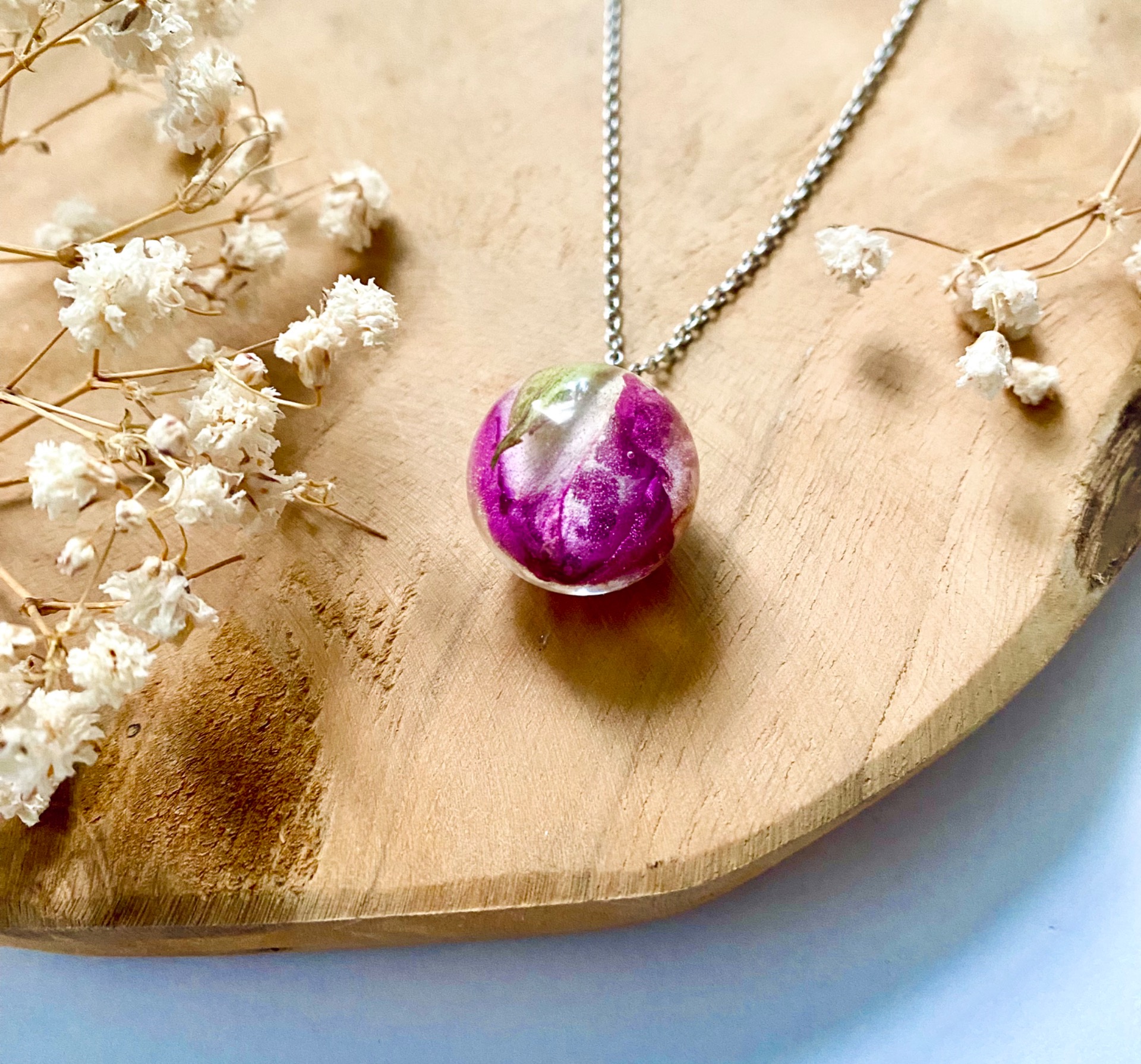 Přívěsek koule s pravým sušeným květem - poupě Růže.Velikost: 1,8 cmKroužek: Chirurgická ocel.