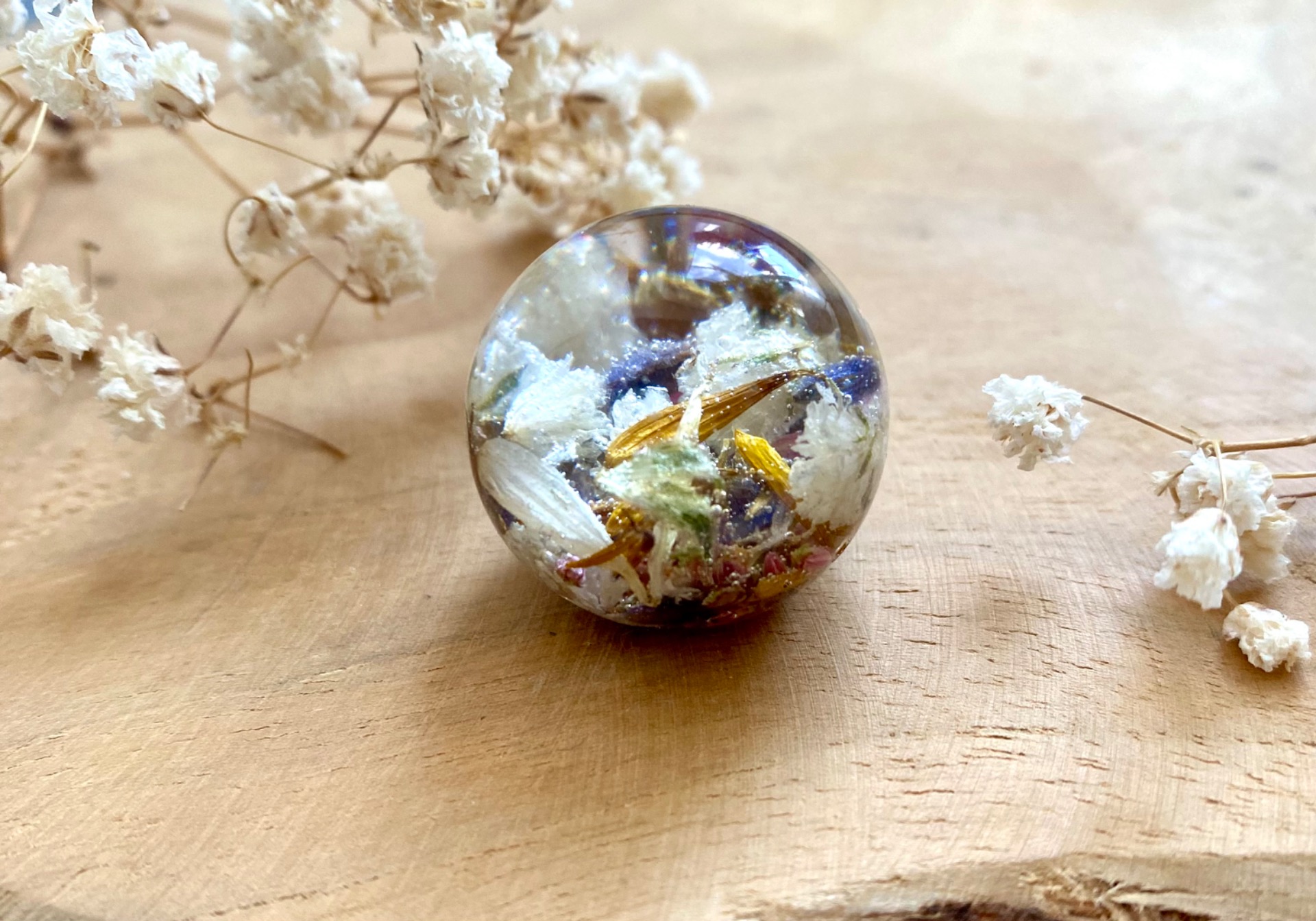 Přívěsek koule mix květů.Velikost: 2,3 cm. Háček: Chirurgická ocel.