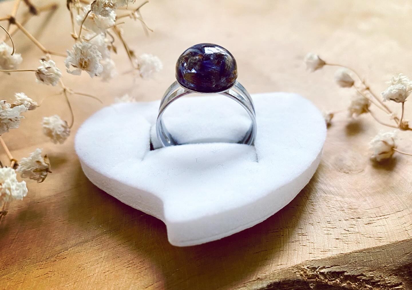 Prstýnek z chirurgické oceli s pravými sušenými květy Levandule.Velikost kamínku: 1,2 cm.Velikost Prstýnku: Univerzální (nastavitelný).
