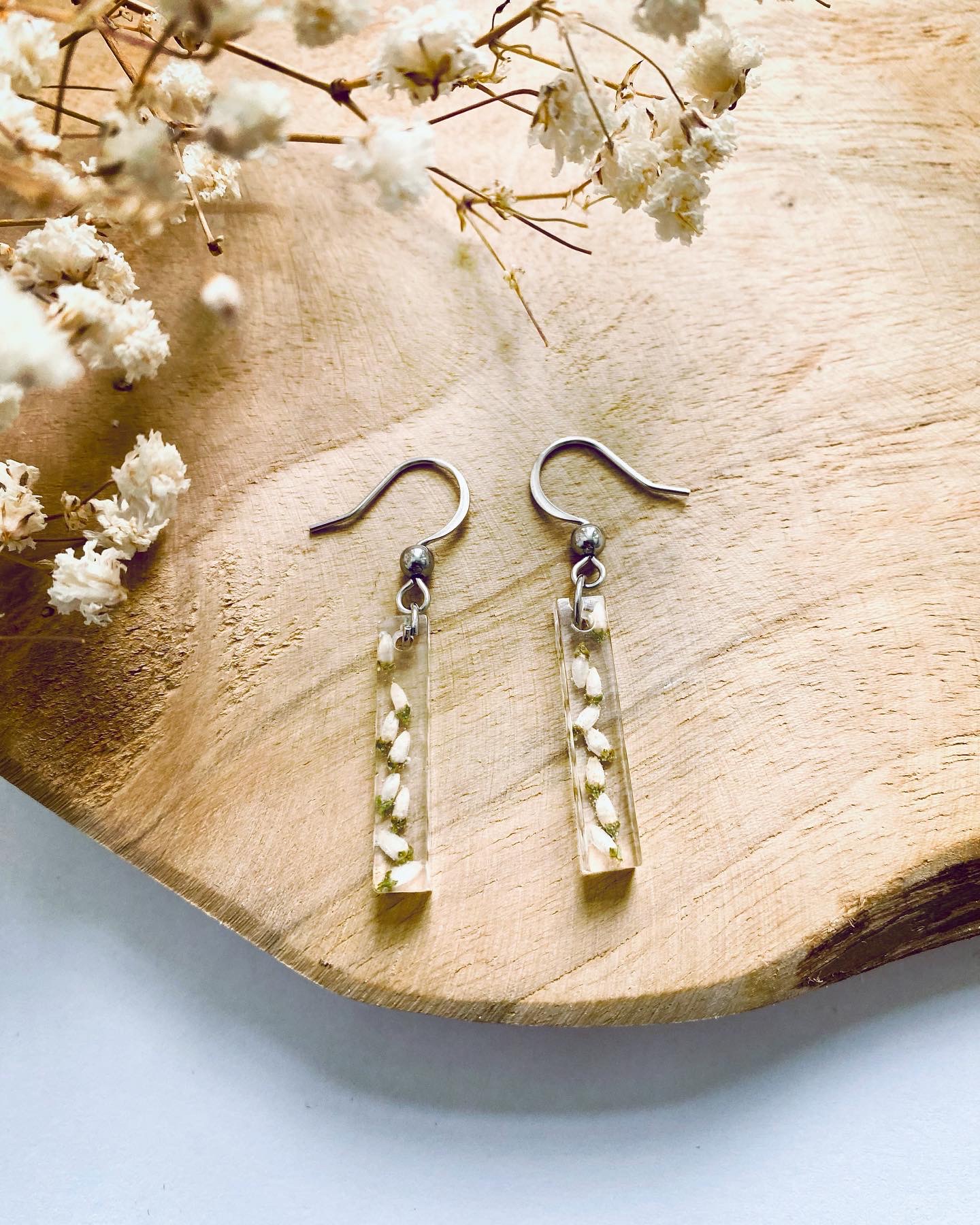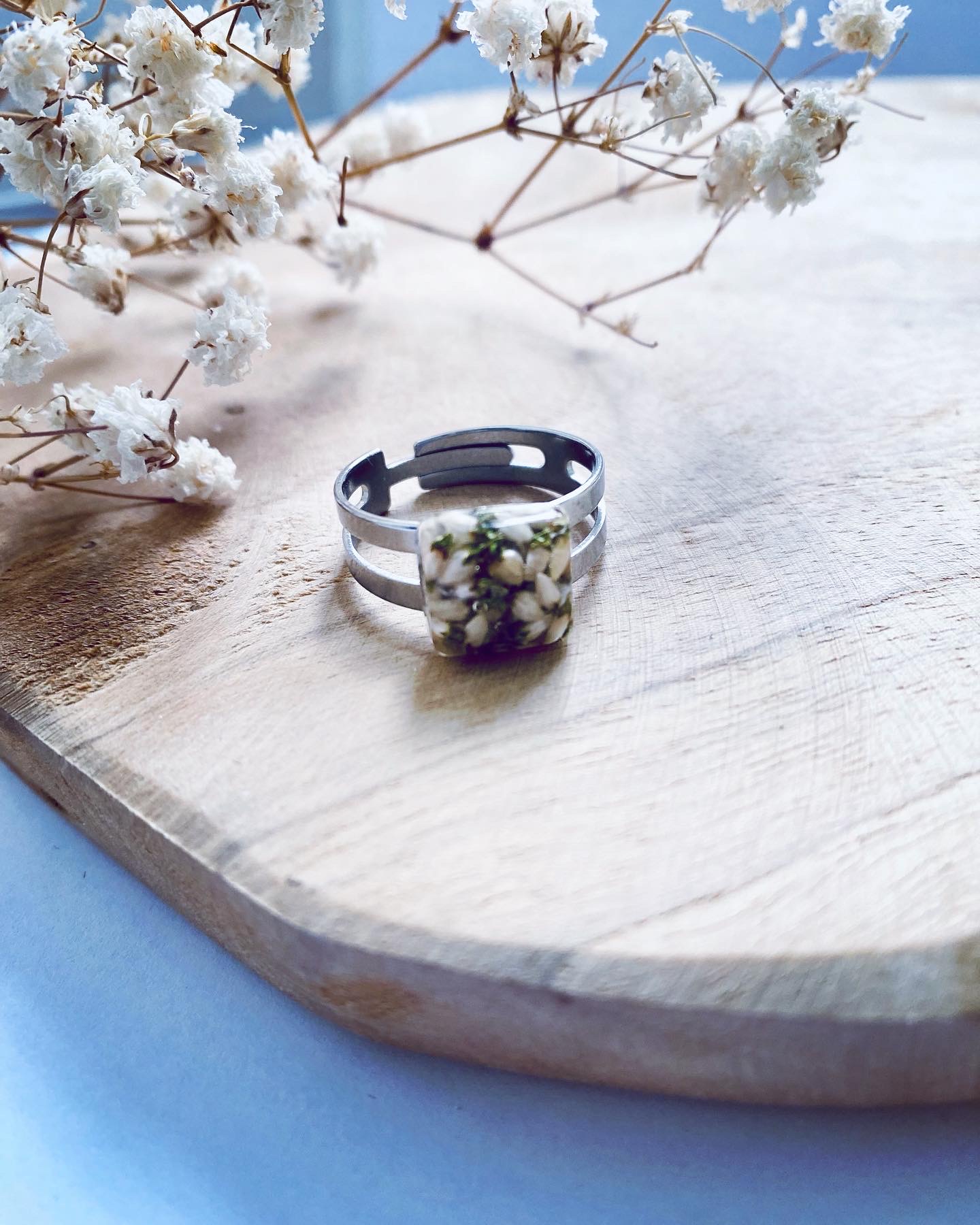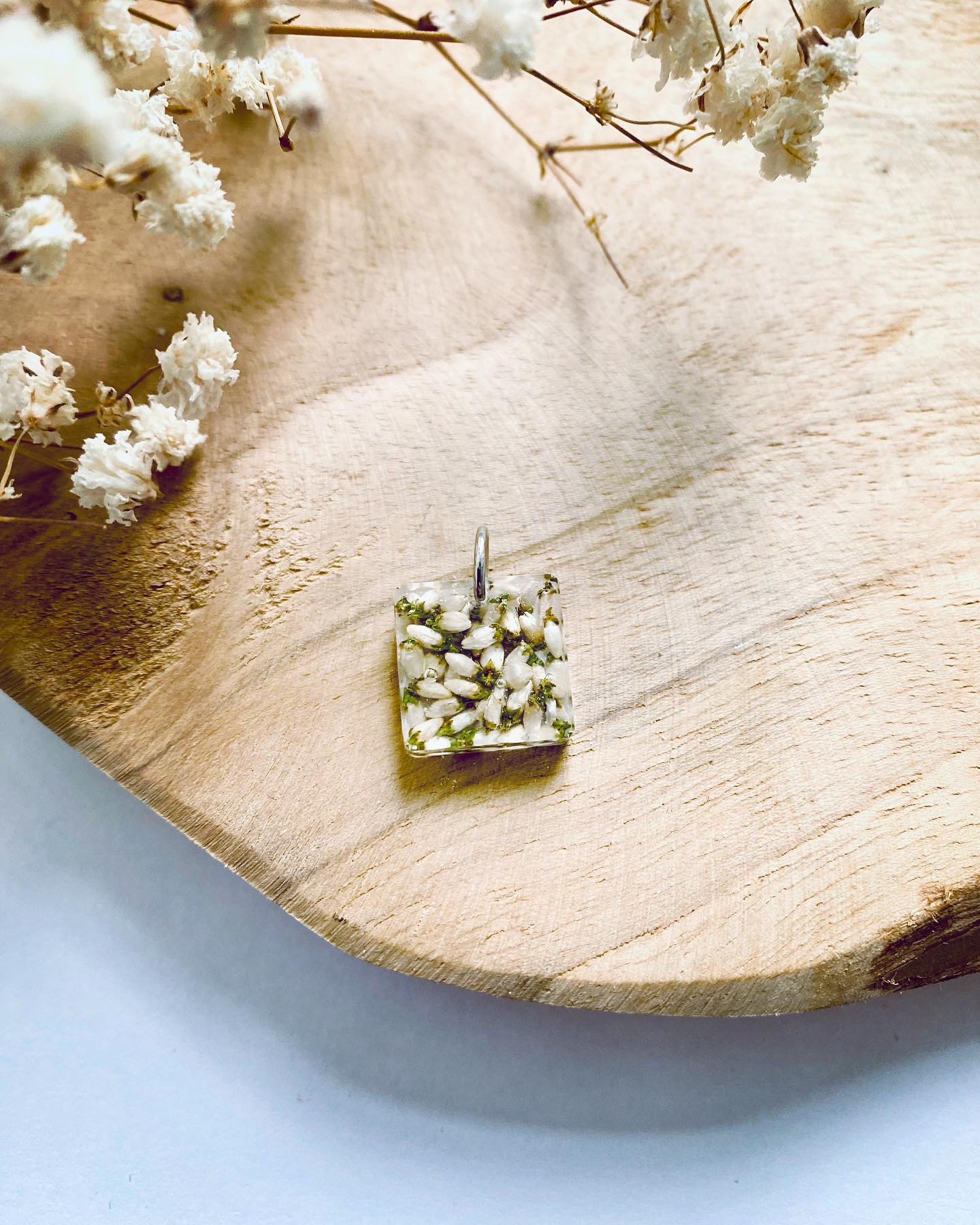 Set s pravými sušenými květy bílého Vřesu.Set obsahuje:visací náušnice přívěsek prstýnek