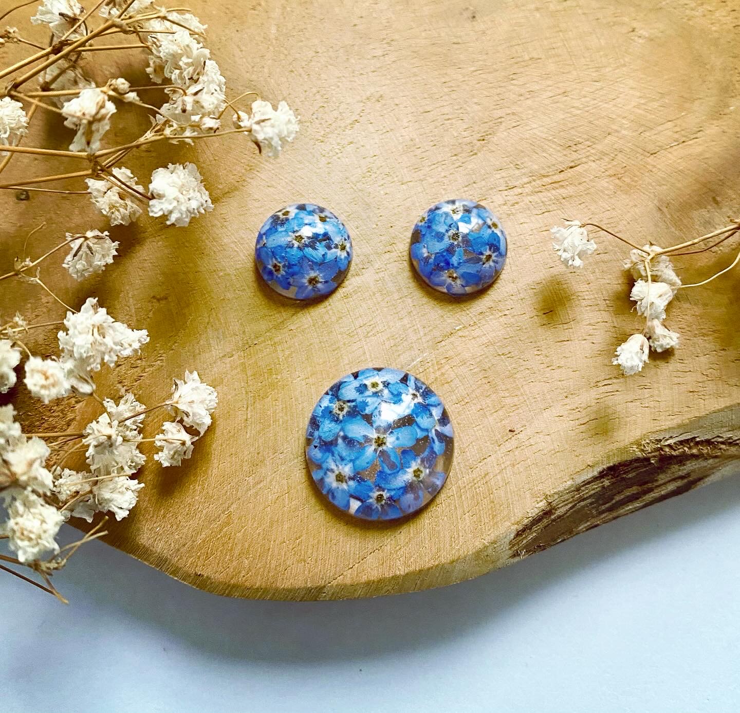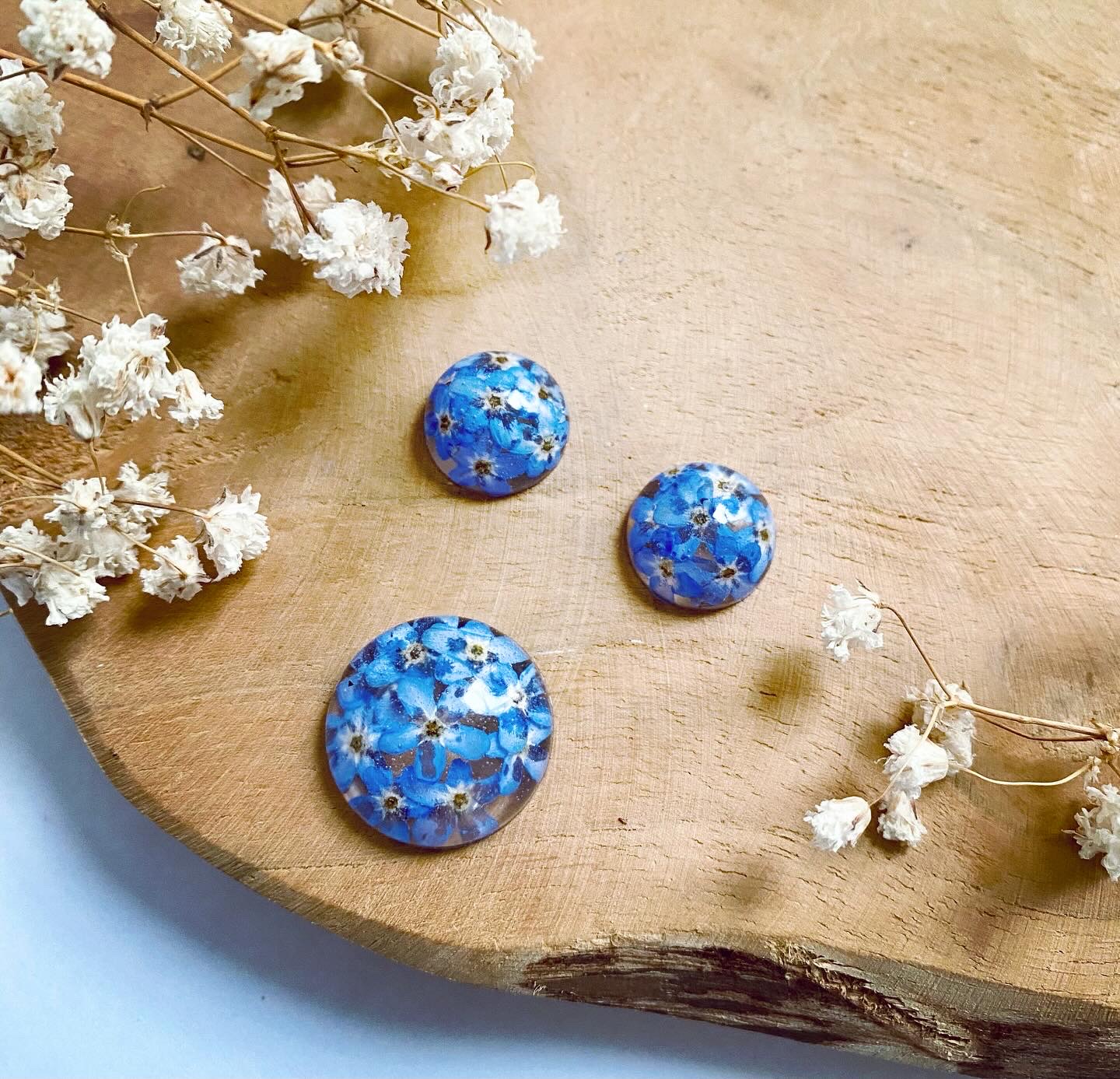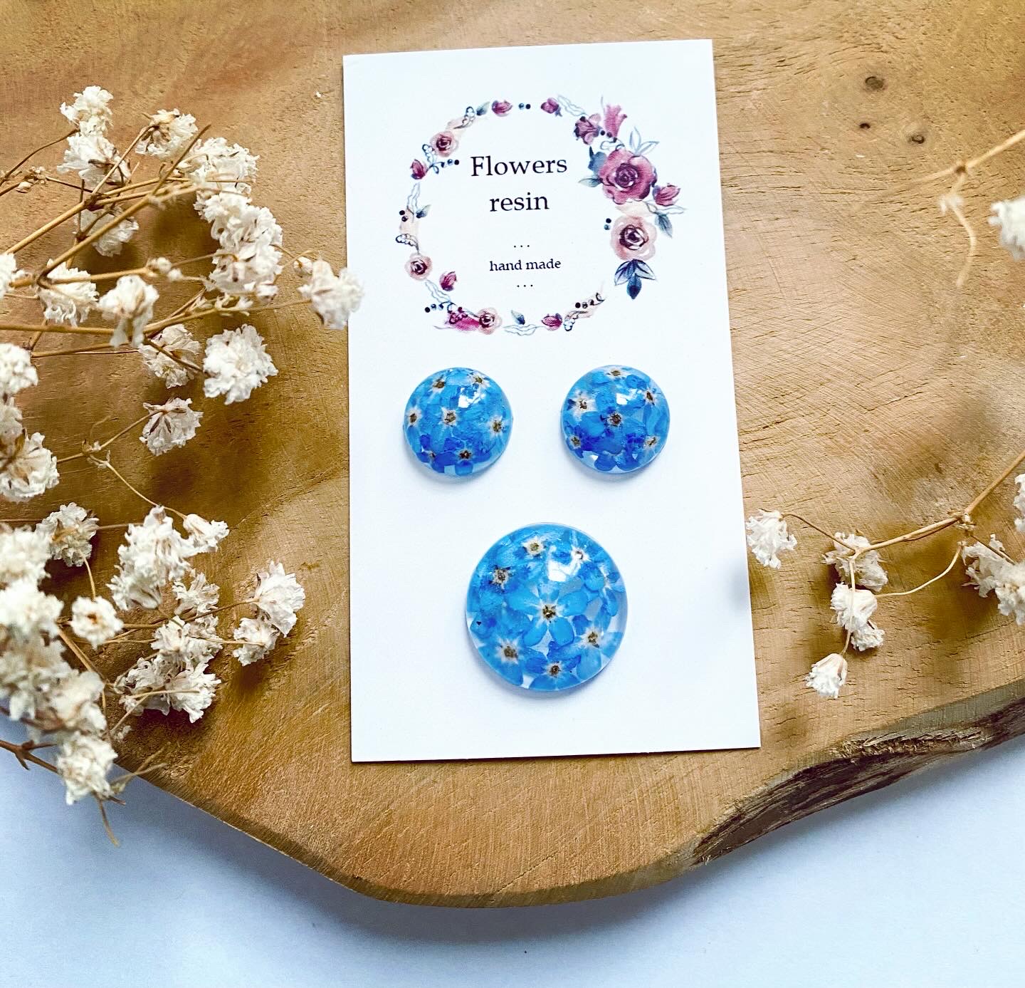 Set s pravými sušenými květy Pomněnek.Set obsahuje:Brož: 2 cm.Náušnice: 1,2 cm - puzety chirurgická ocel.