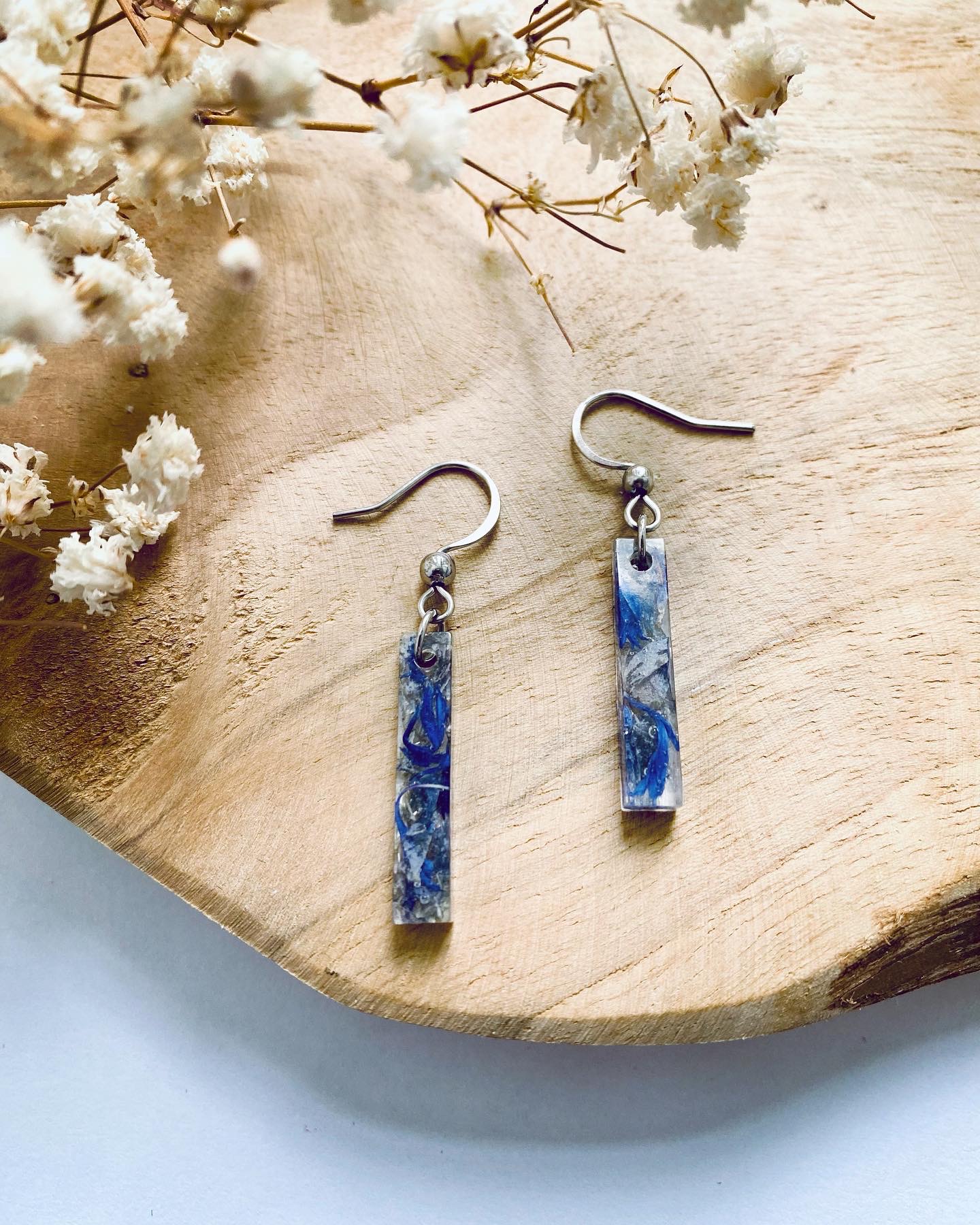 Set s pravými sušenými květy Chrpy a Ibišku.Set obsahuje:visací náušnice přívěsek prstýnek