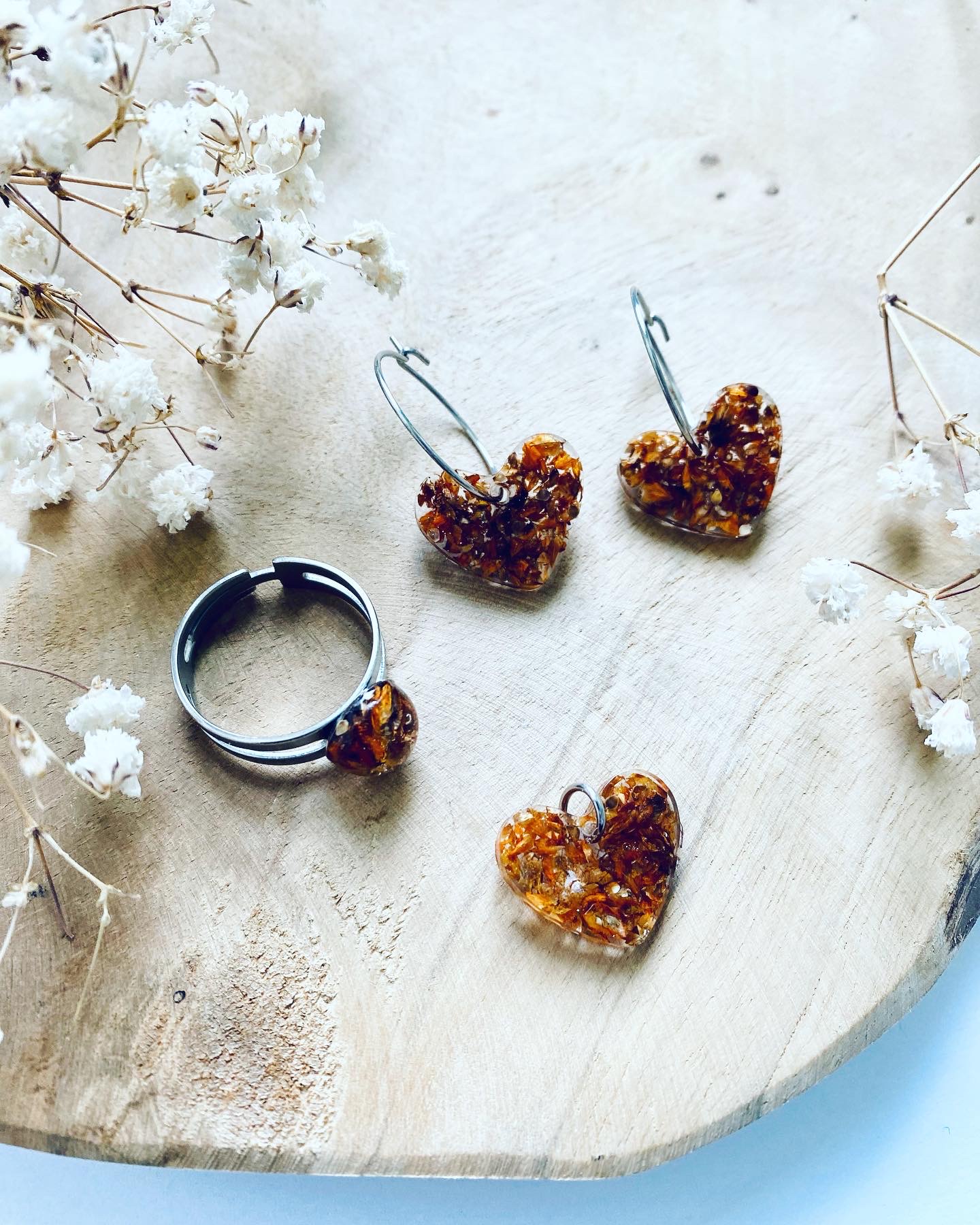 Set s pravými sušenými květy hnědého Mechu.Set obsahuje:visací náušnice přívěsek prstýnek