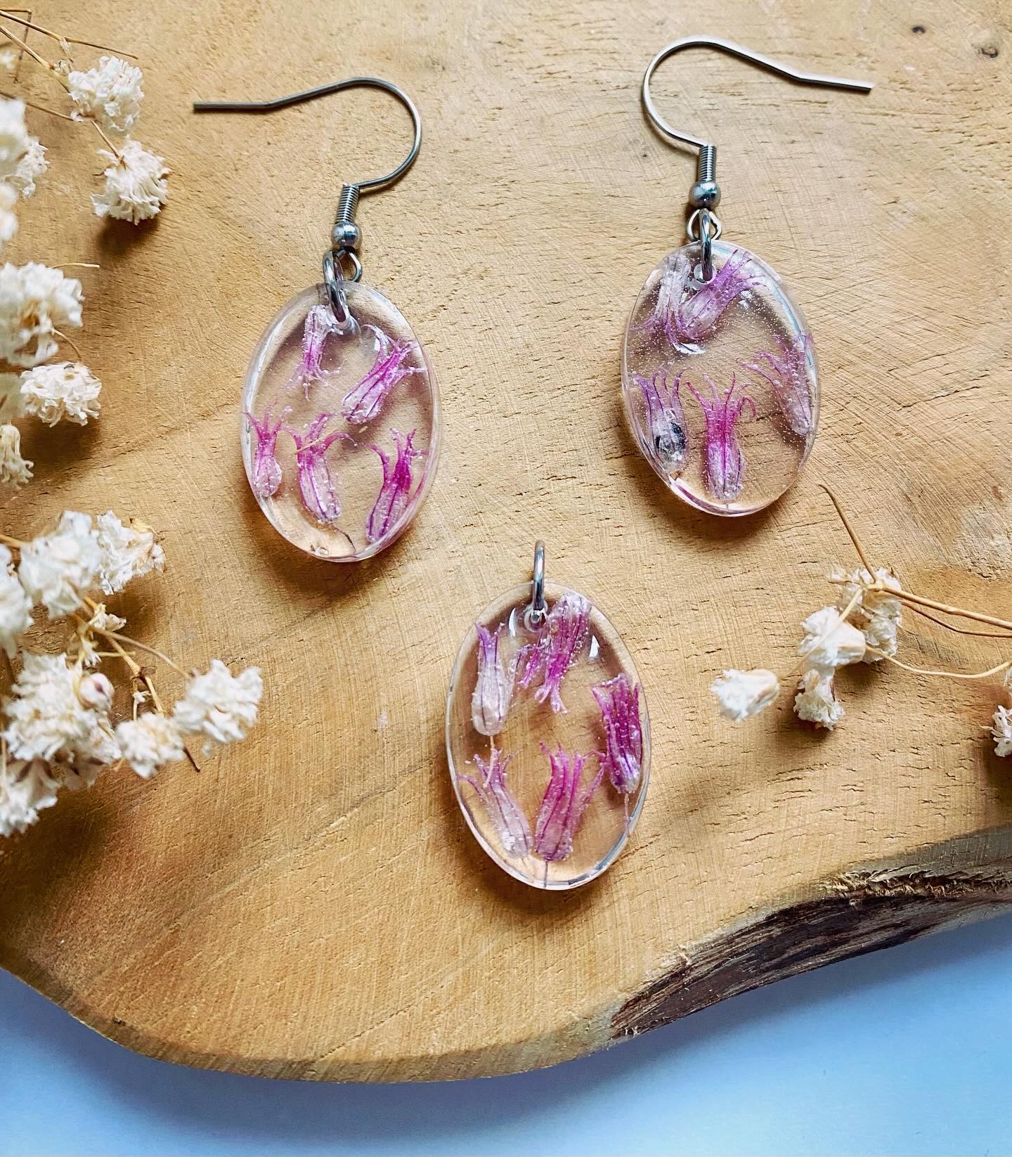 Set s pravými sušenými květy Pažitky.Set obsahuje:visací náušnicepřívěsek(bez řetízku)