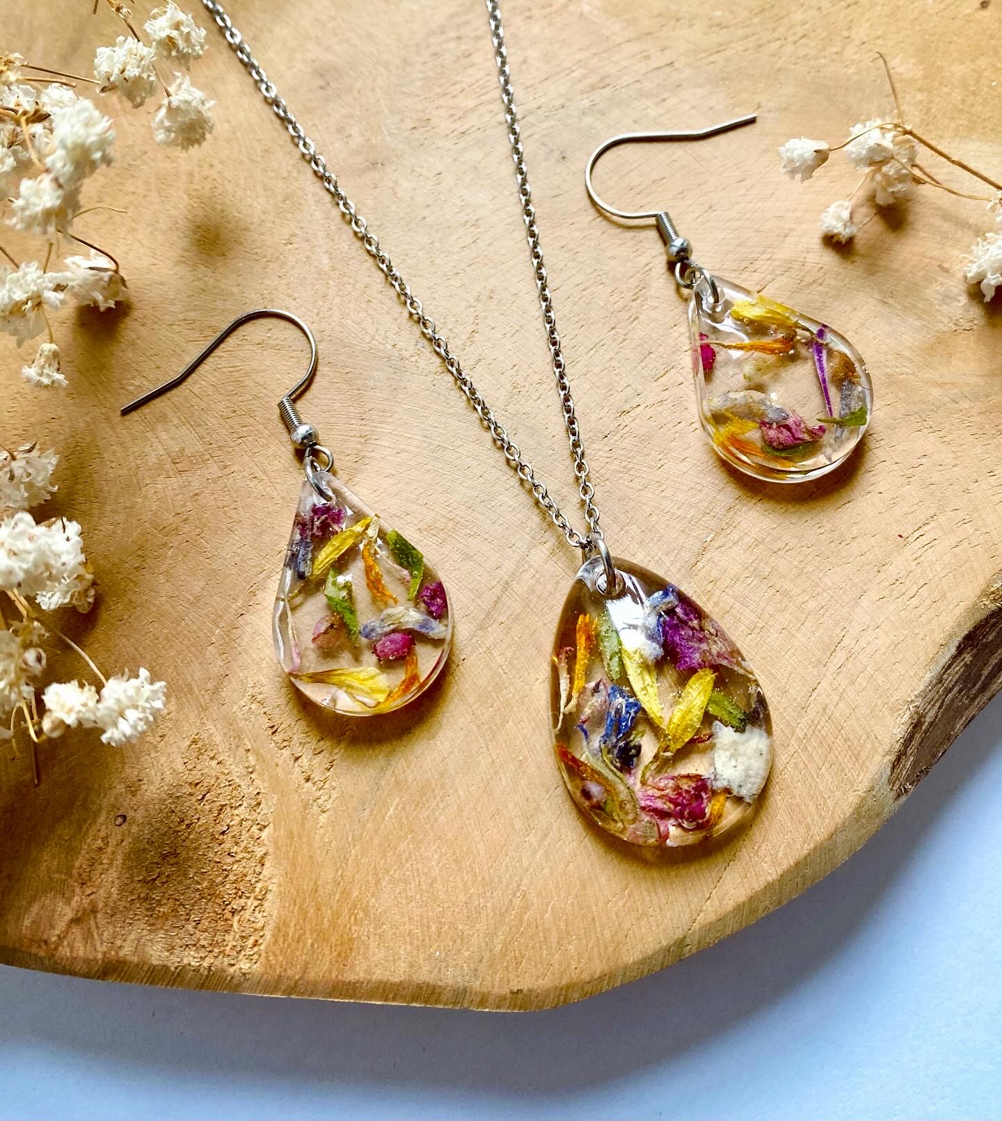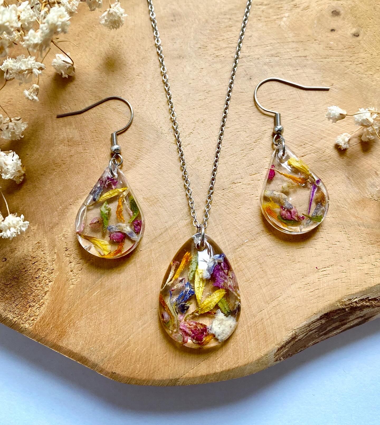 Set s pravými sušenými květy.Set obsahuje:visací náušnicepřívěsek(bez řetízku)