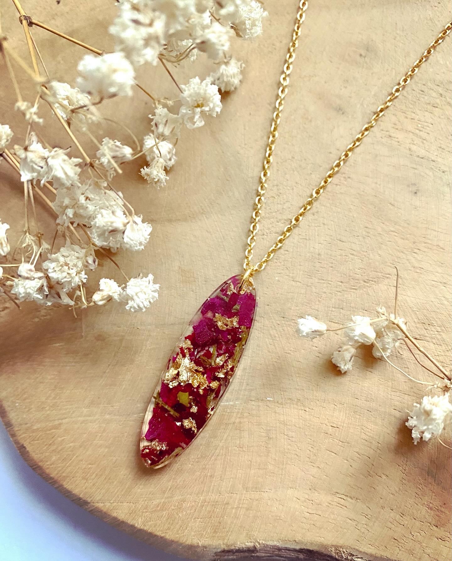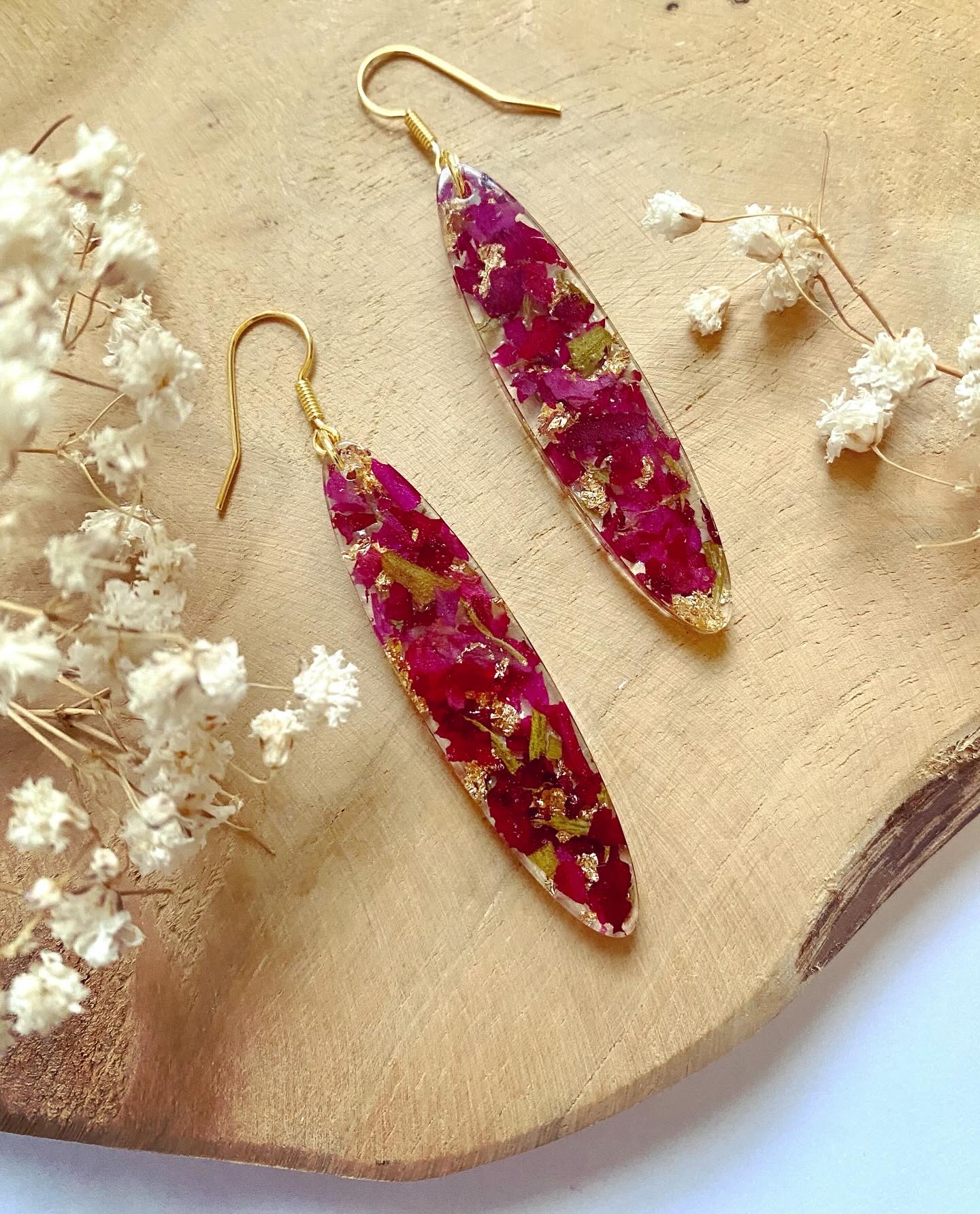 Set s pravými sušenými květy červené Růže a zlatými plátky.Komponenty: háčky a kroužky - stříbrné Ag925 pozlacené 24k zlatem.